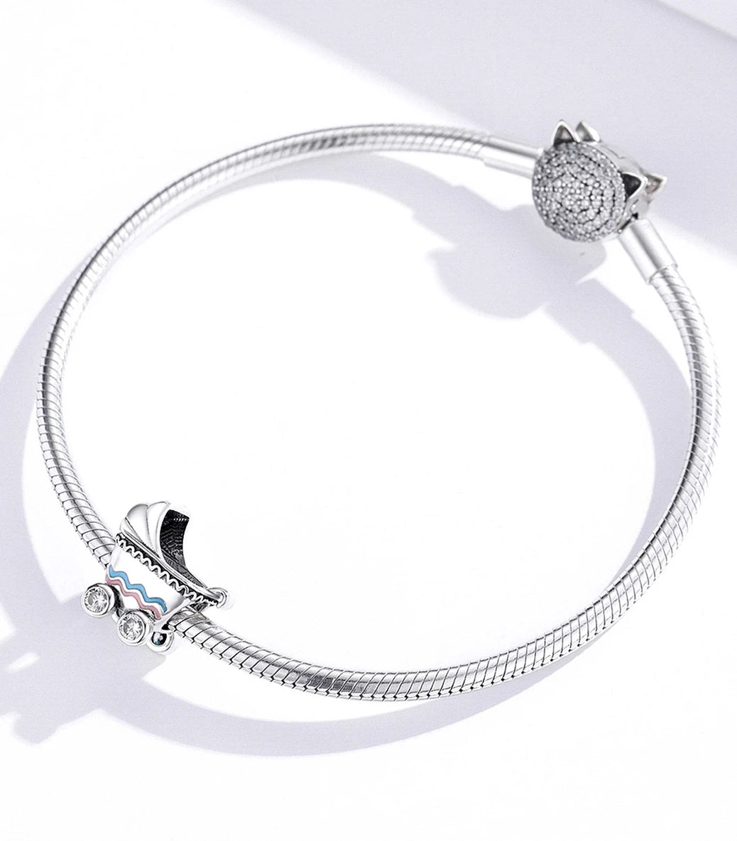 Сребърен талисман с бял кубичен циркон и син и розов емайл