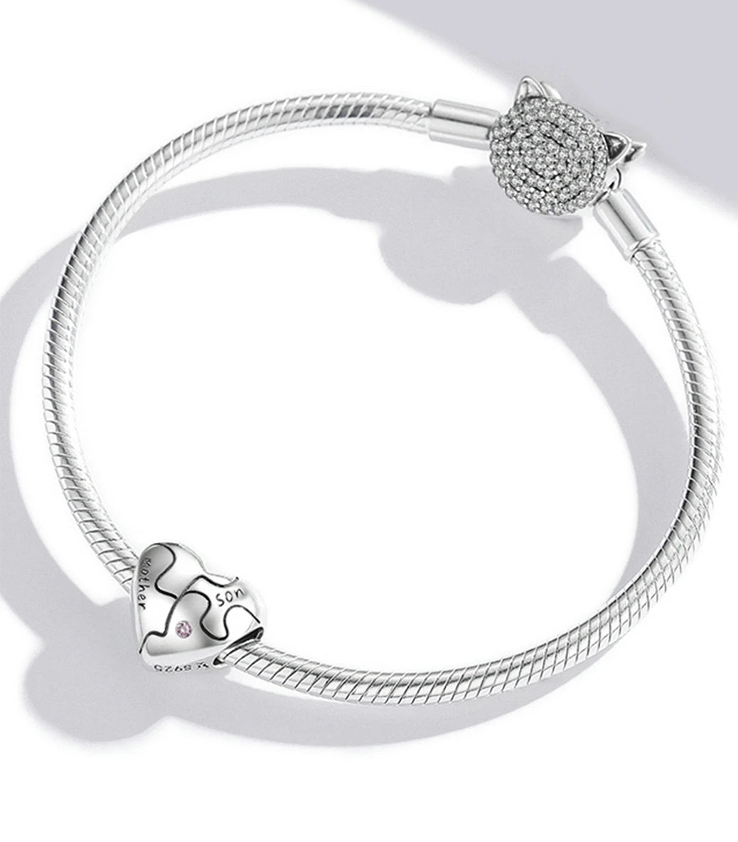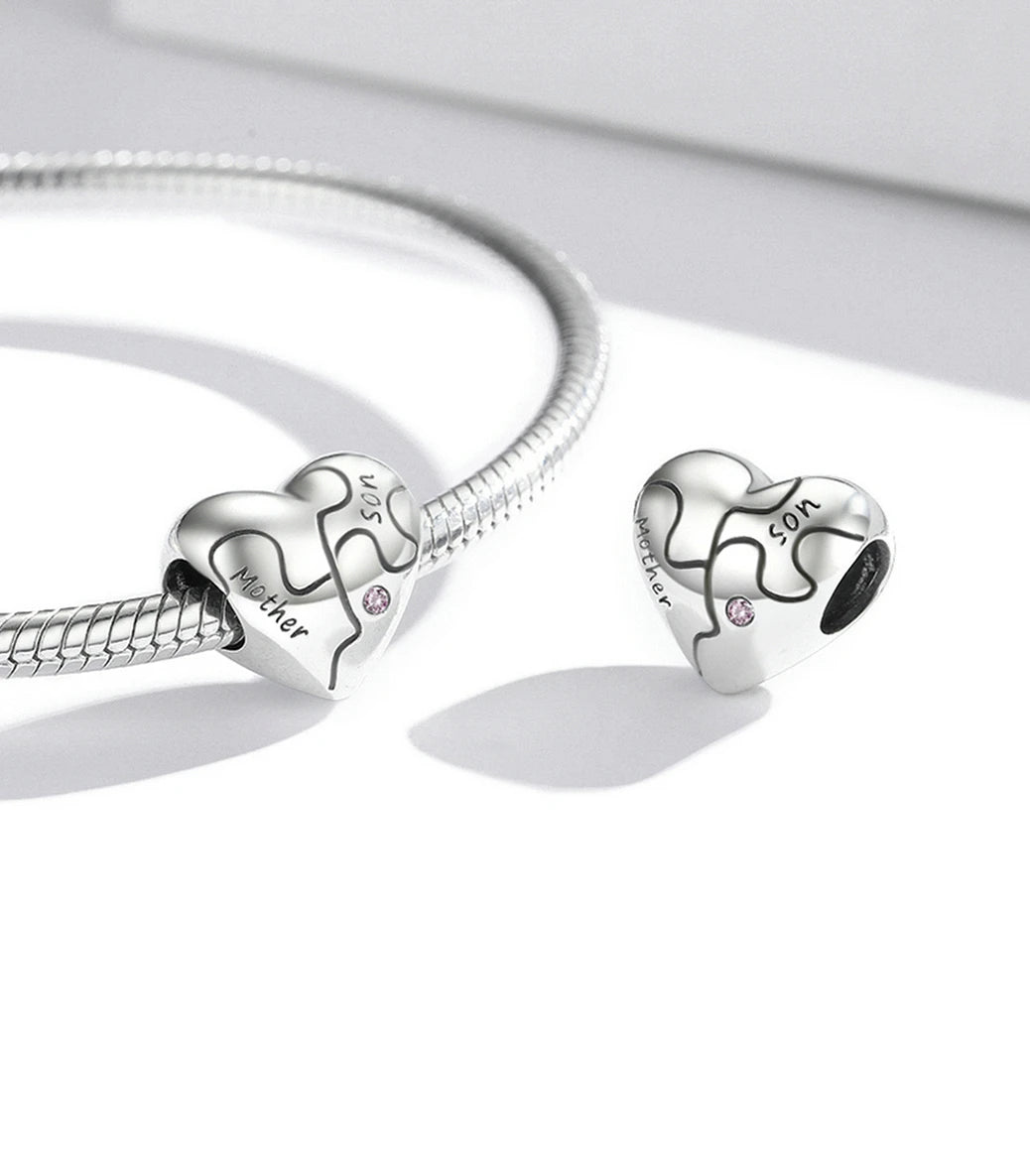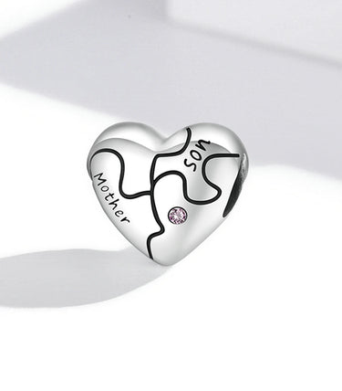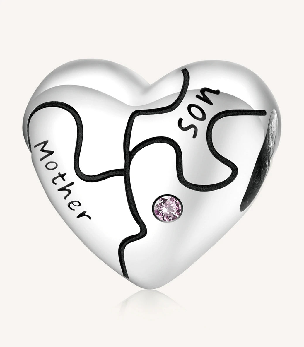 Сребърен талисман с розов кубичен циркон и надпис „Майка/син” (Майка/син)