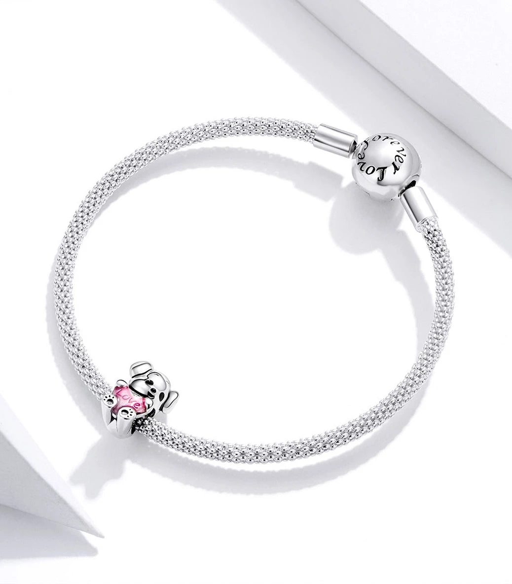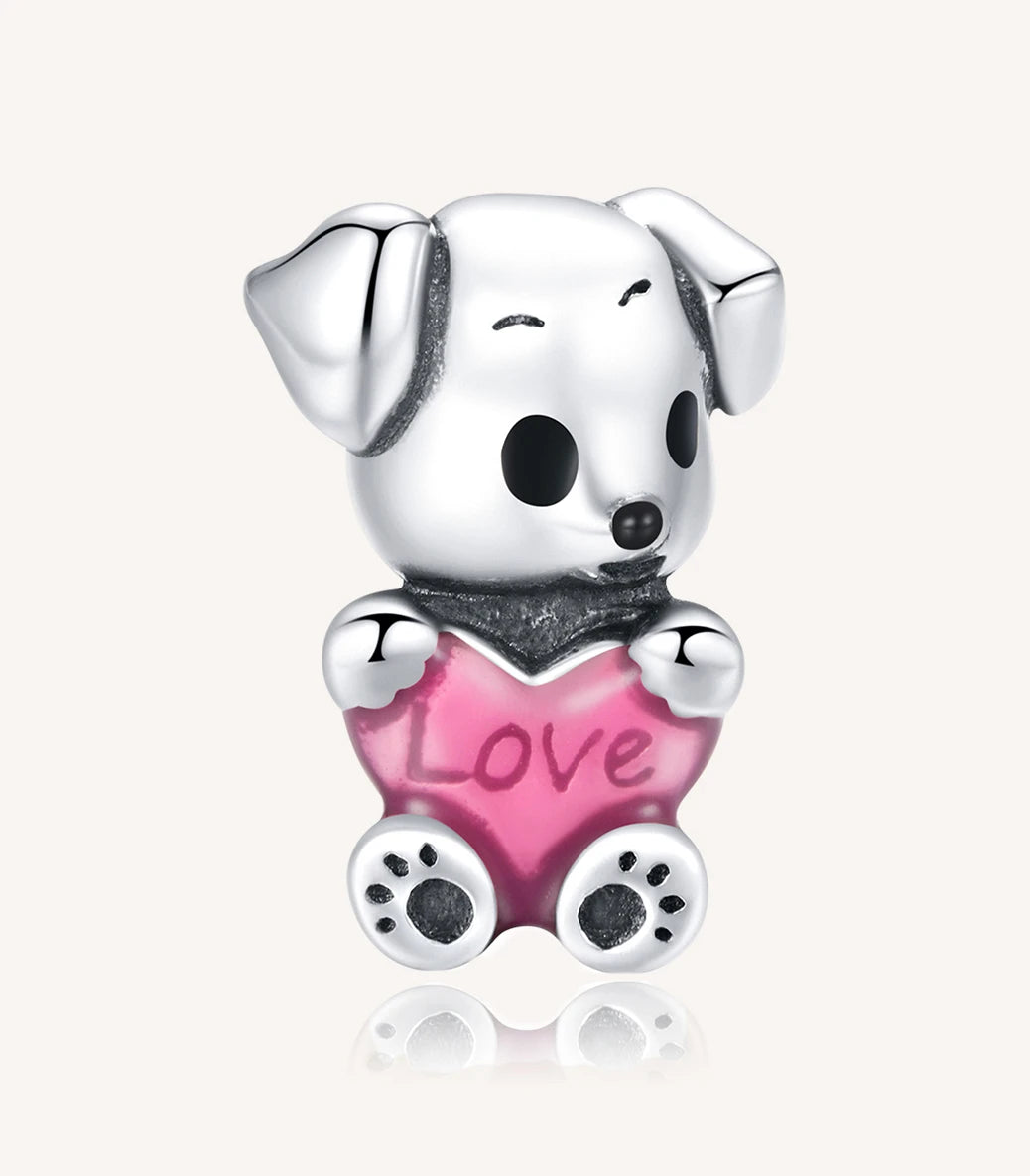 Сребърен талисман с пурпурен и черен емайл и надпис “Love” (Любов)
