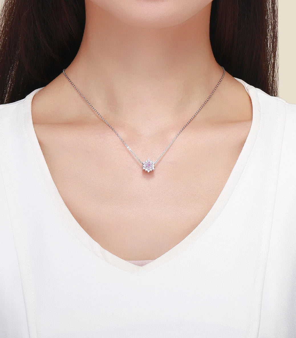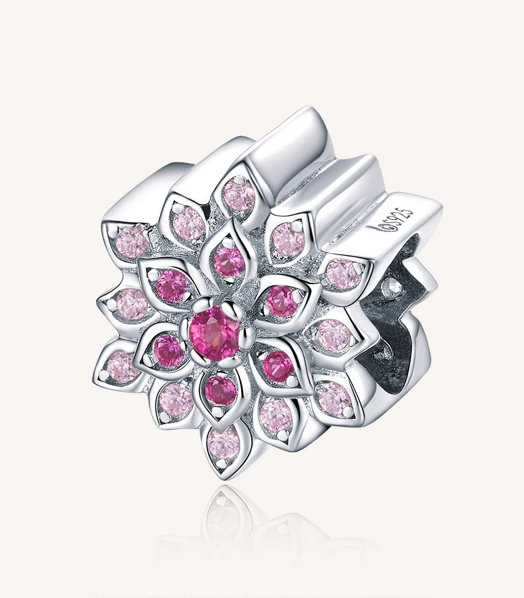 Сребърен талисман с розов и пурпурен кубичен циркон