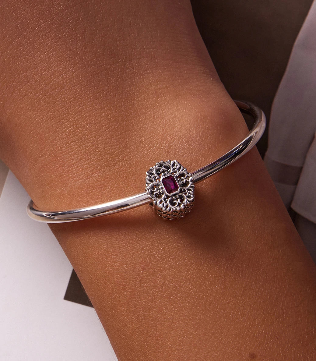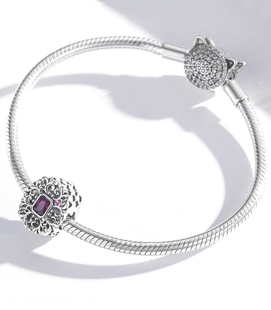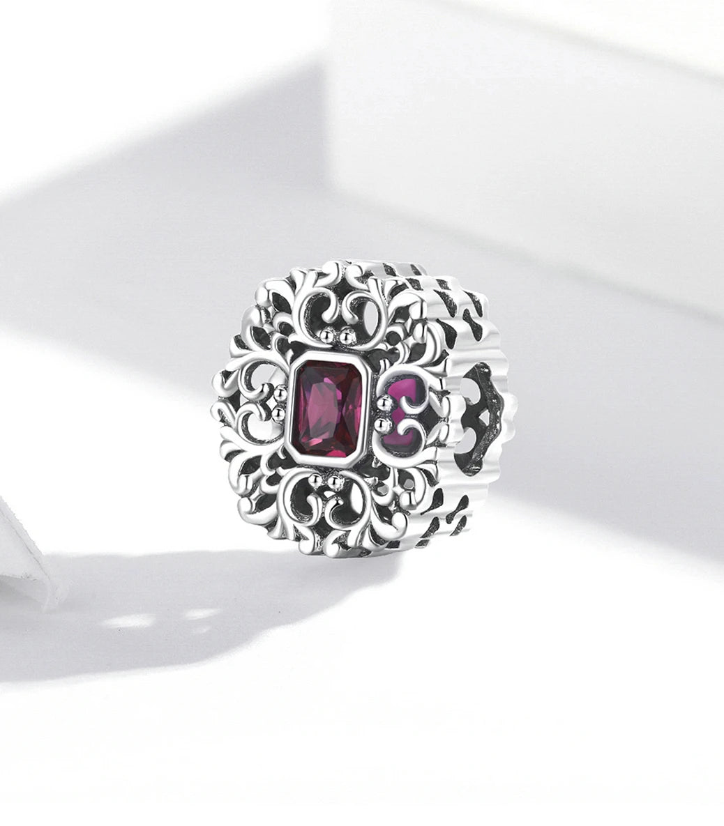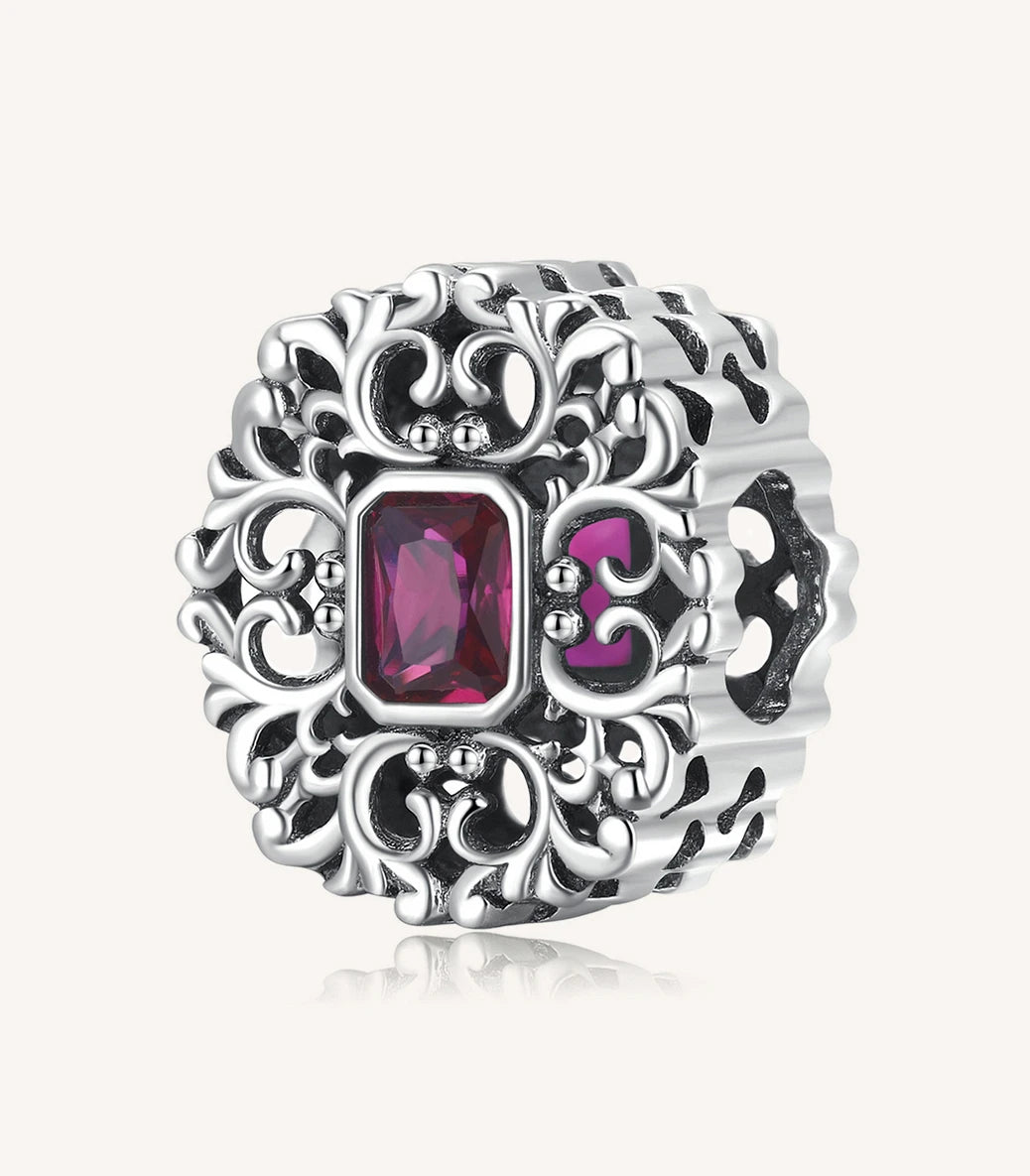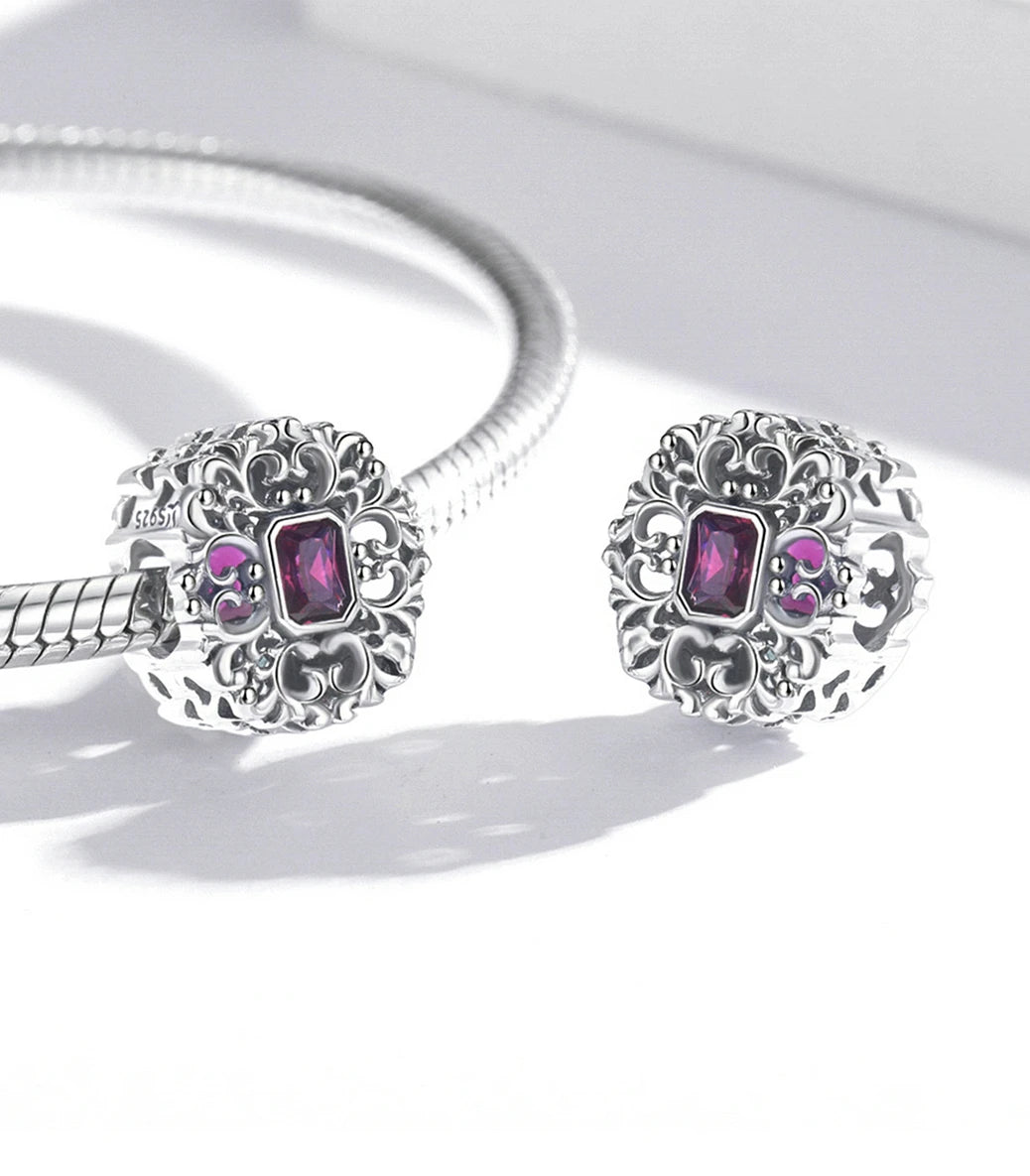 Сребърен талисман с пурпурен кубичен циркон