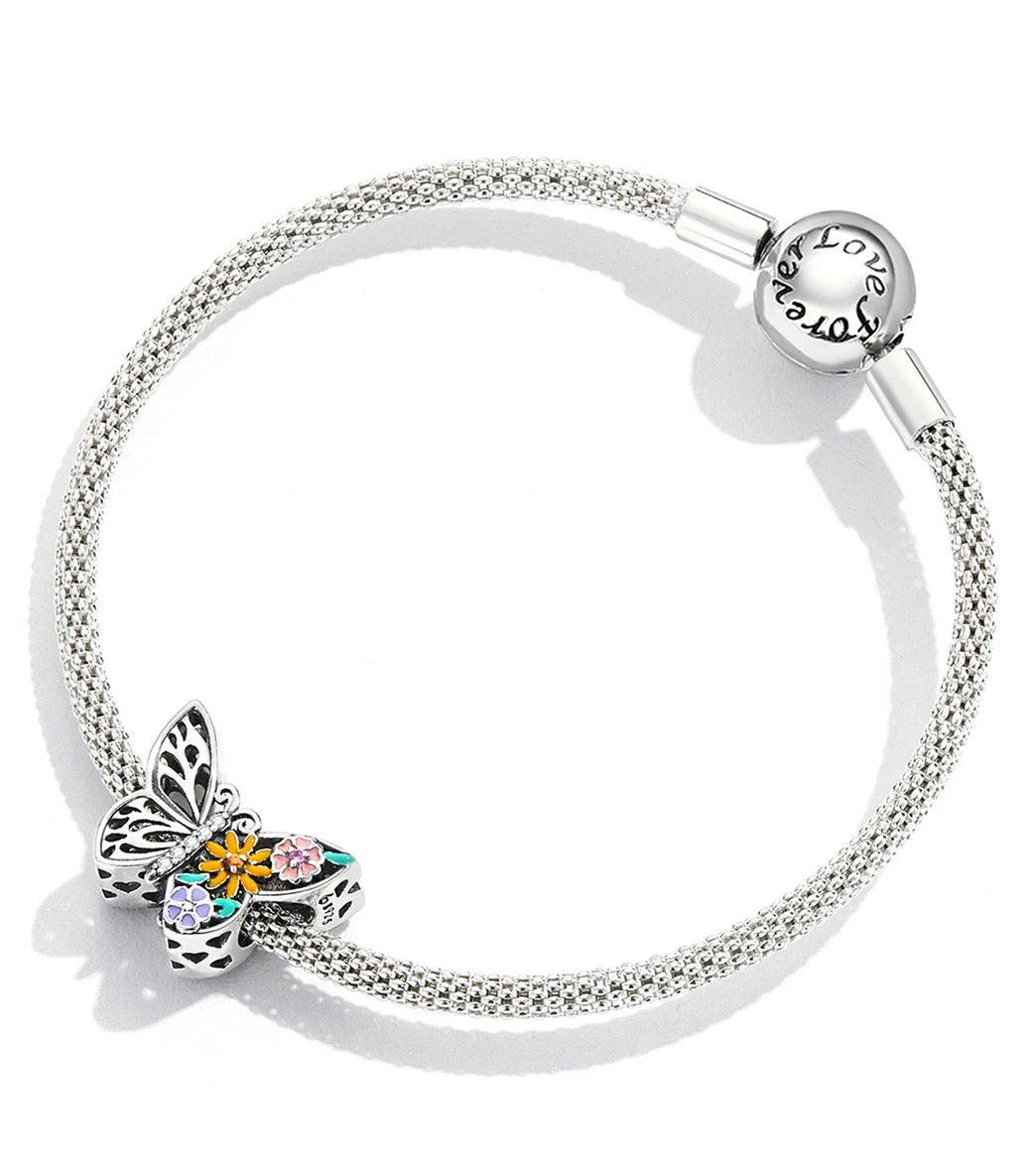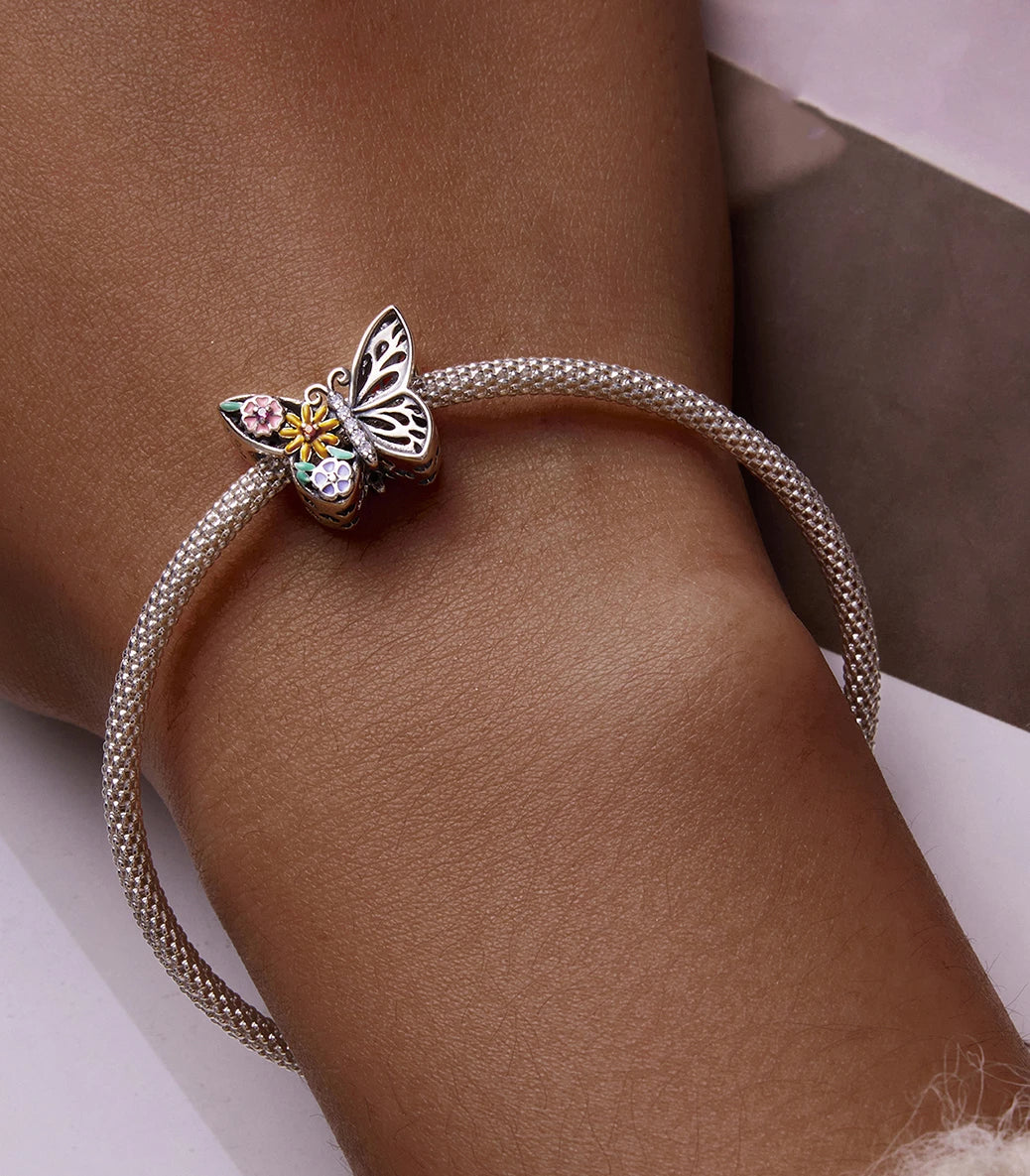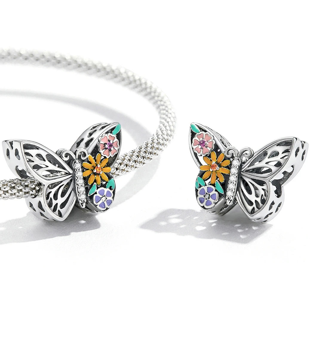 Сребърен талисман с разноцветен кубичен циркон и разноцветен емайл