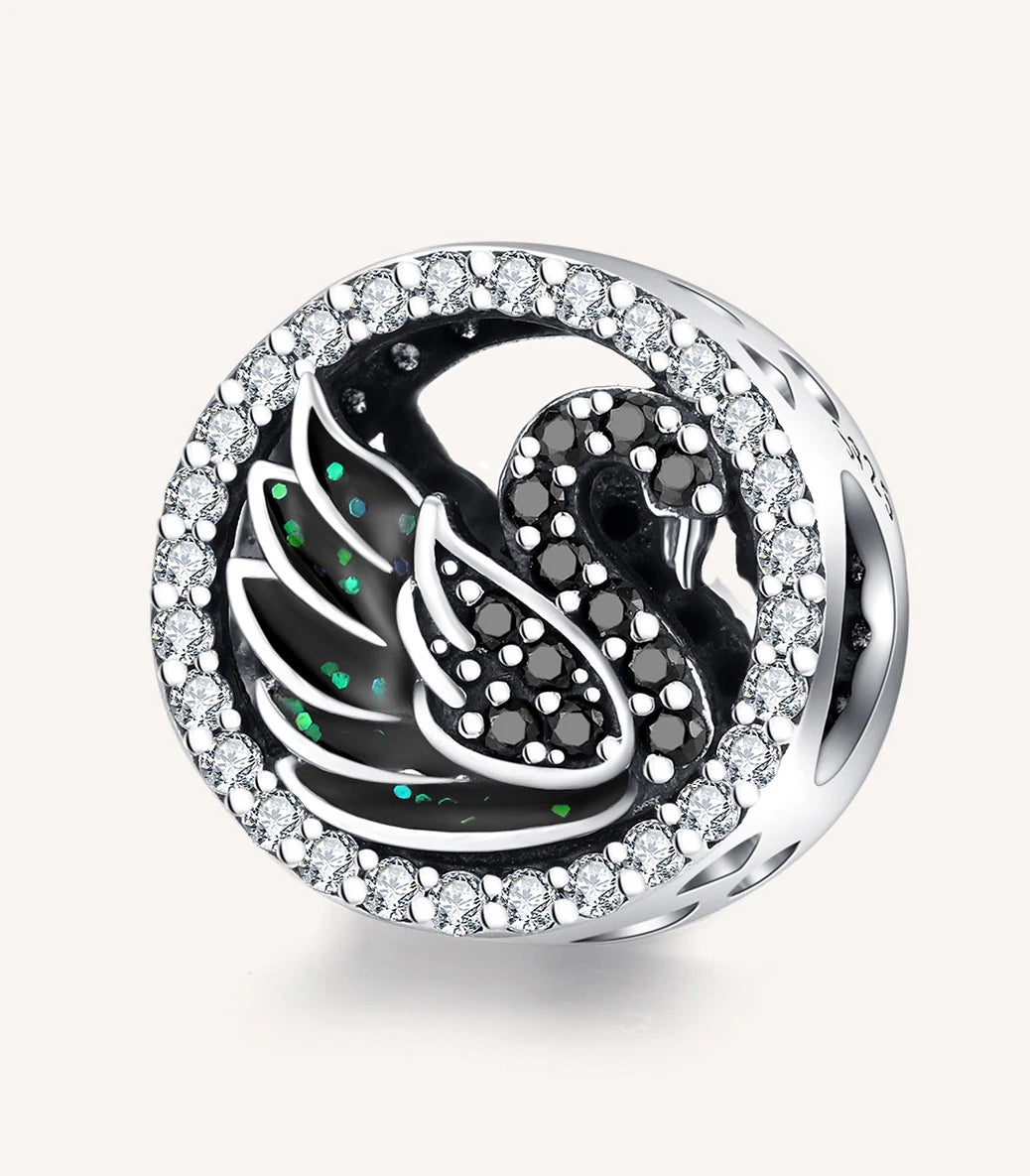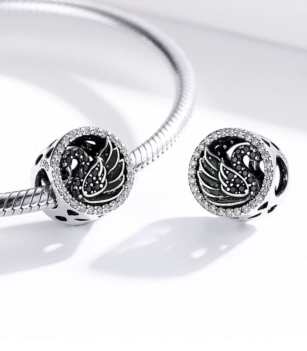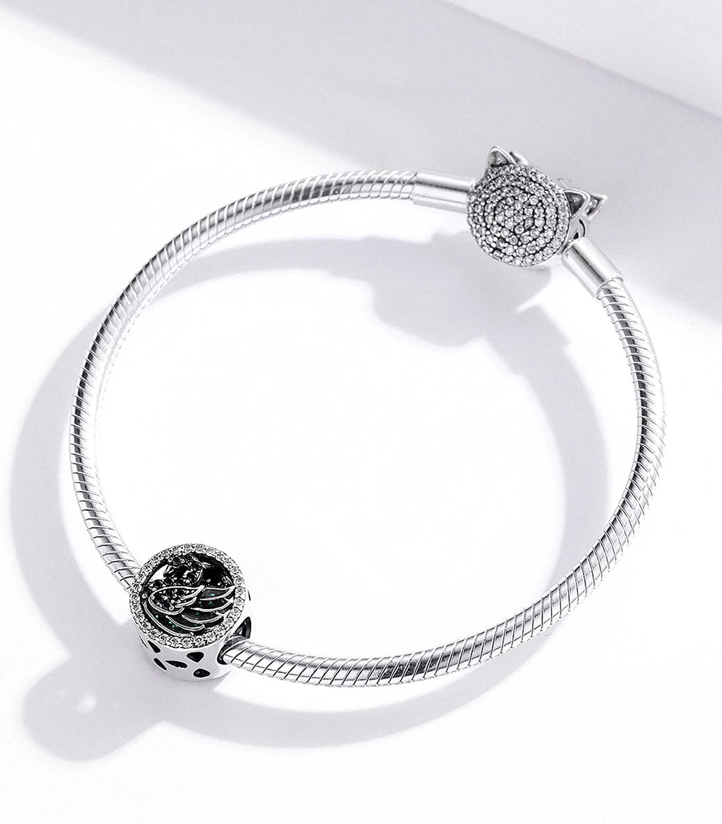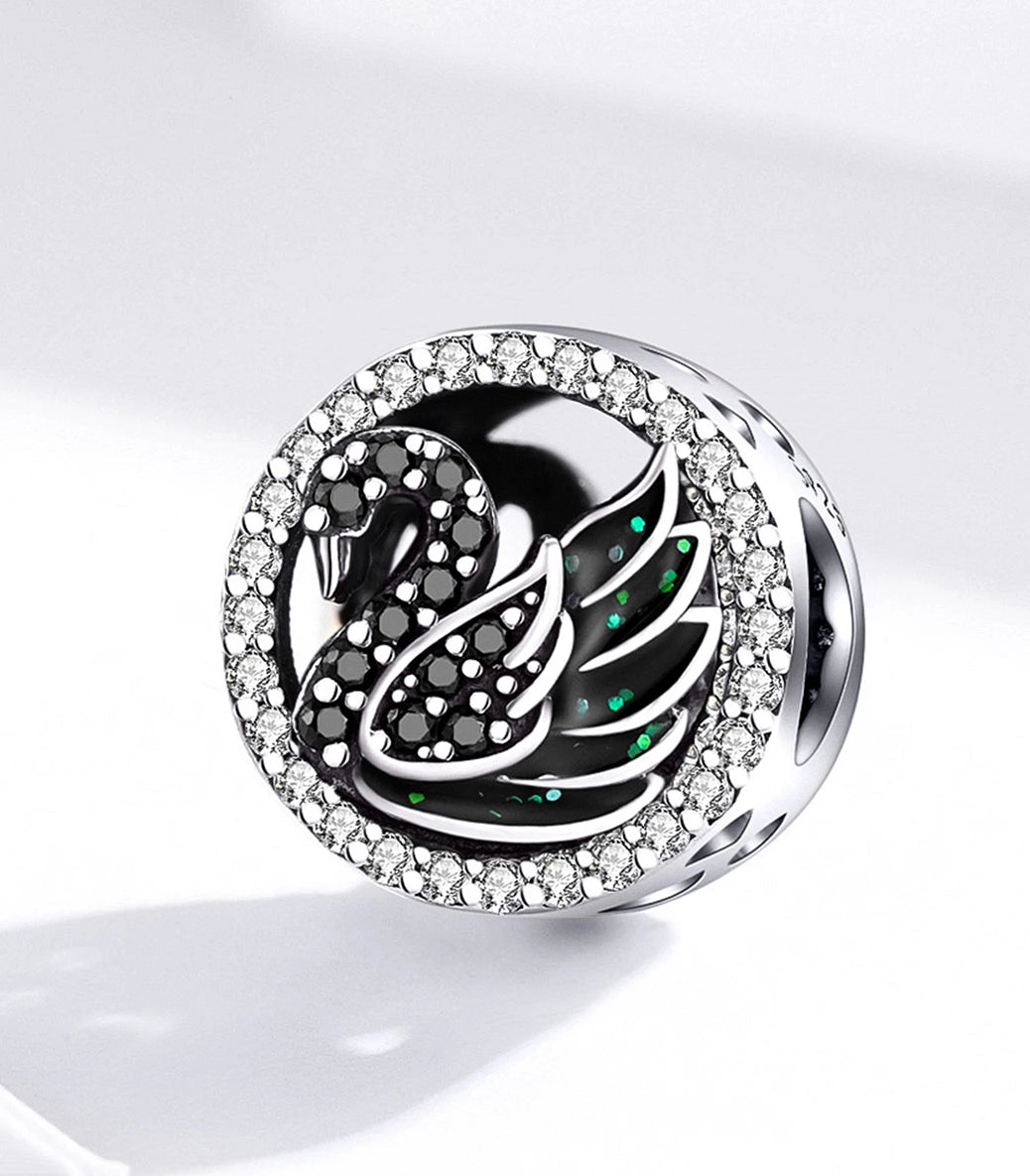 Сребърен талисман с бял и черен кубичен циркон и черен емайл с проблясъци в зелено