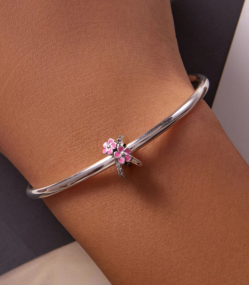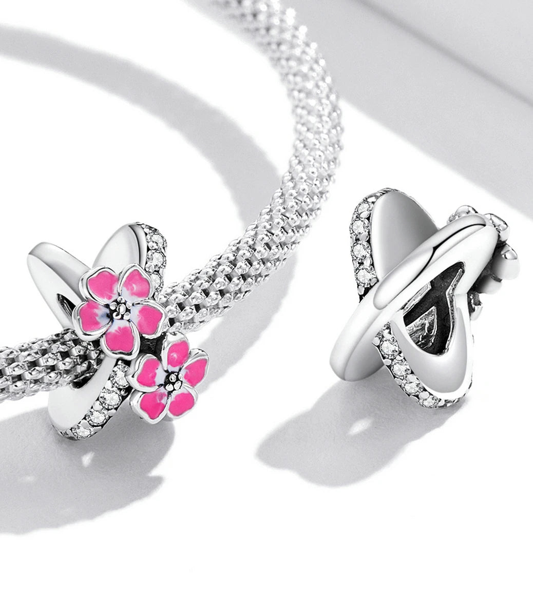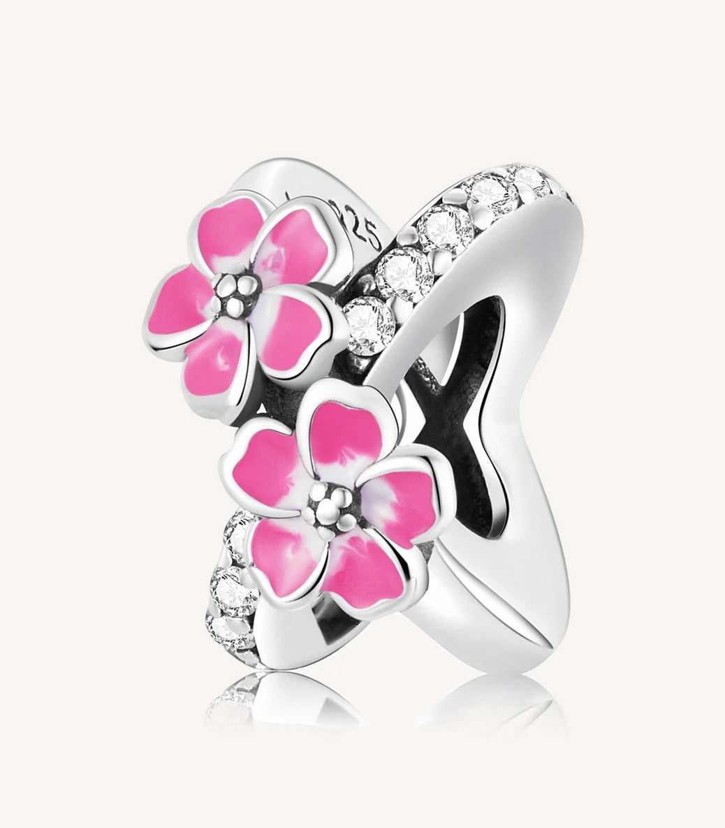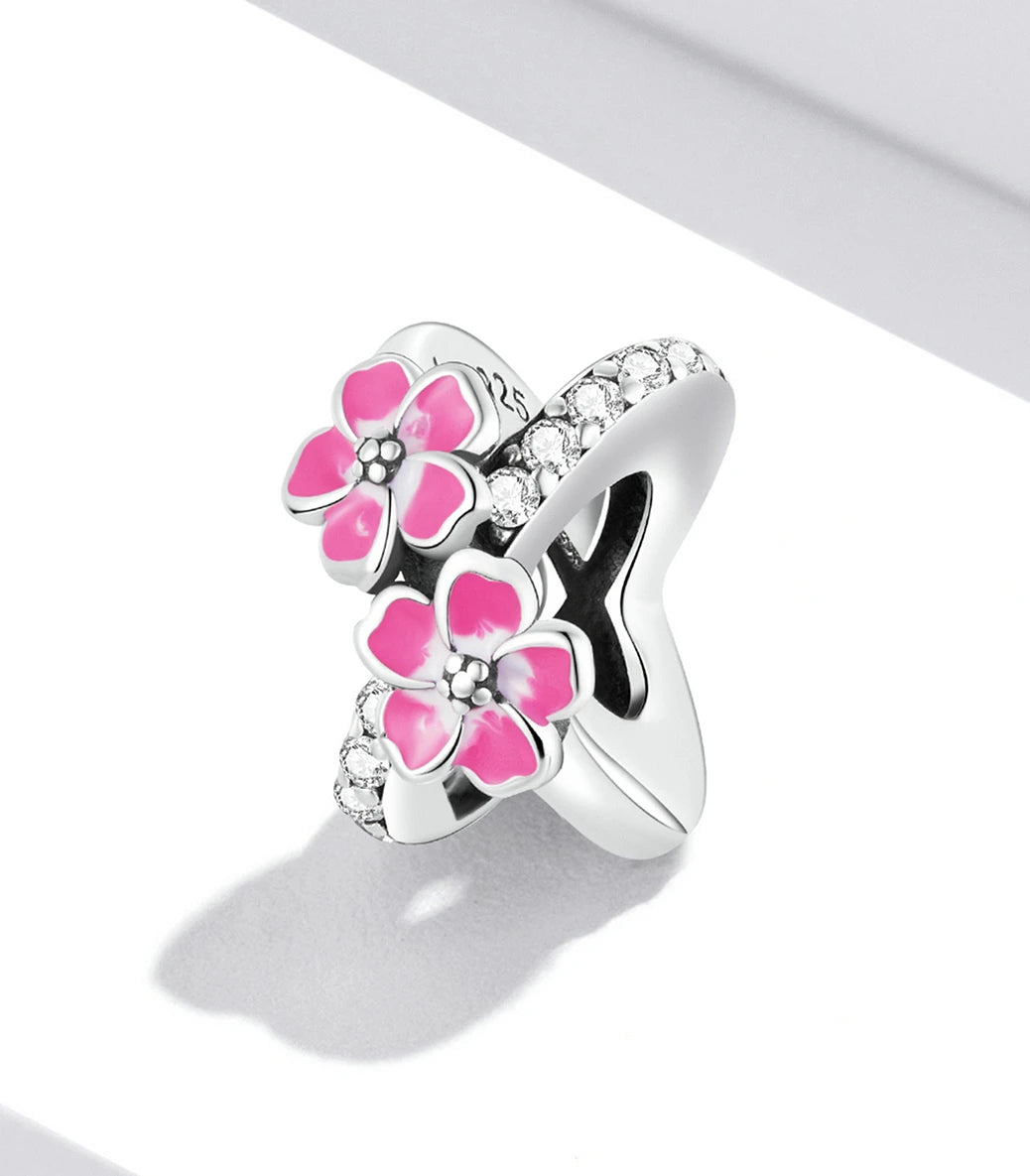 Сребърен талисман с бял кубичен циркон и розов емайл
