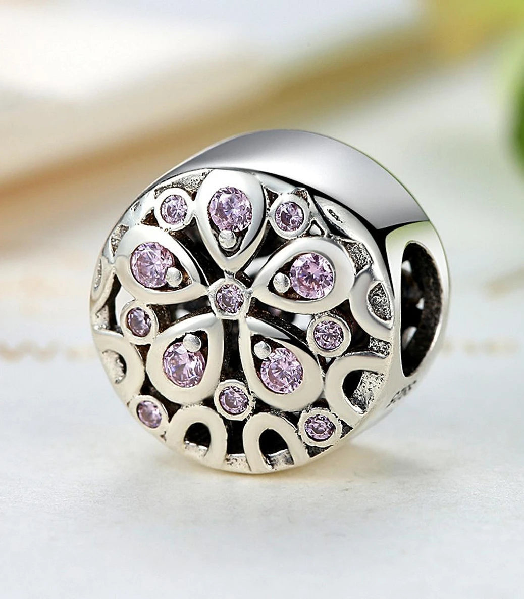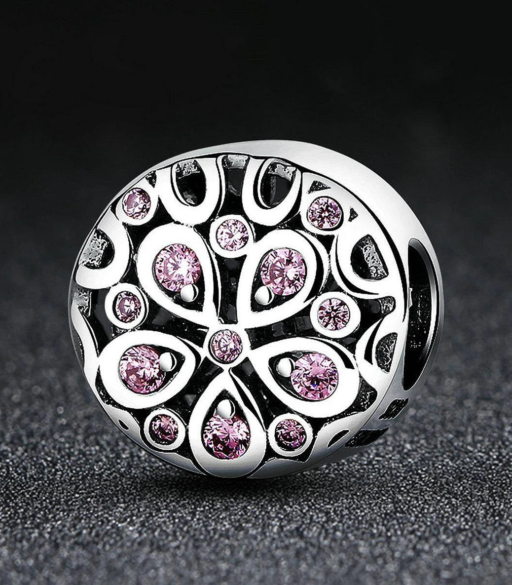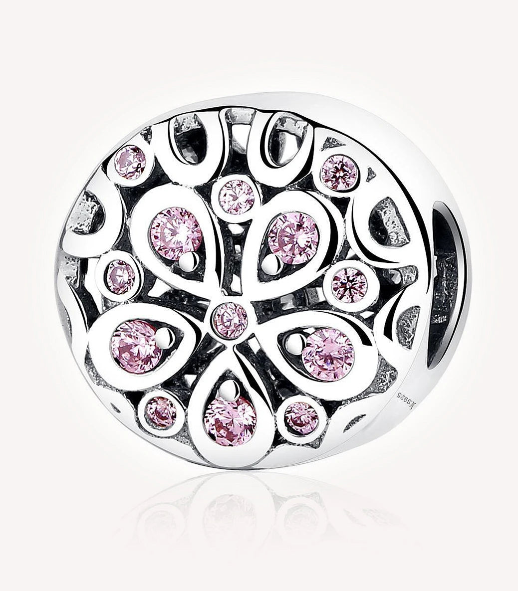 Сребърен талисман с розов кубичен циркон