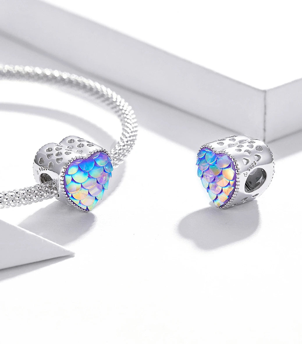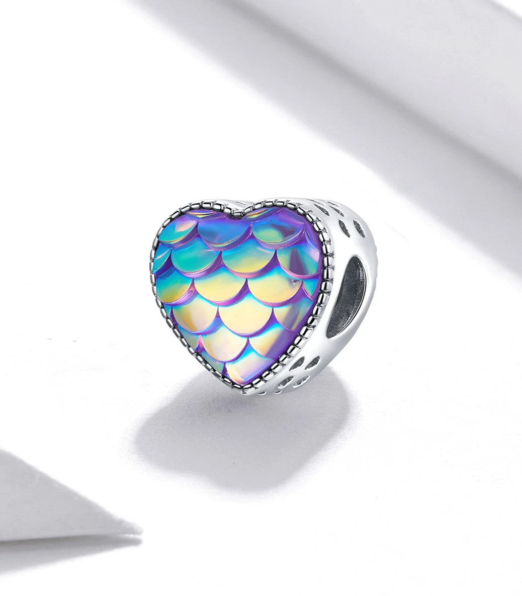 Сребърен талисман с бижутерийна смола, в преливащи разноцветни нюанси, сменящи си цвета на света