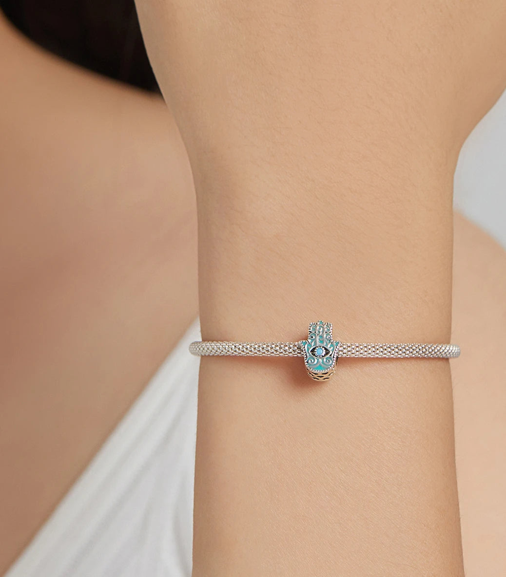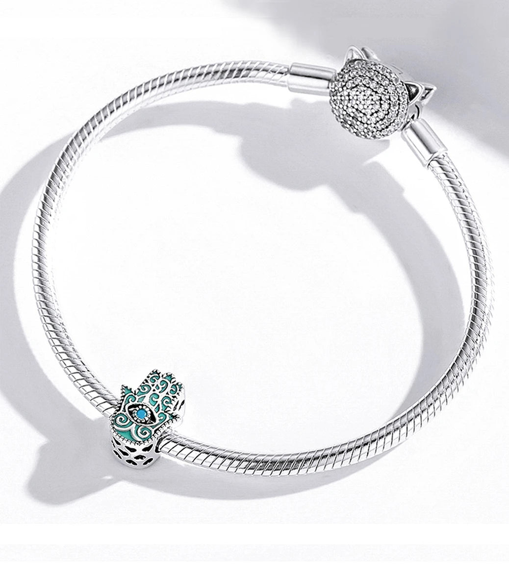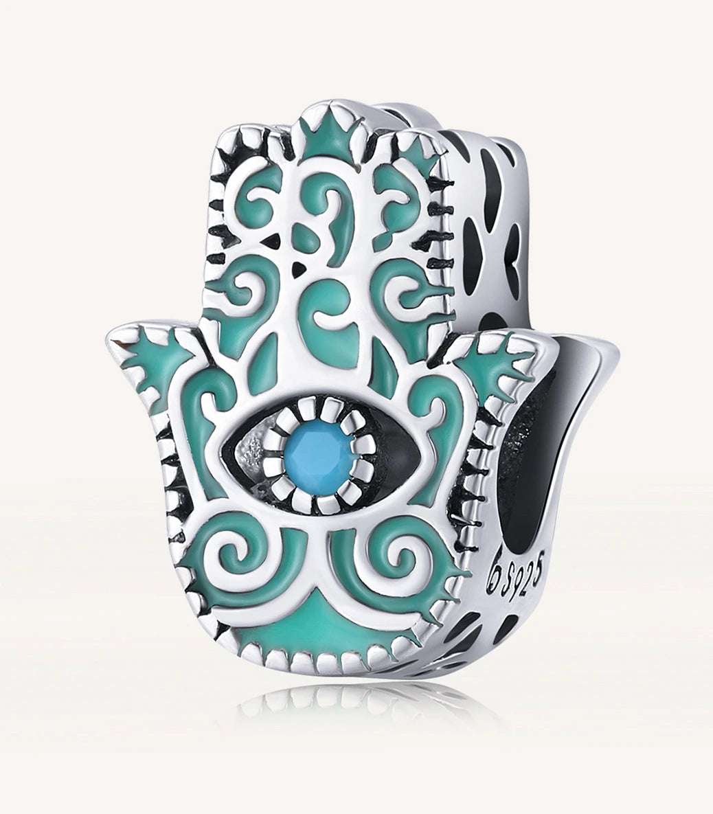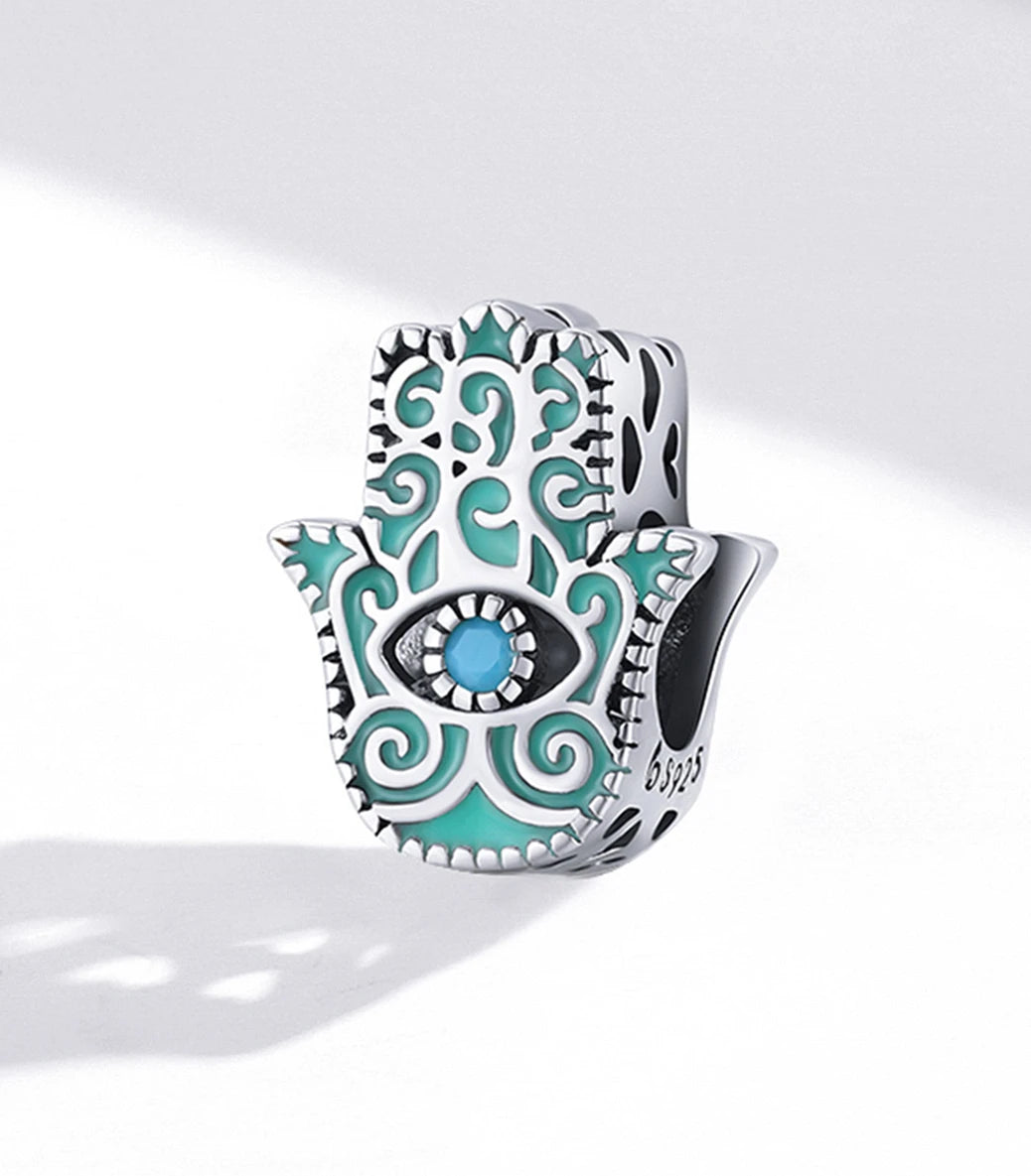 Сребърен талисман със син кубичен циркон и зелен емайл