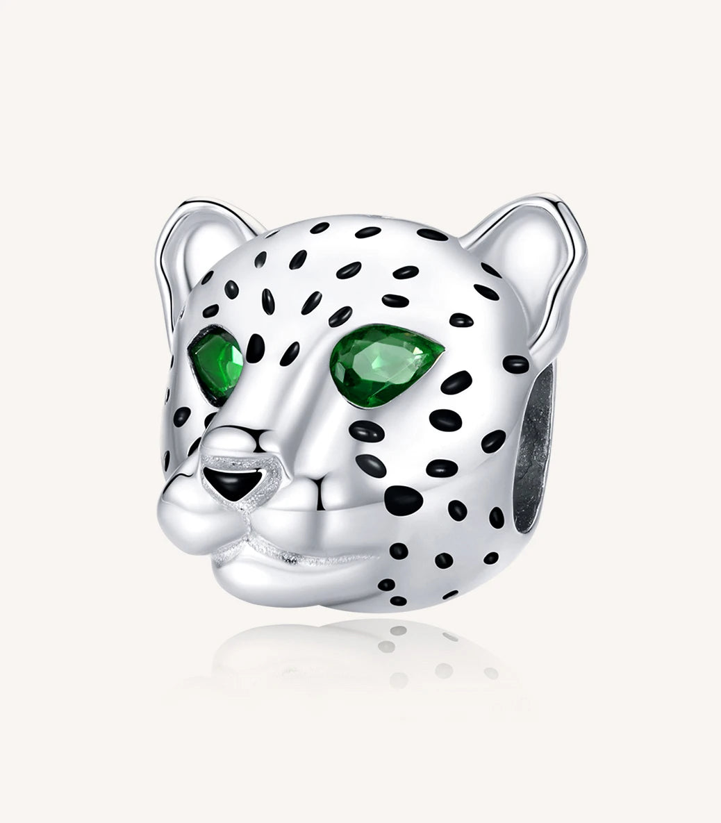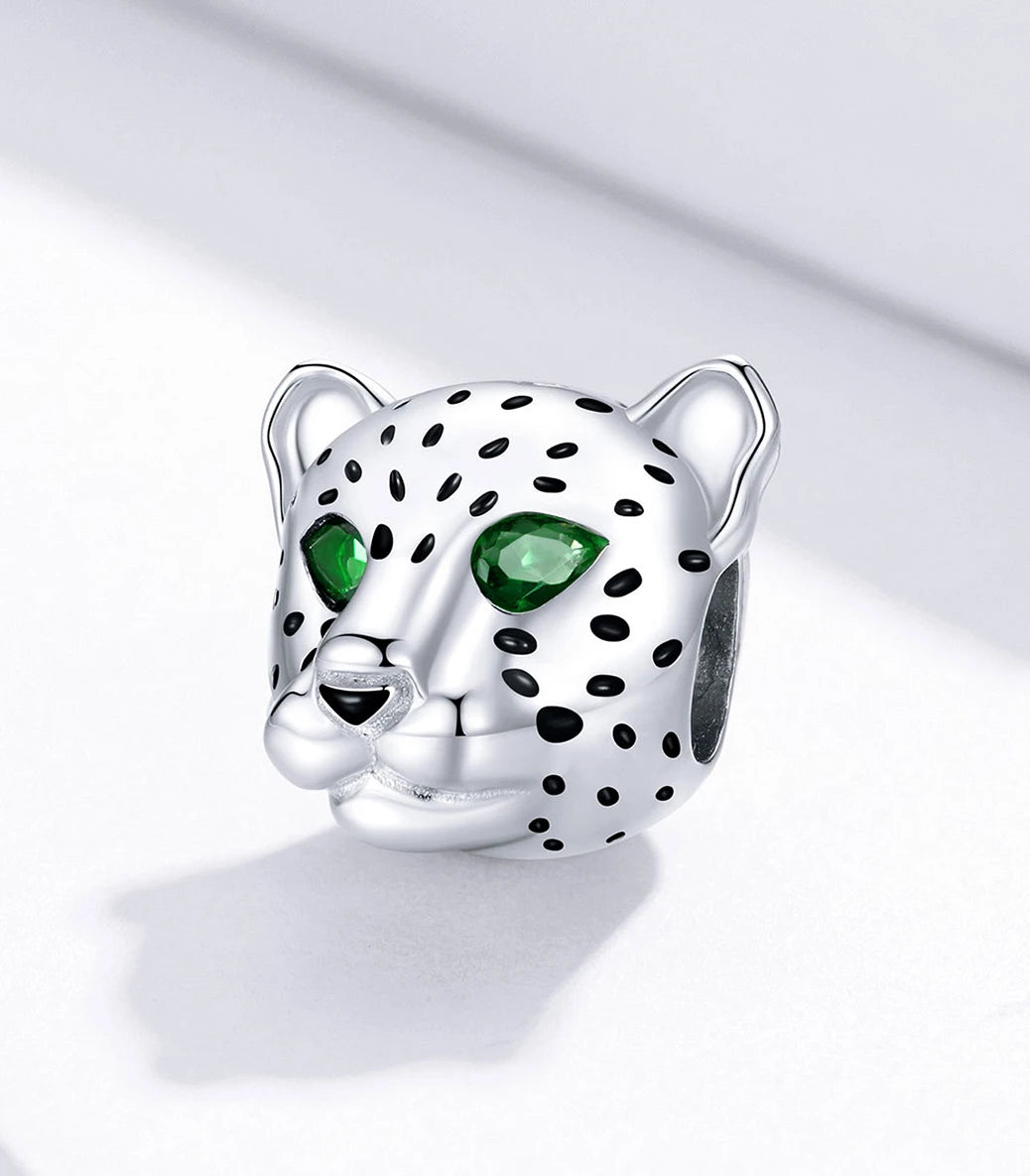 Сребърен талисман със зелен кубичен циркон и черен емайл
