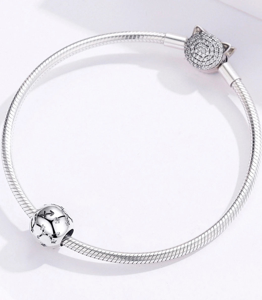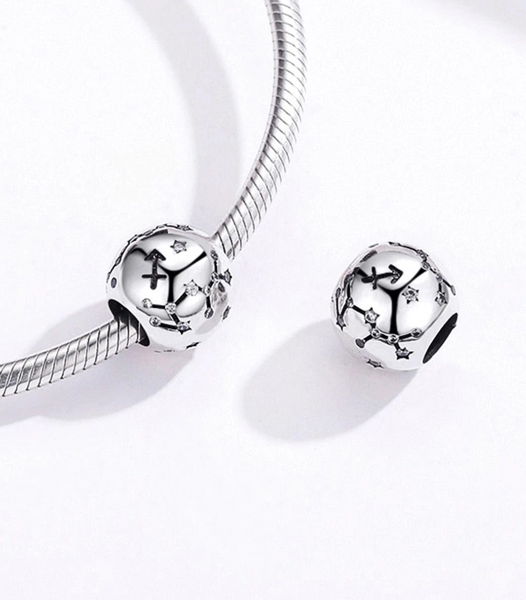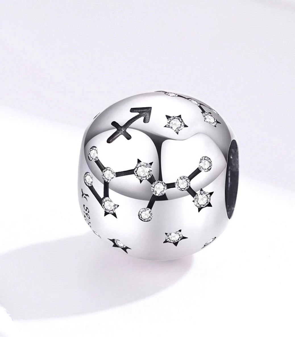 Сребърен талисман – зодиакален знак и съзвездие „Стрелец“ - с бял кубичен циркон