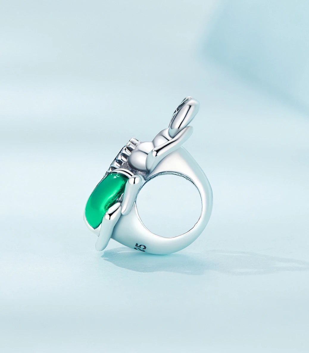 Сребърен талисман със син и бял кубичен циркон и зелен емайл