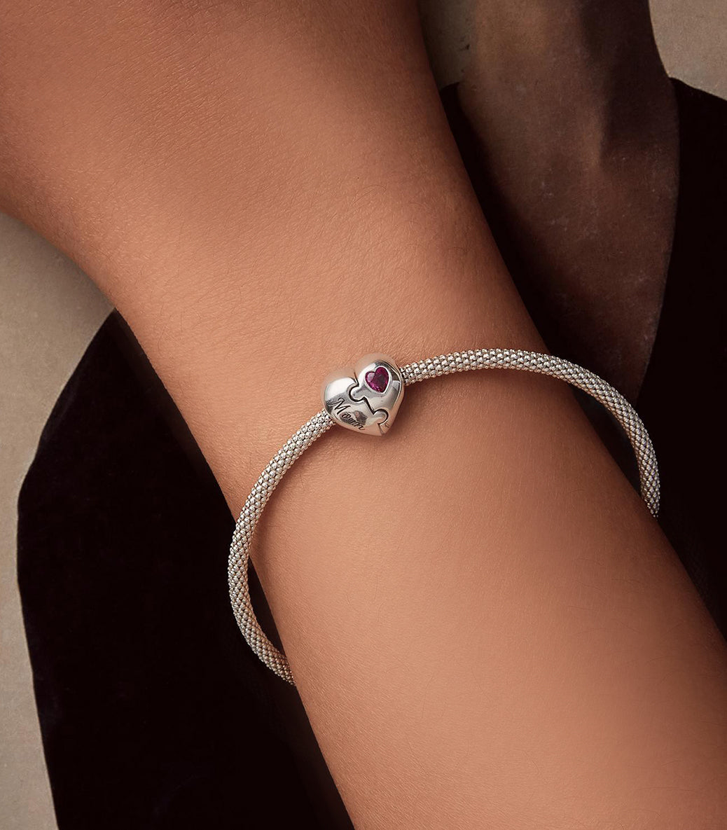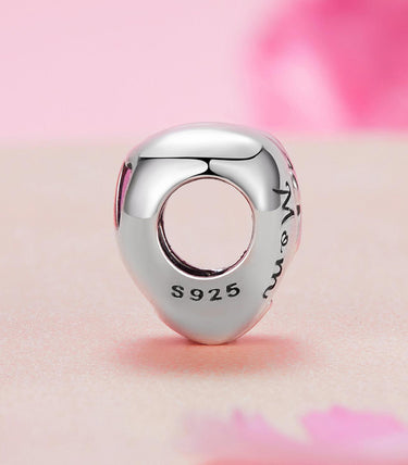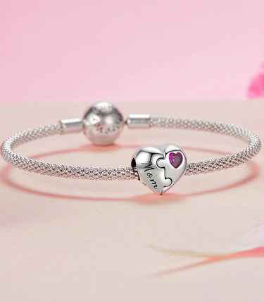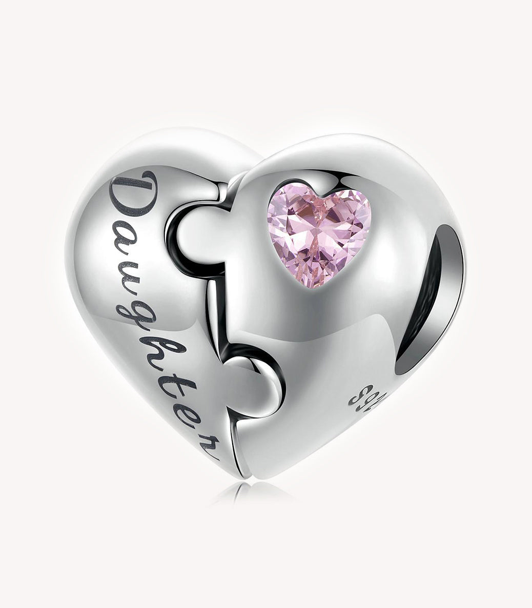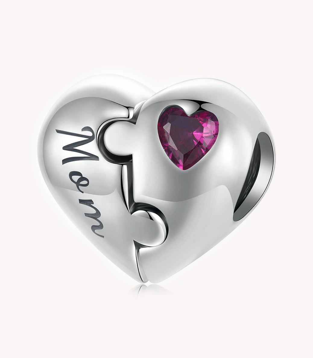 Сребърен талисман от две части, с розов и пурпурен кубичен циркон и надпис “Mom/Daughter” (Майка / Дъщеря)