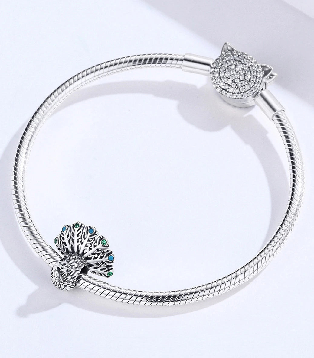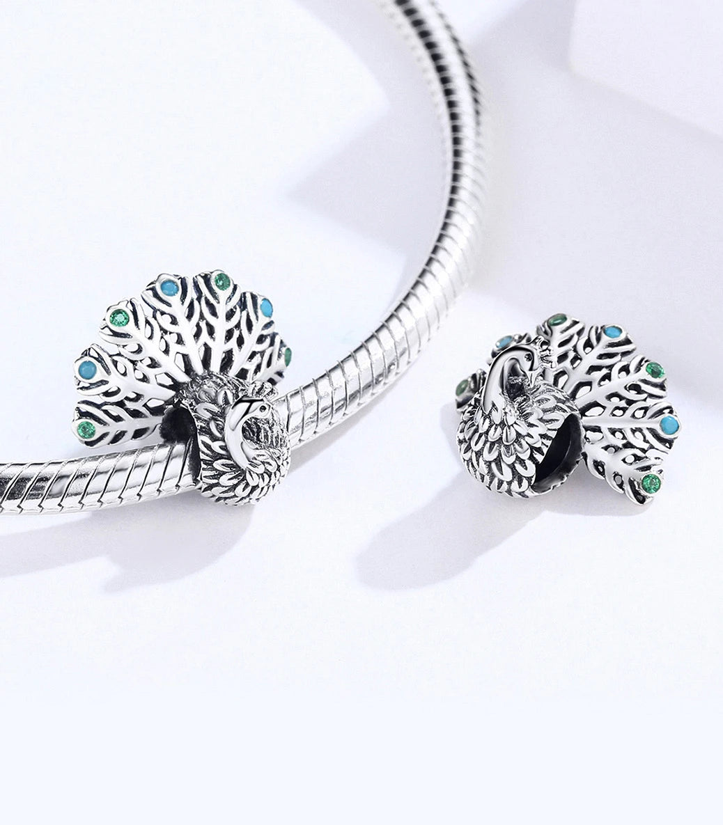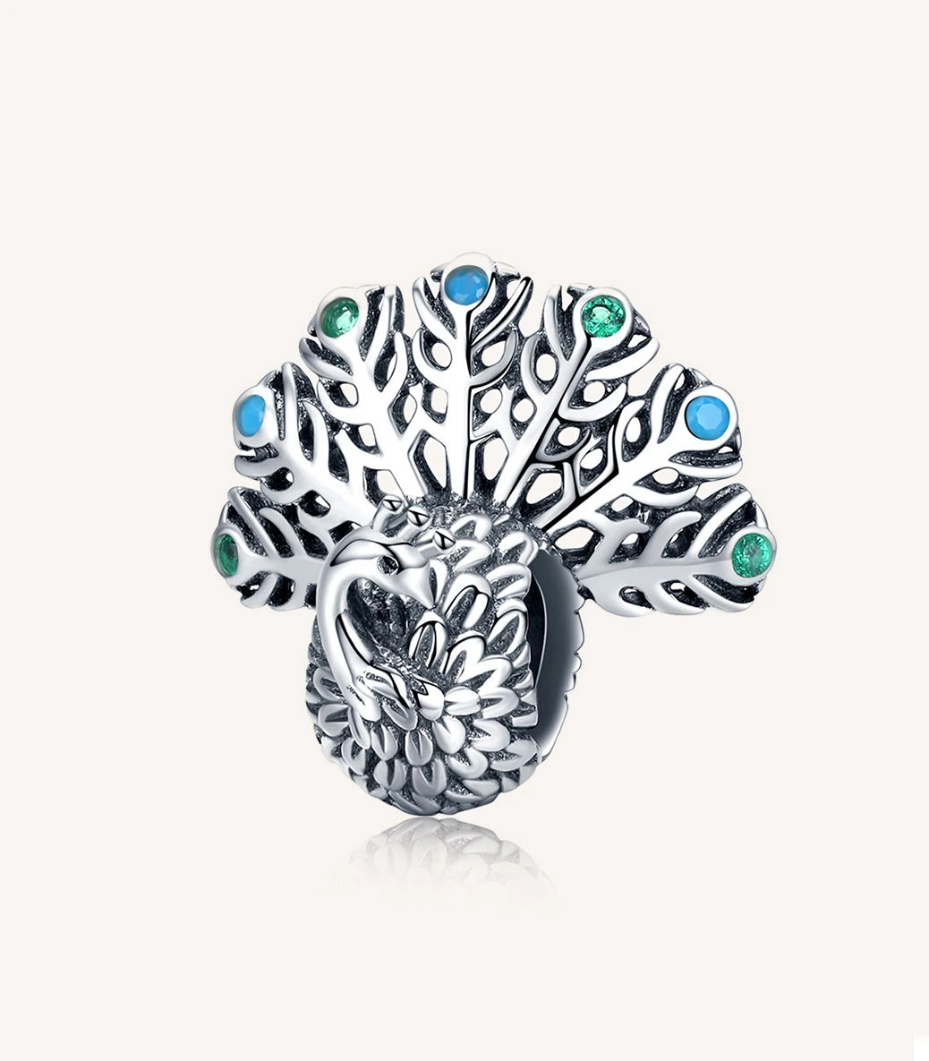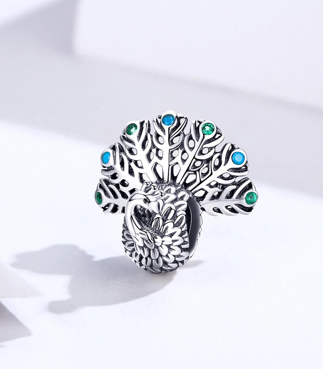 Сребърен талисман със зелен и тюркоазен кубичен циркон