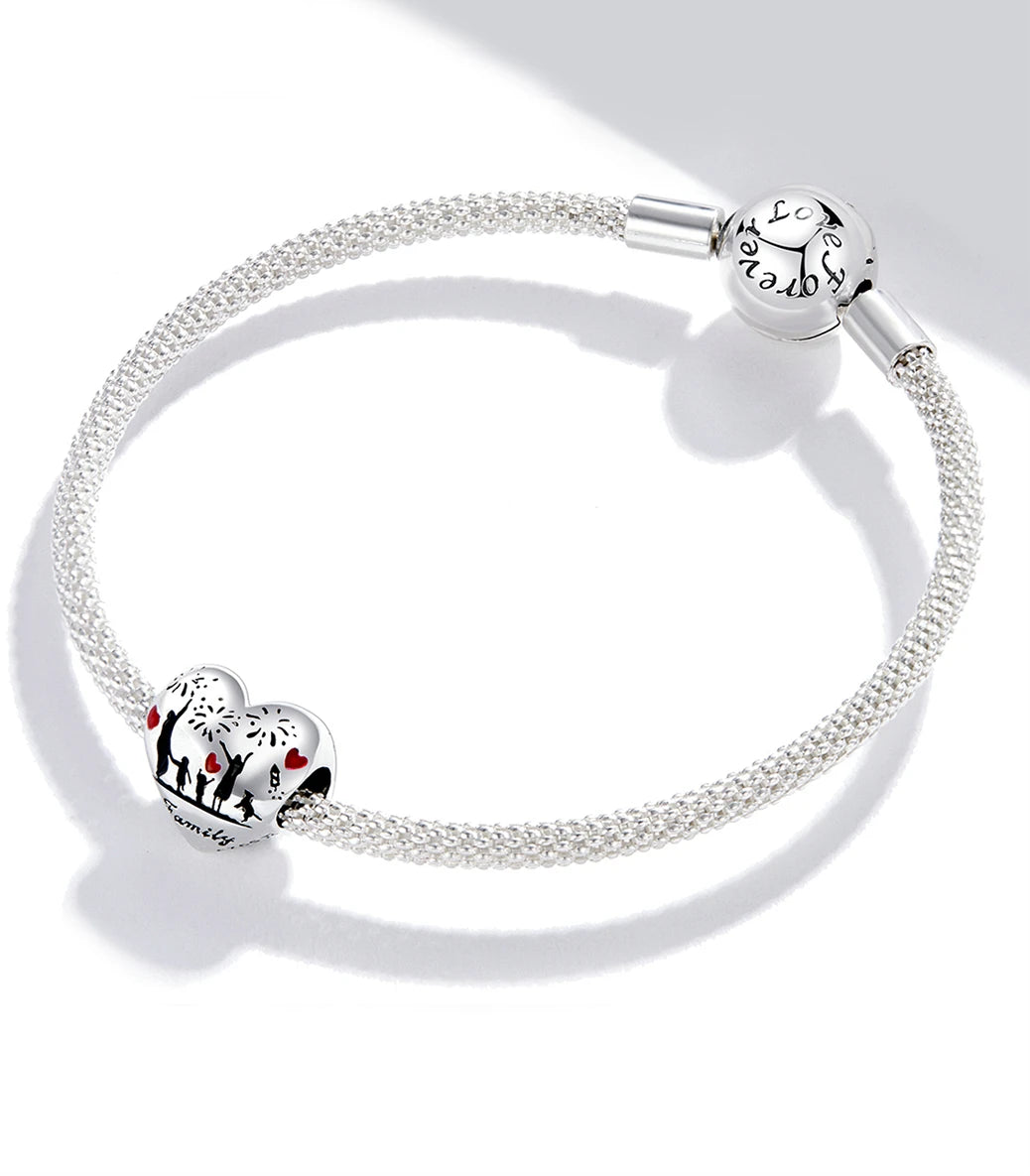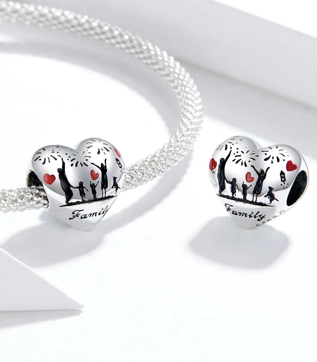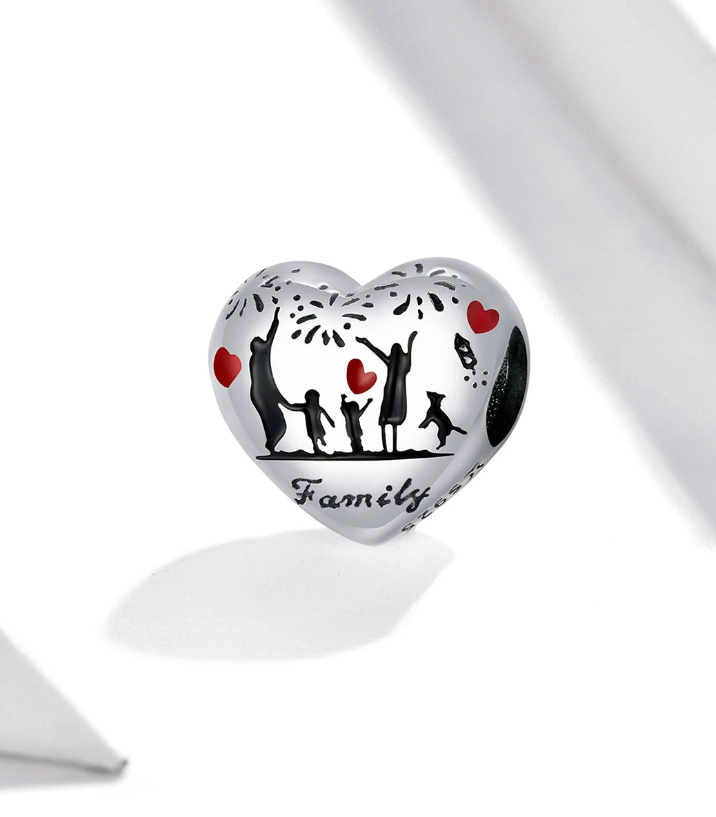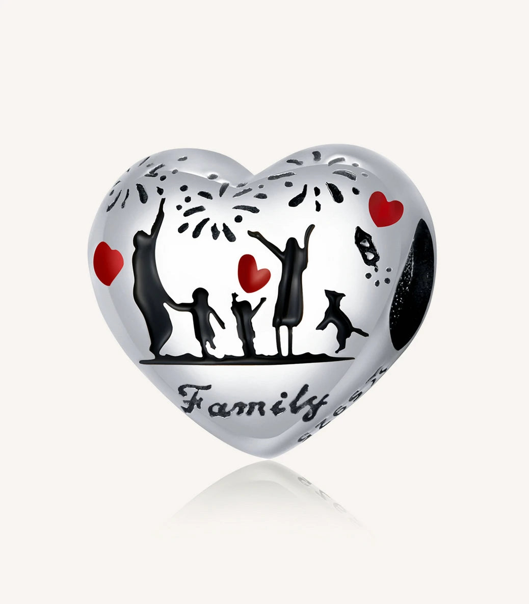 Сребърен талисман с черен и червен емайл и надпис “Family” (Семейство)