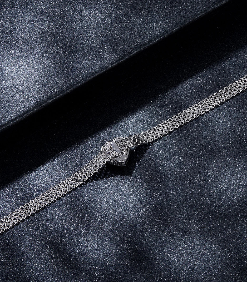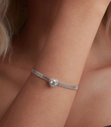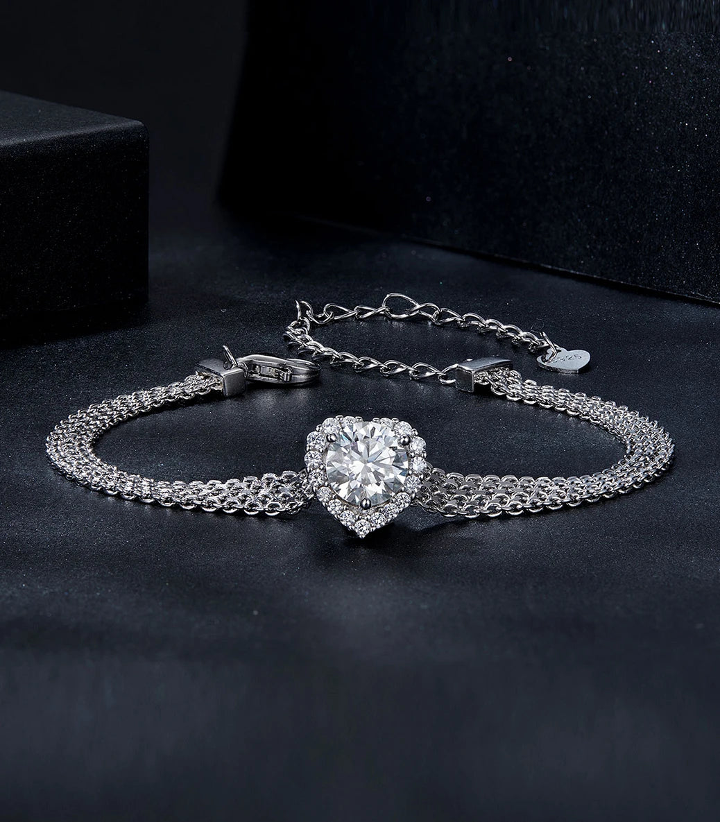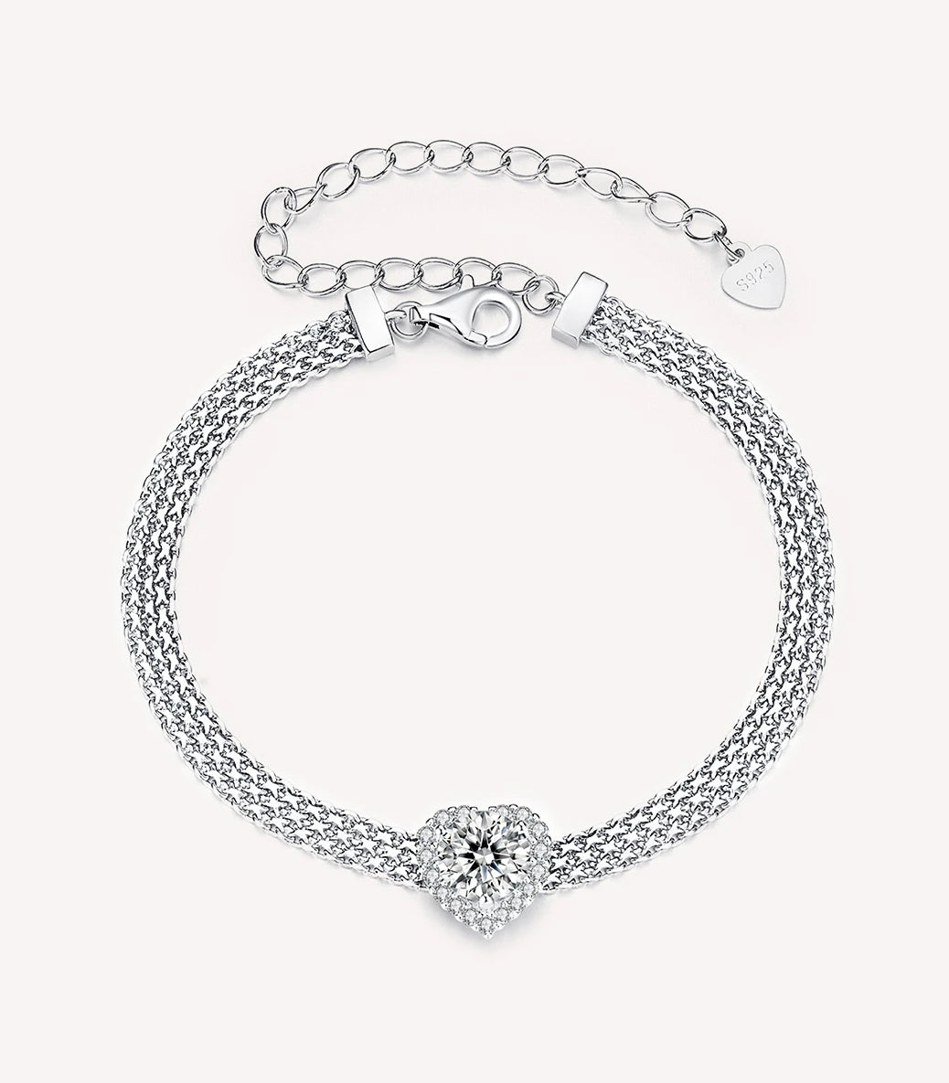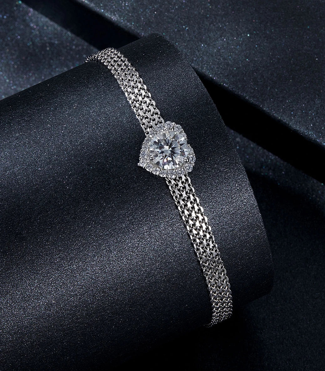 Сребърна регулируема гривна със закопчалка със защитаващ механизъм, скъпоценен камък мойсанит и бял кубичен циркон