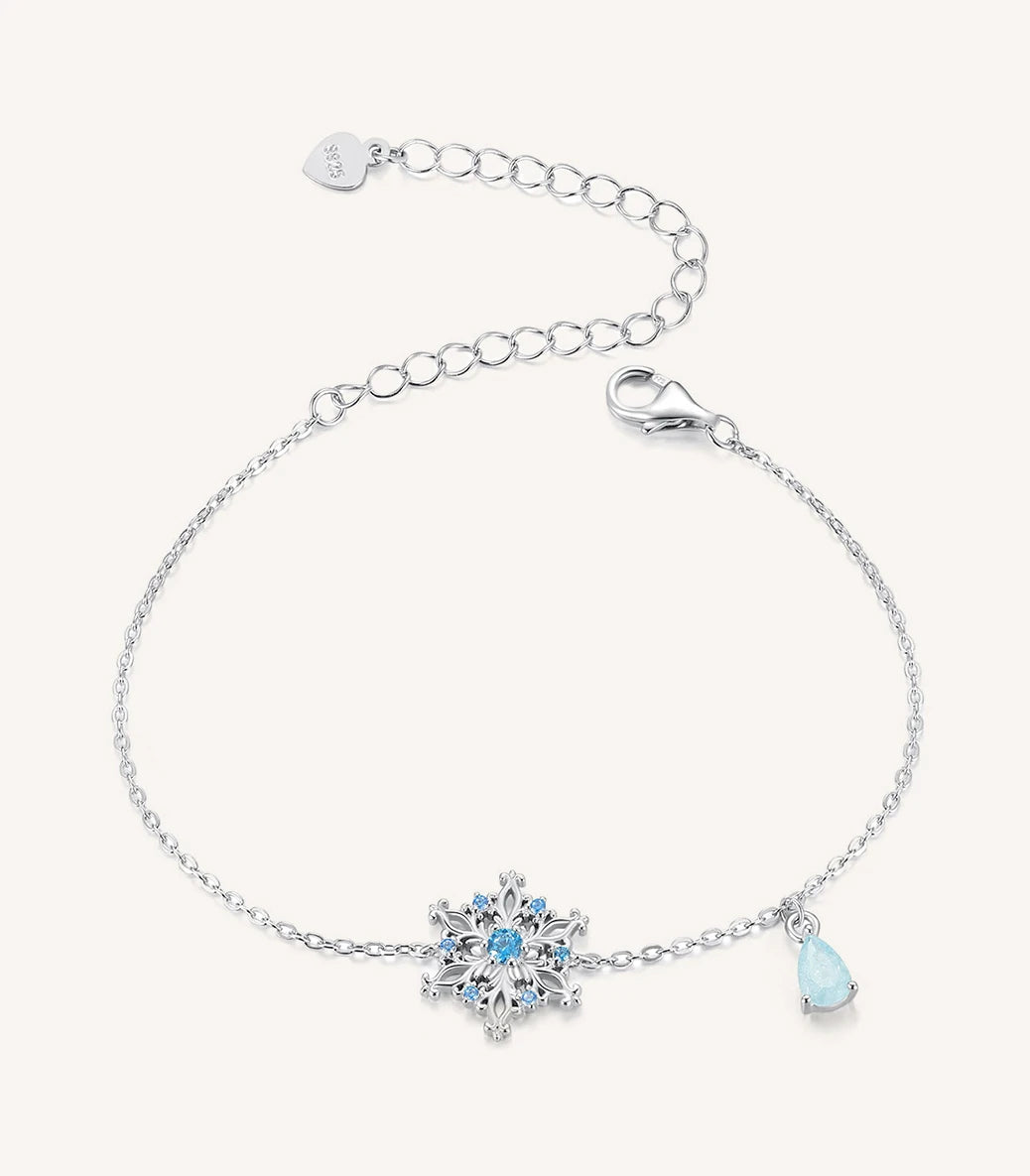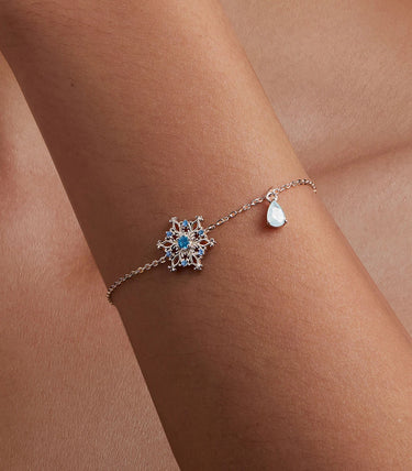 Сребърна регулируема гривна със закопчалка със запазващ механизъм и син кубичен циркон