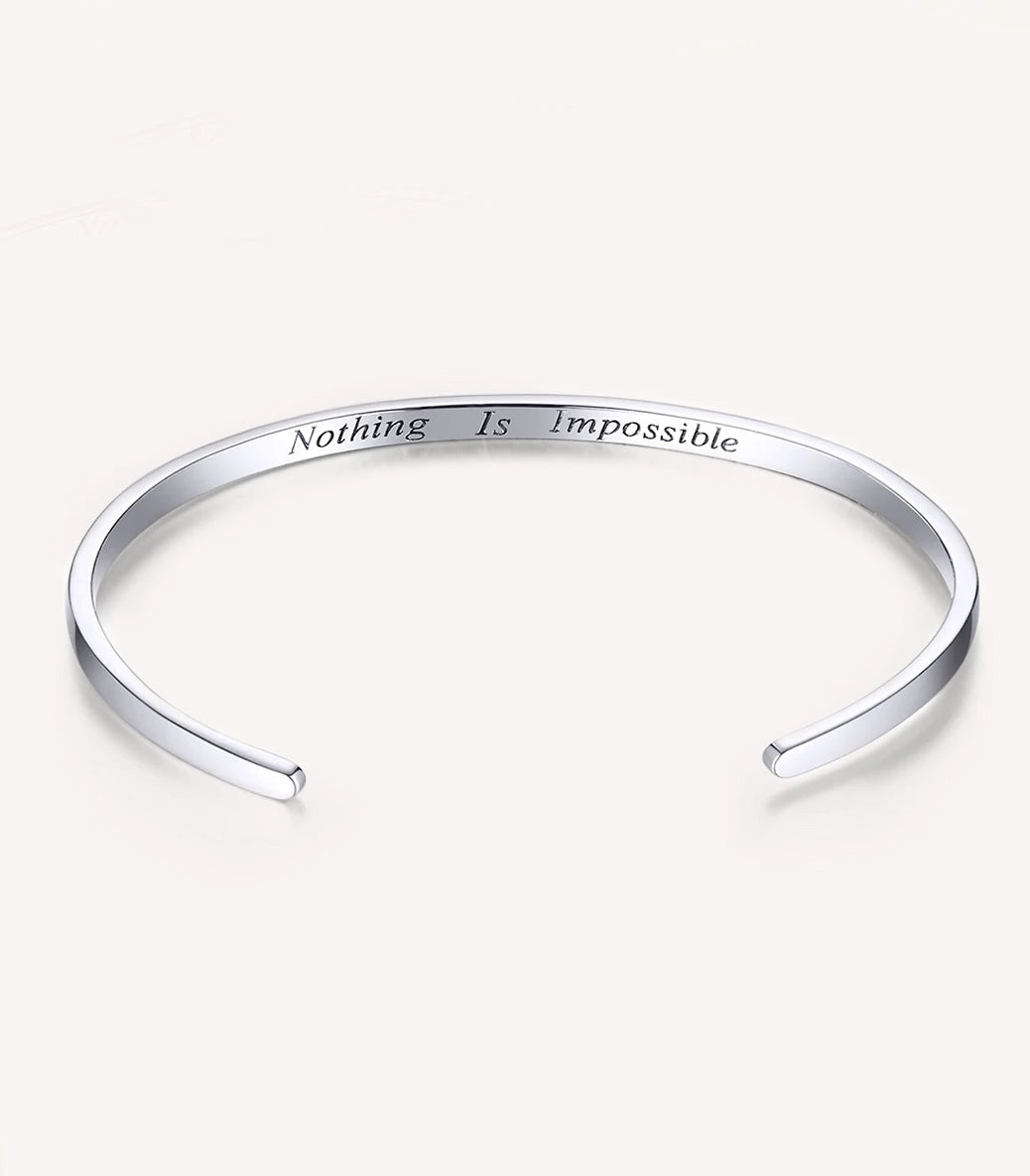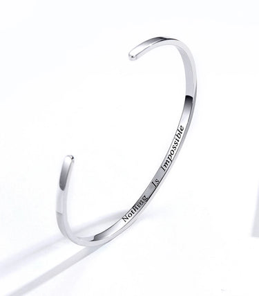 Сребърна регулирана гривна с надпис “Нищо не е възможно”