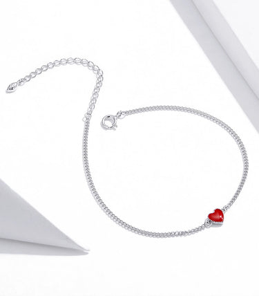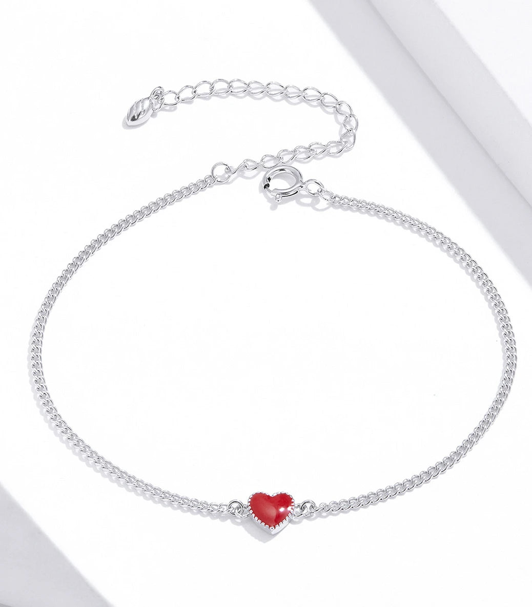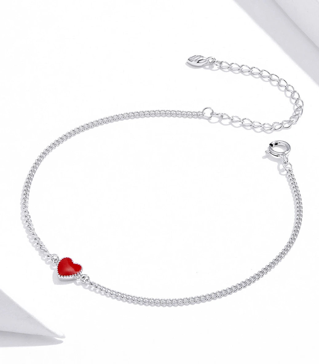 Сребърна регулируема гривна със закопчалка със защитаващ механизъм и червен емайл