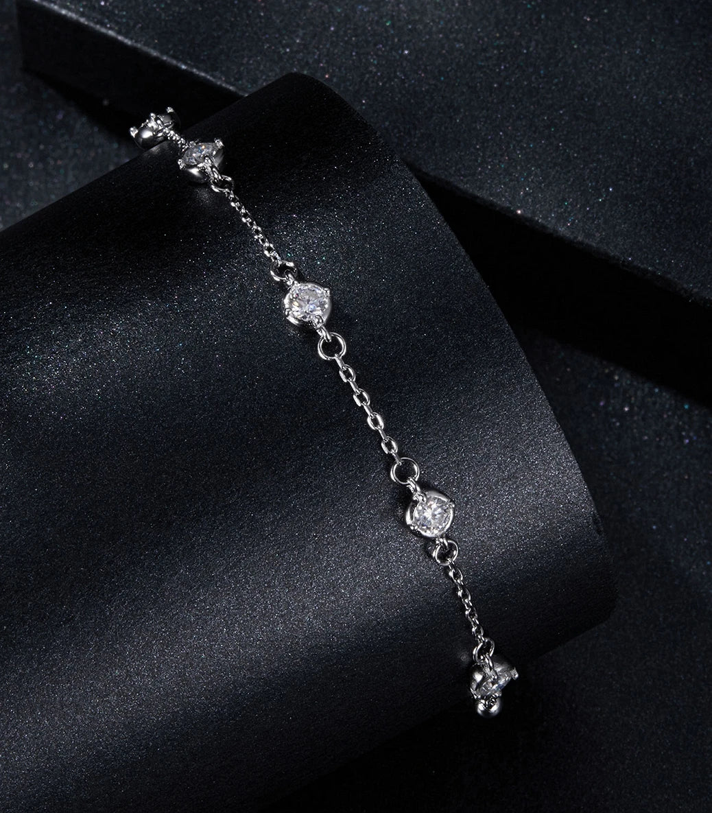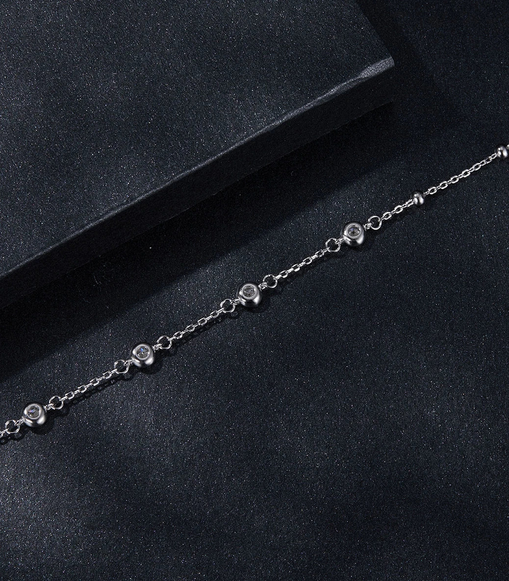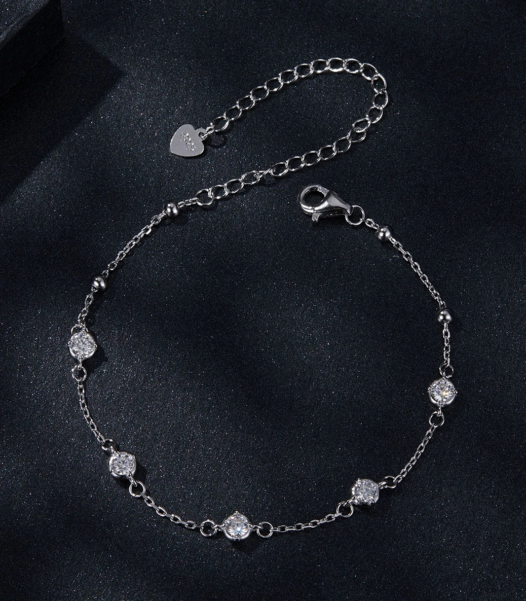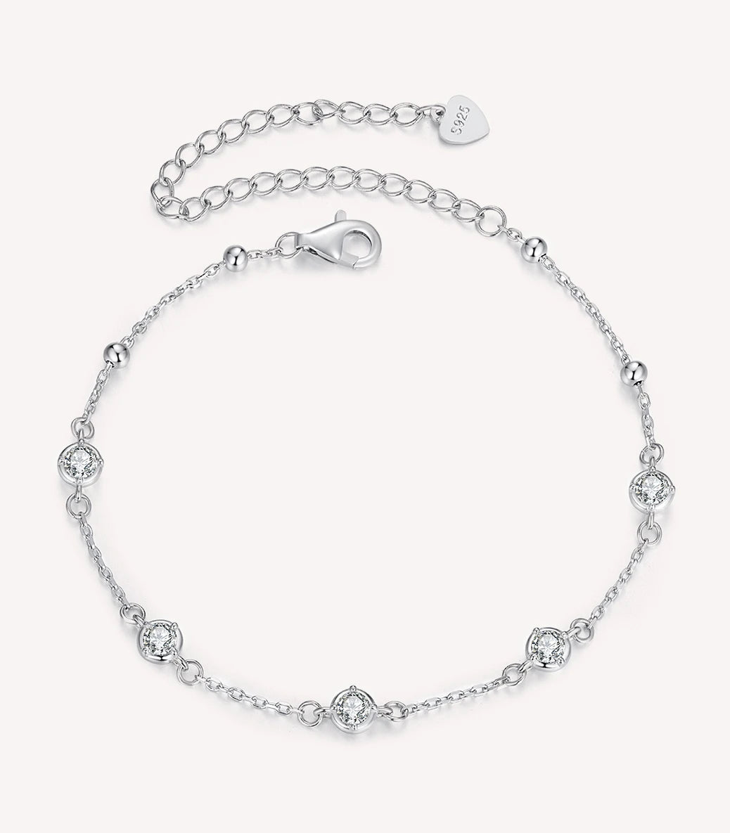 Сребърна регулируема гривна със закопчалка със запазващ механизъм и скъпоценния камък мойсанит