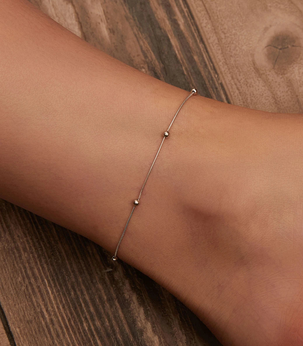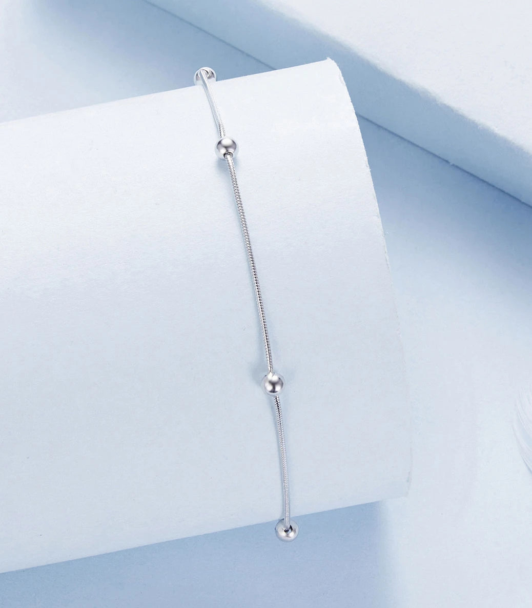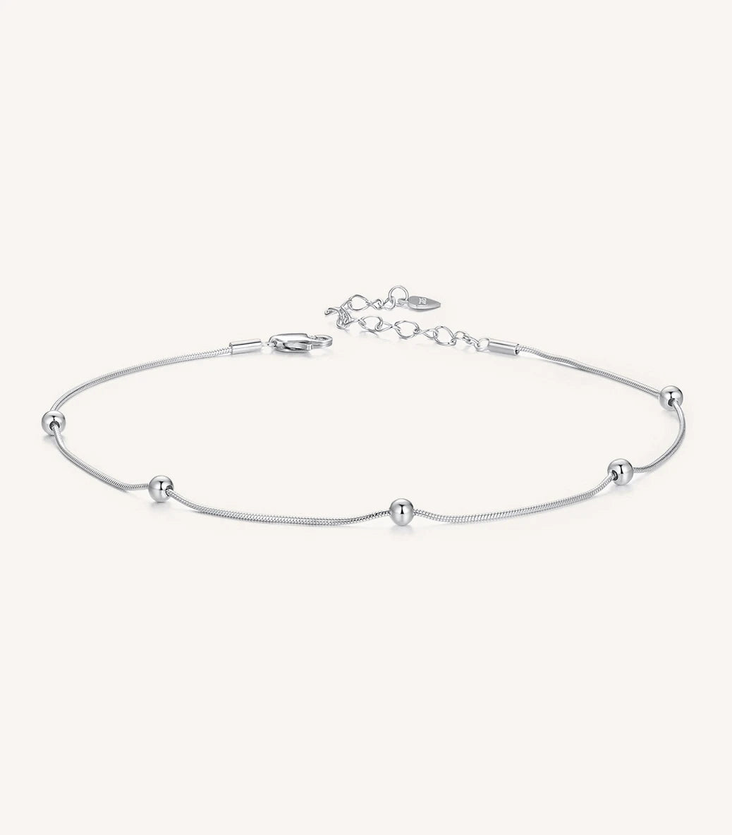 Сребърна регулируема гривна за крак със закопчалка със захващащ механизъм и сребърни мъниста