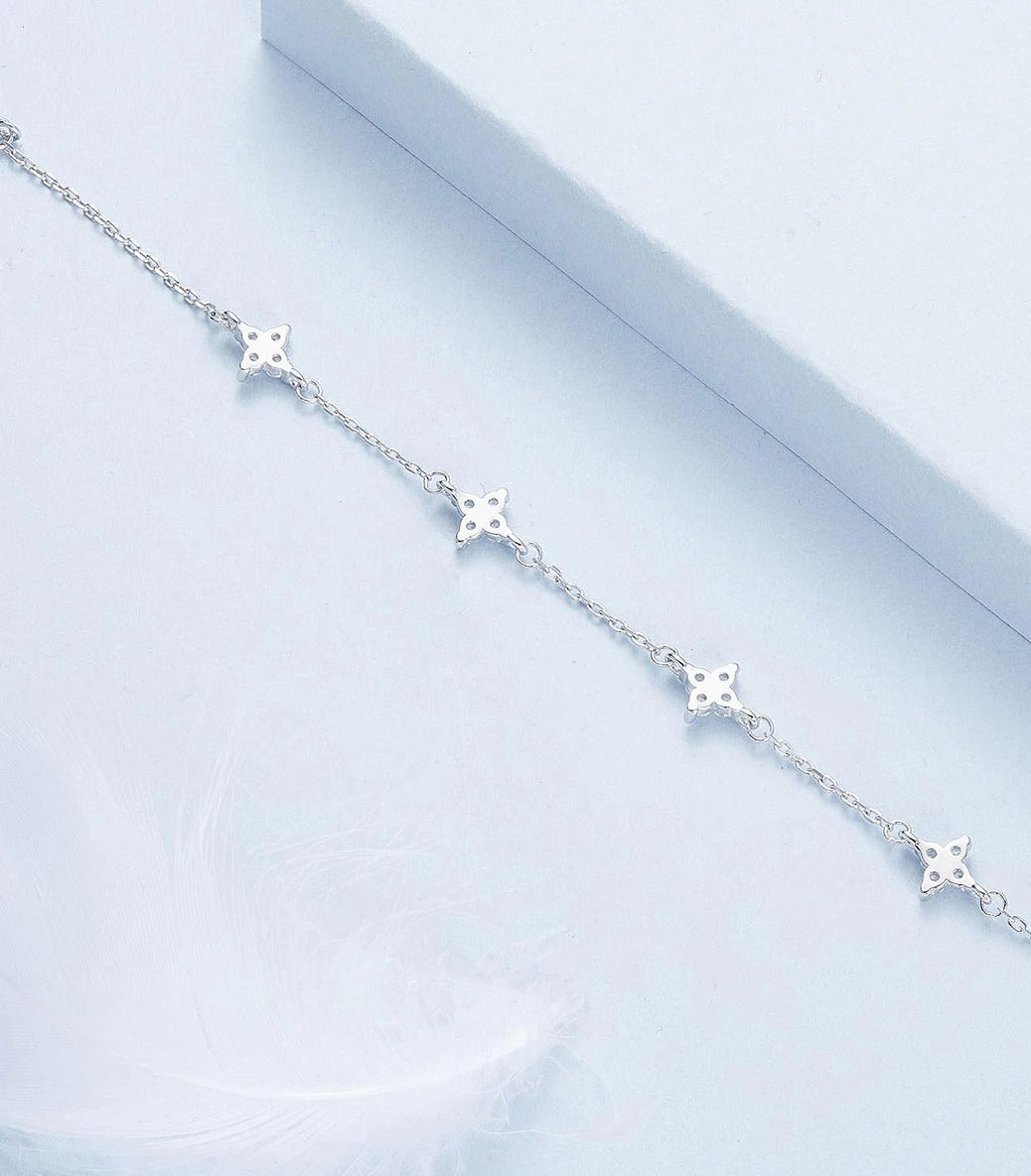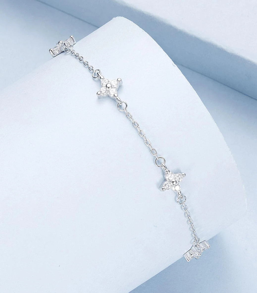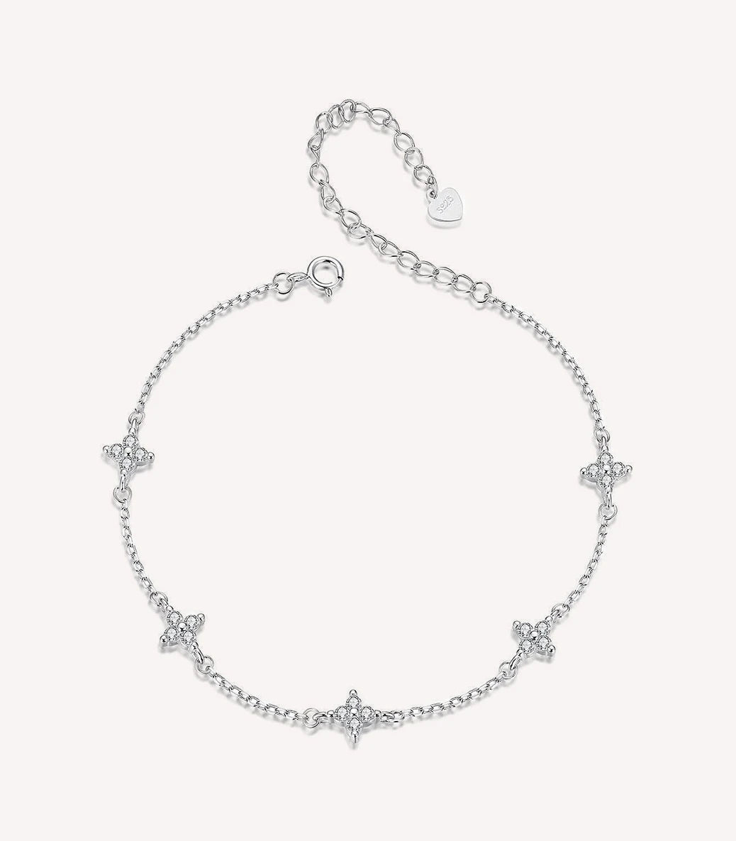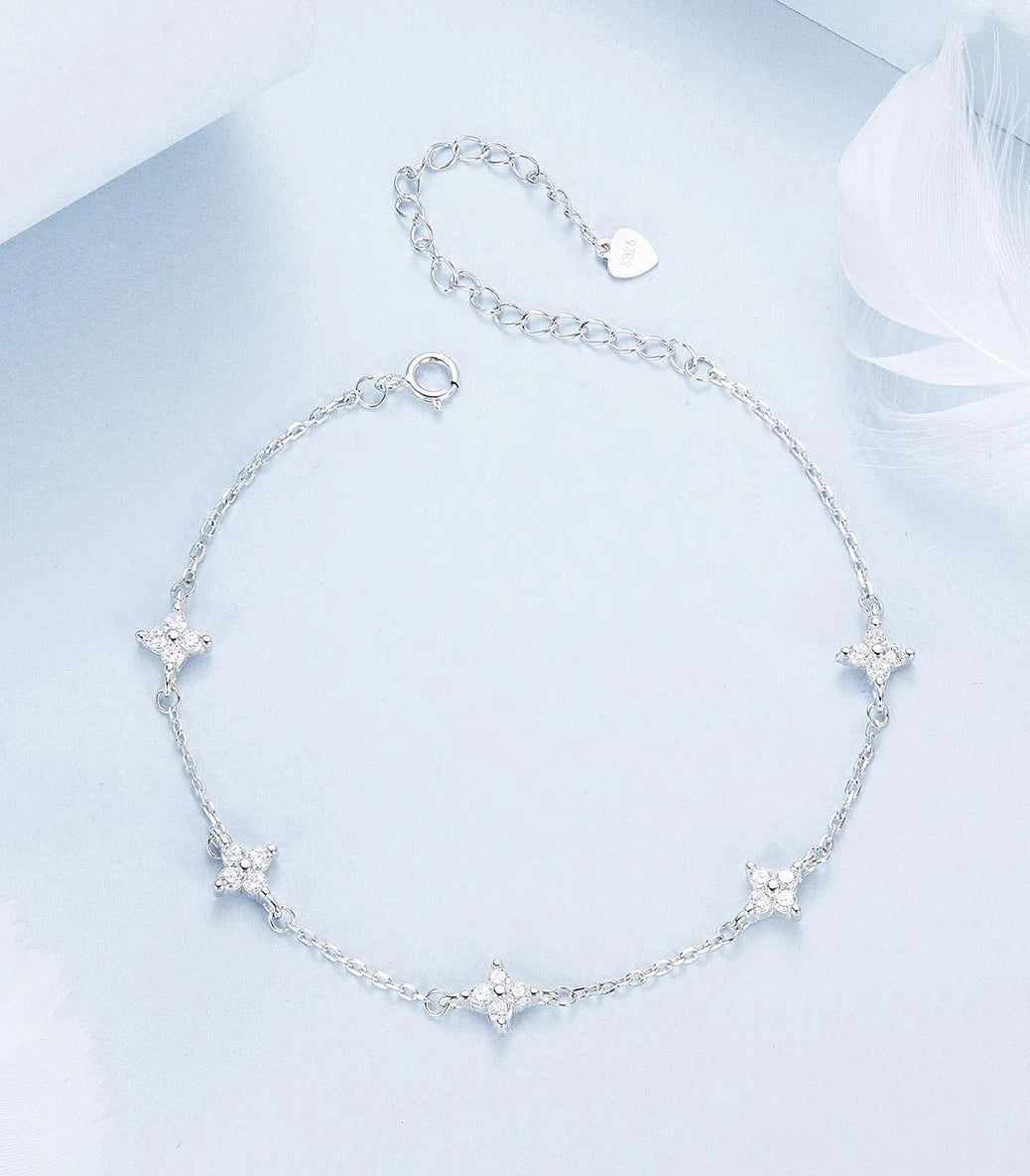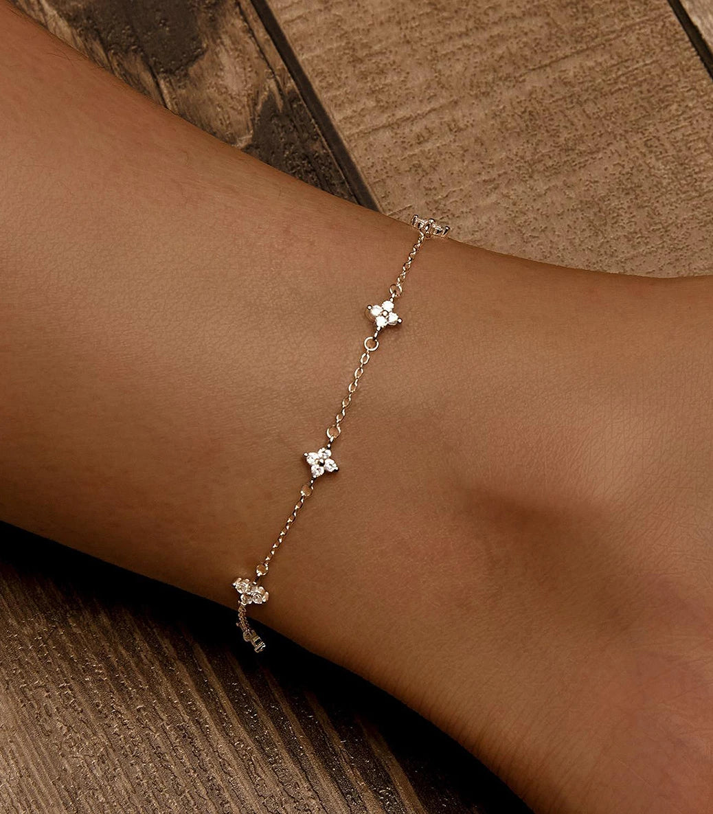 Сребърна регулируема гривна за крак със закопчалка със захващащ механизъм и бял кубичен циркон