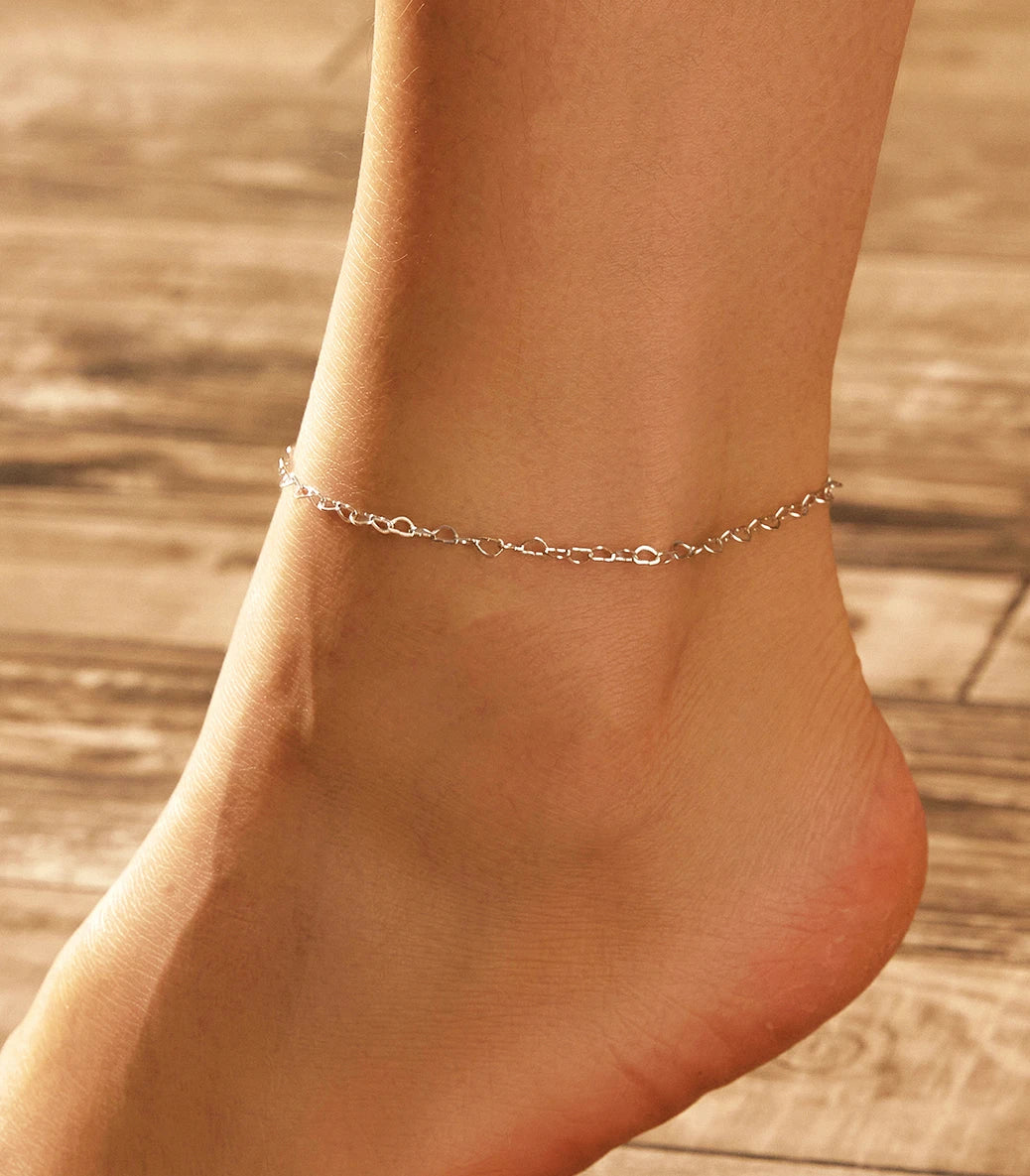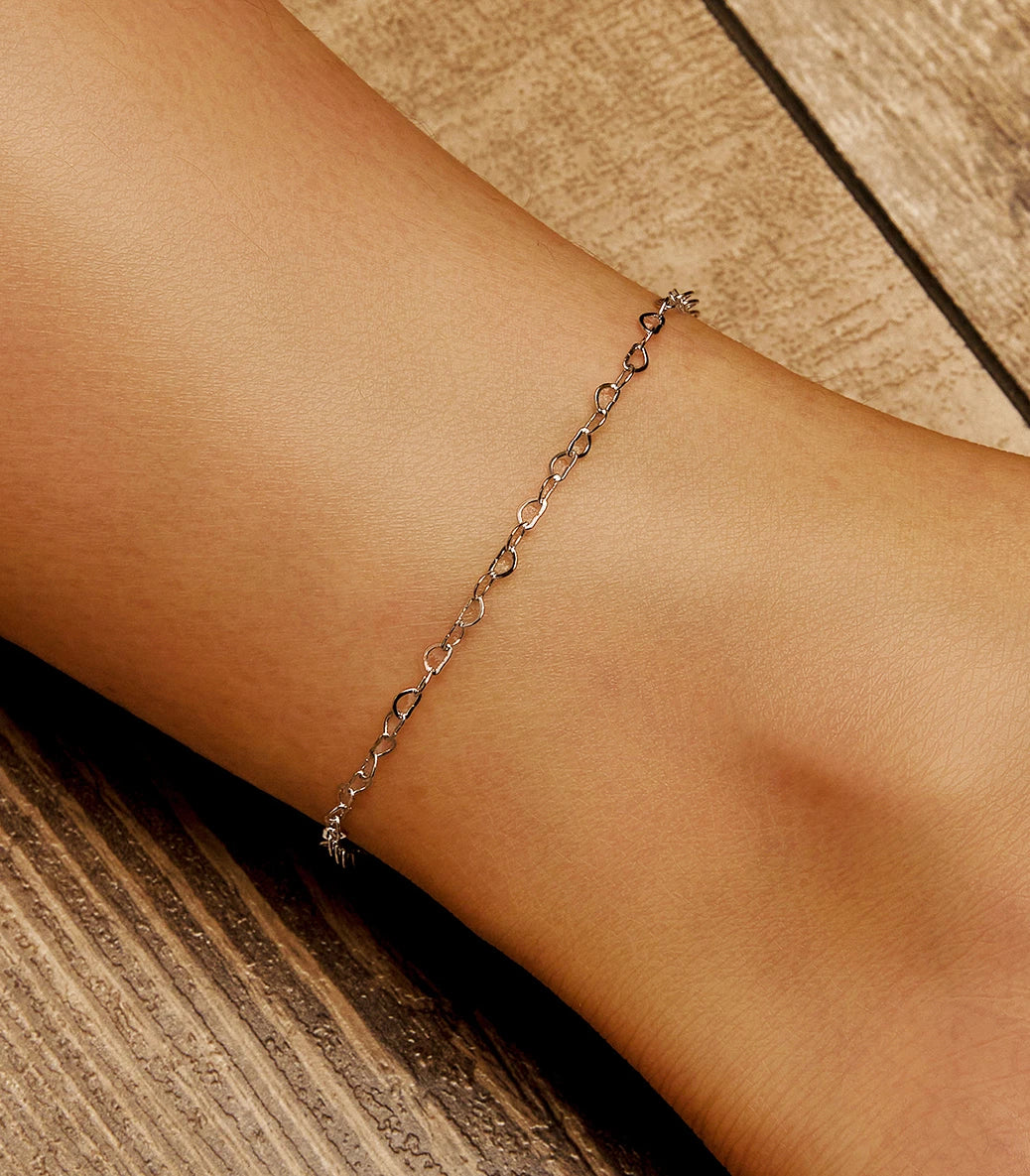 Сребърна регулируема гривна за крак със закопчалка със захващащ механизъм