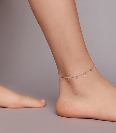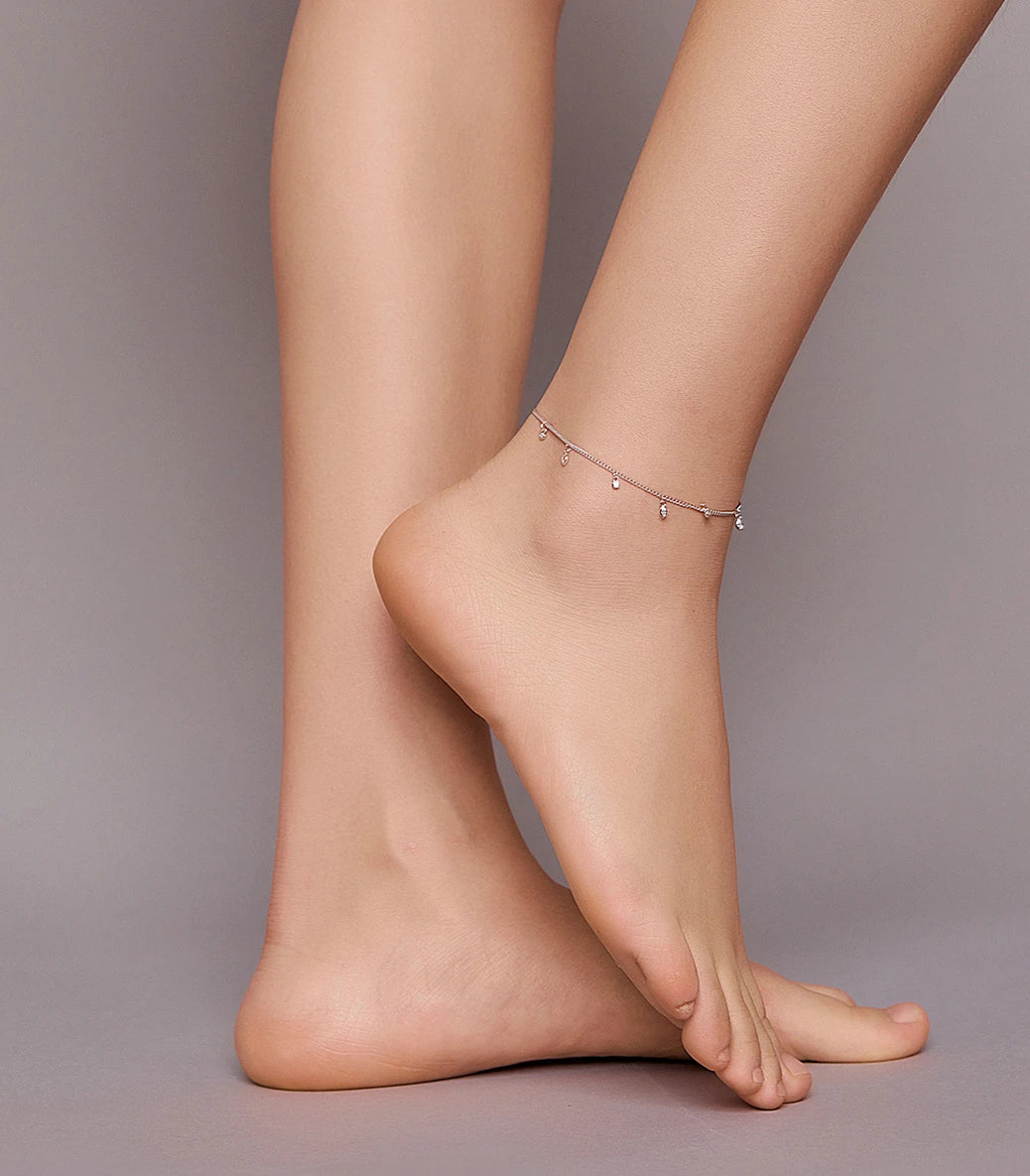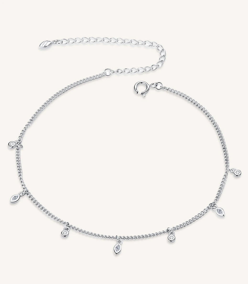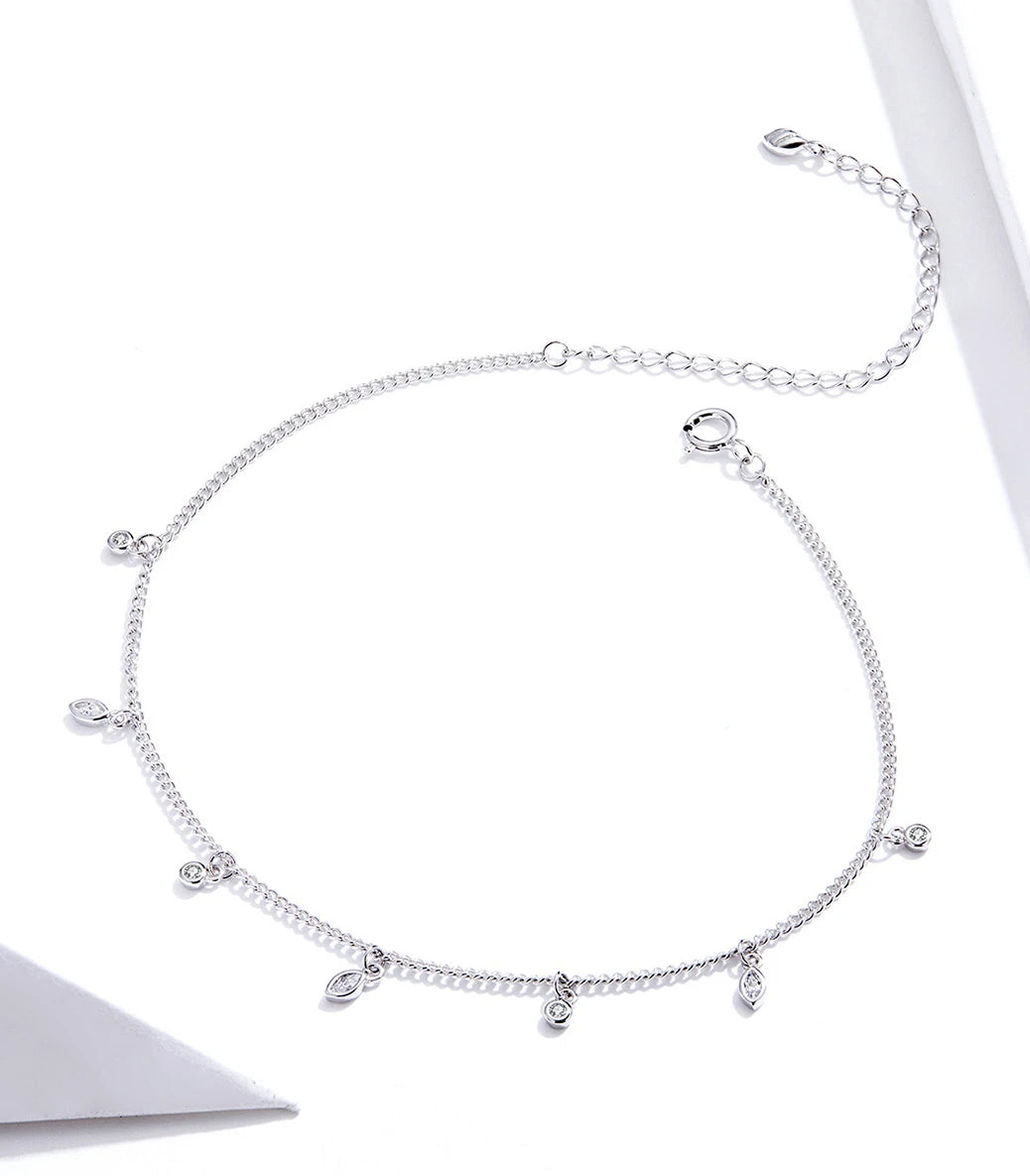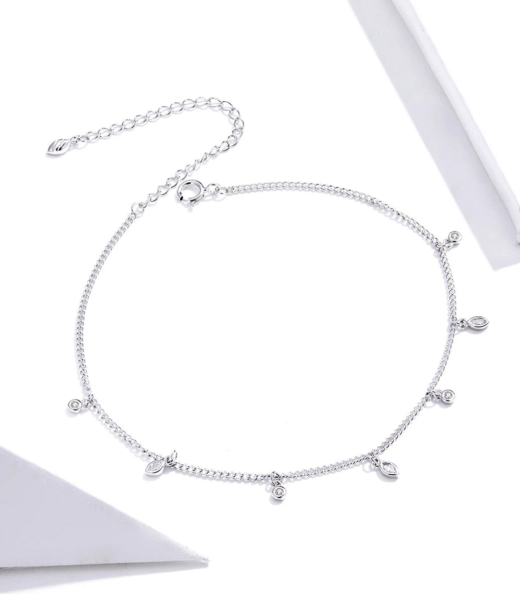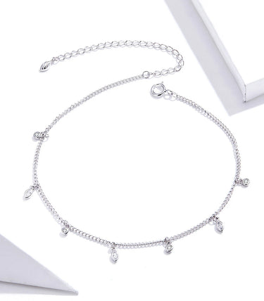 Сребърна регулируема гривна за крак със закопчалка със захващащ механизъм и бял кубичен циркон