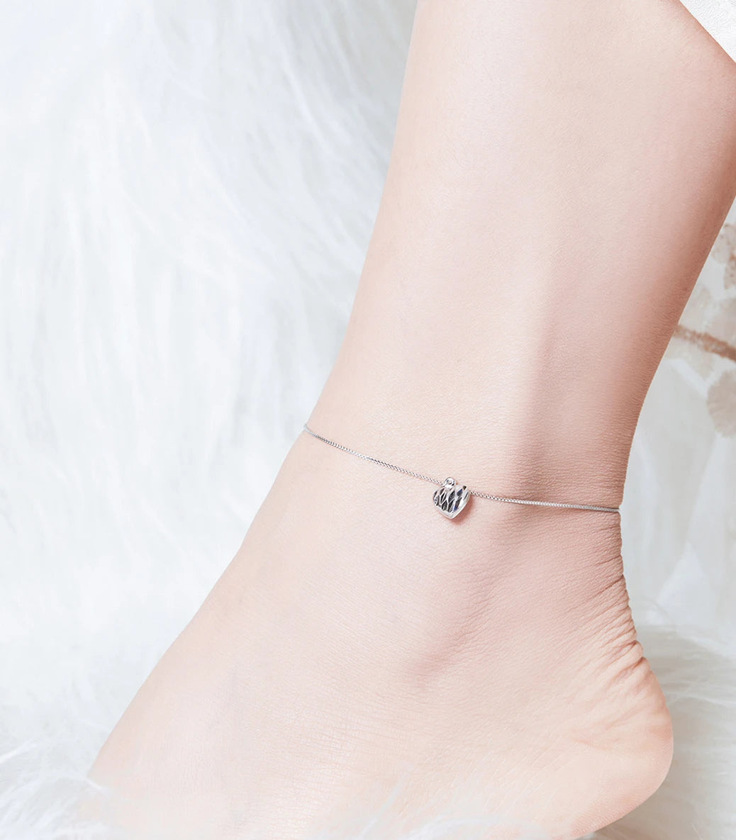 Сребърна гривна за крак „Обичай се“