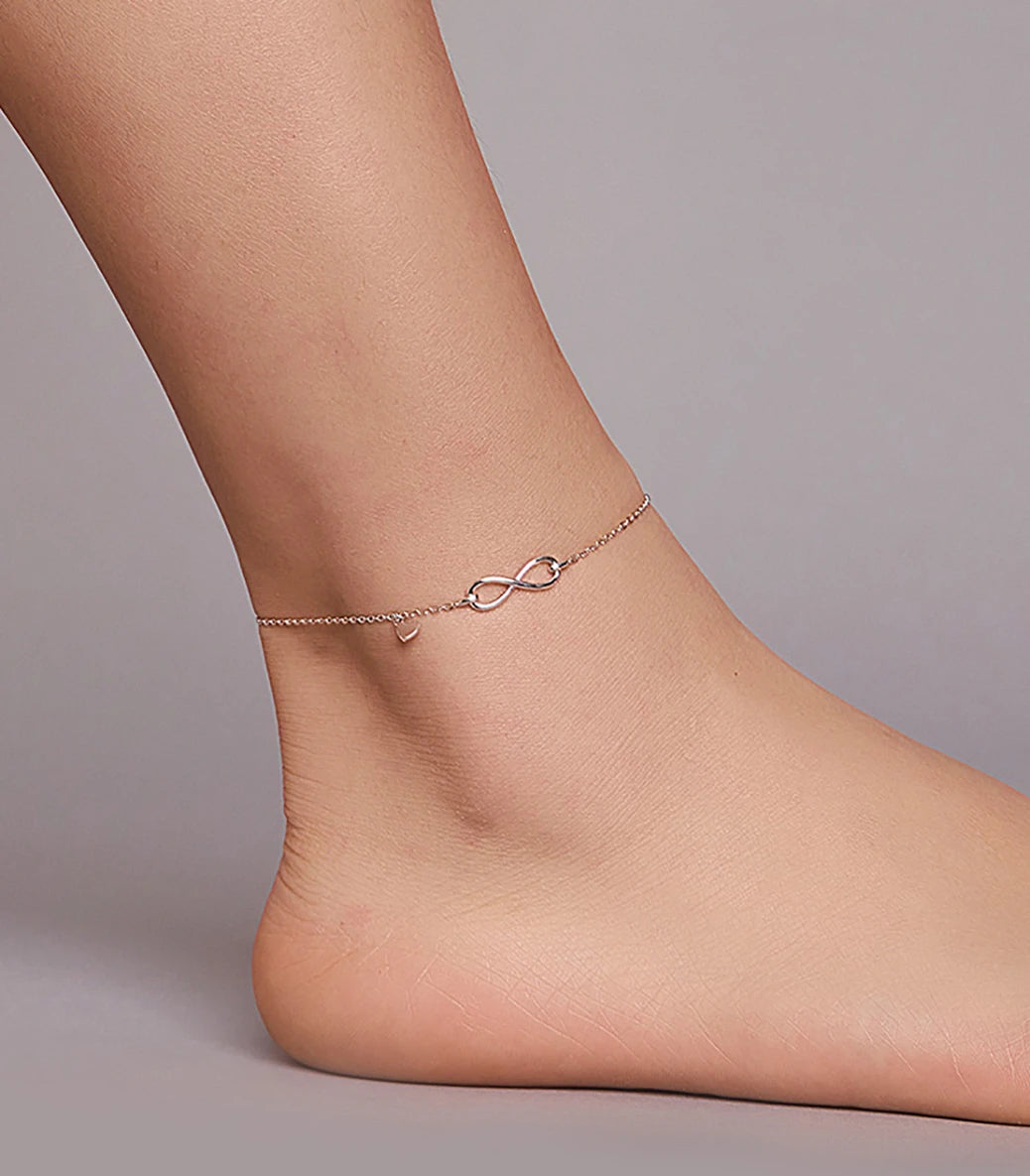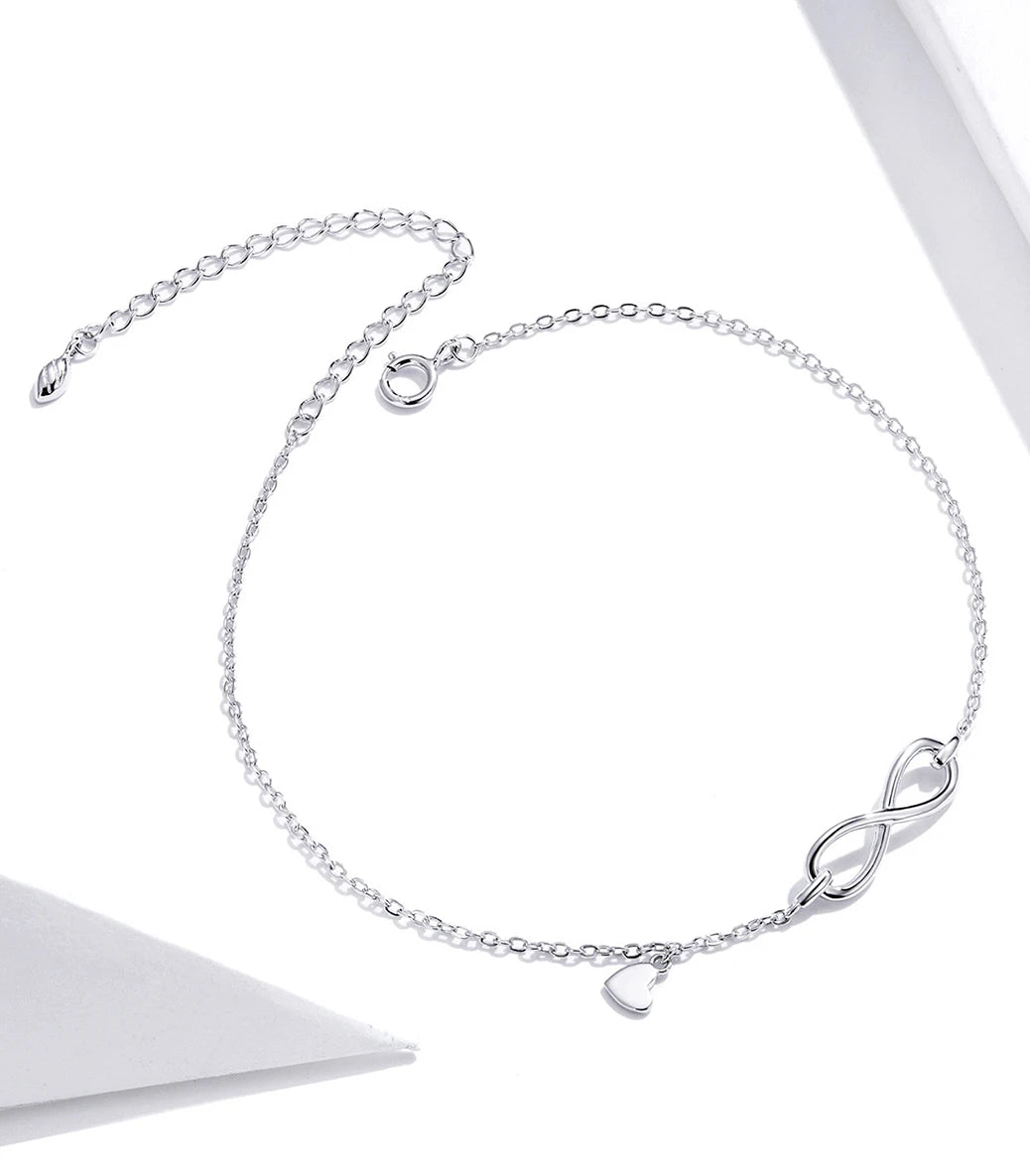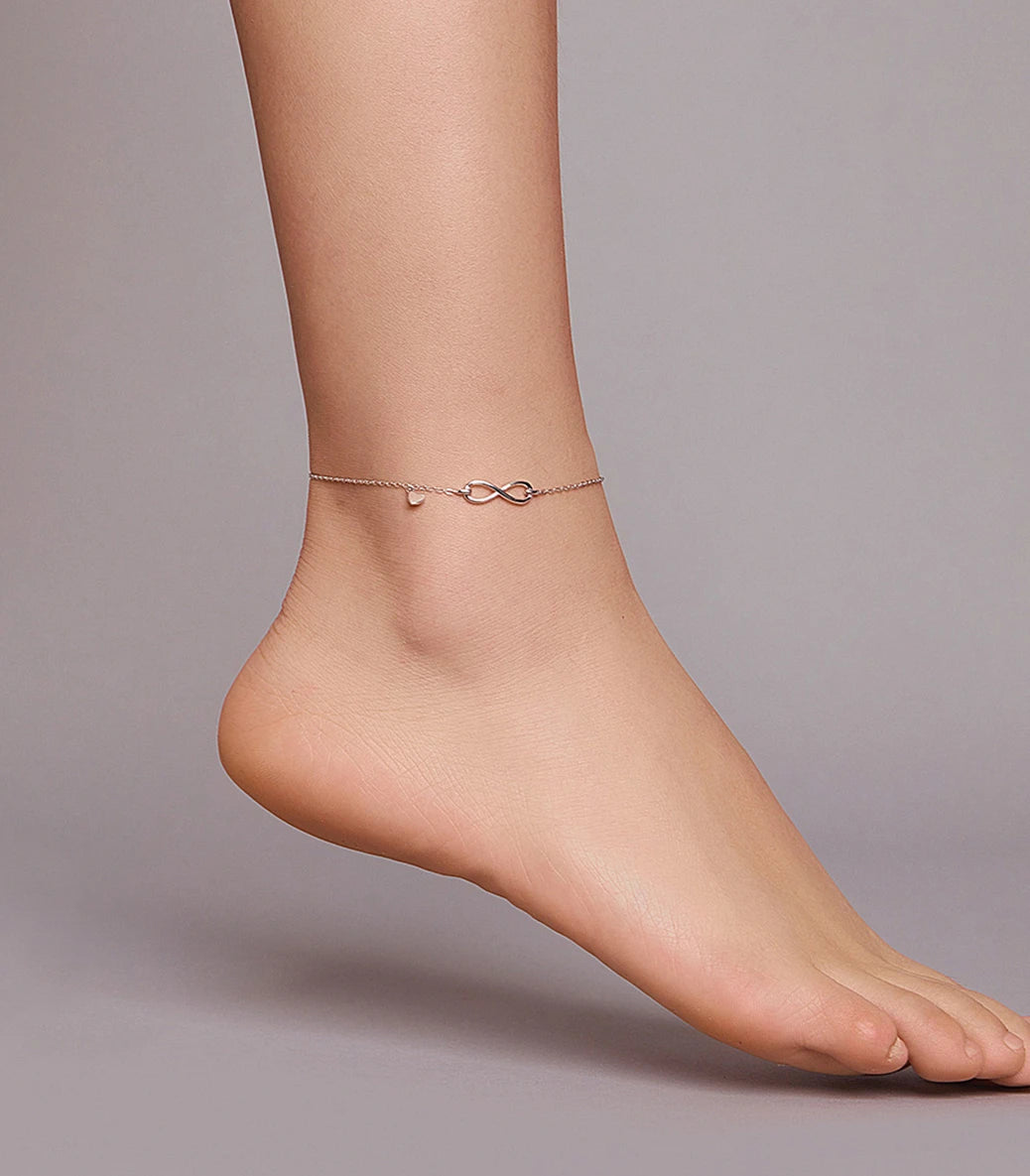 Сребърна гривна за крак „Завинаги“