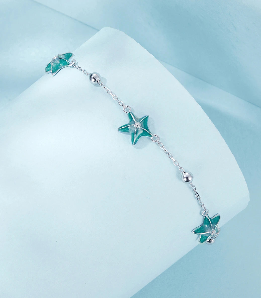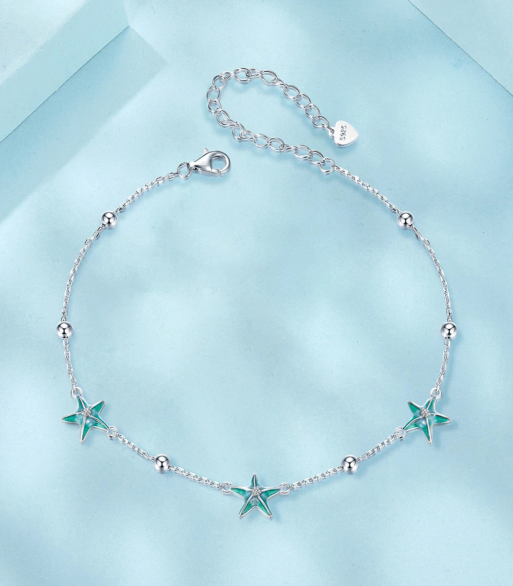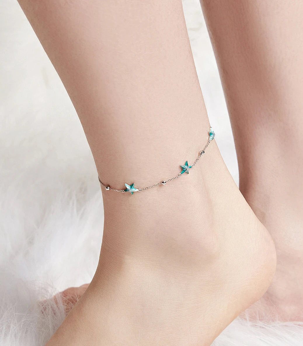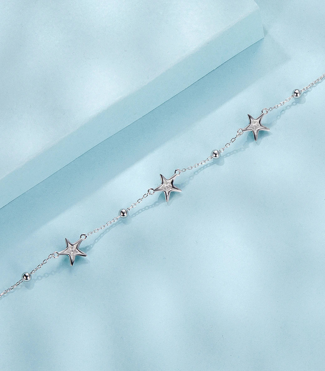 Сребърна гривна за крак „Звездички за теб“