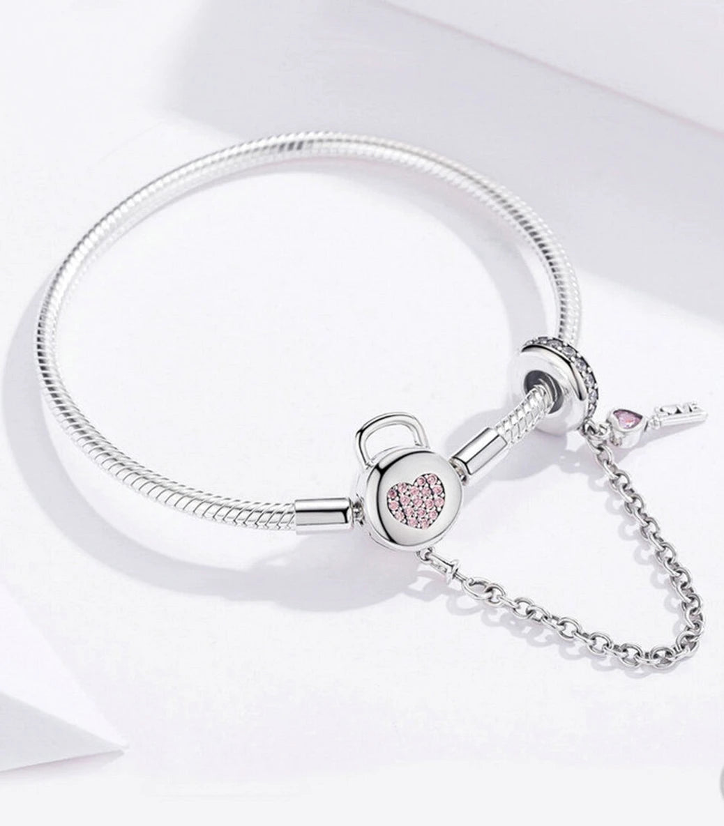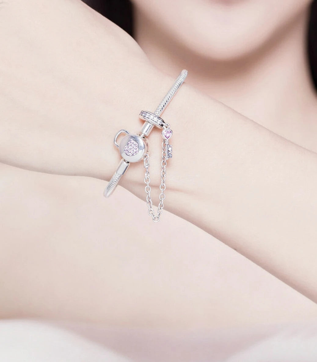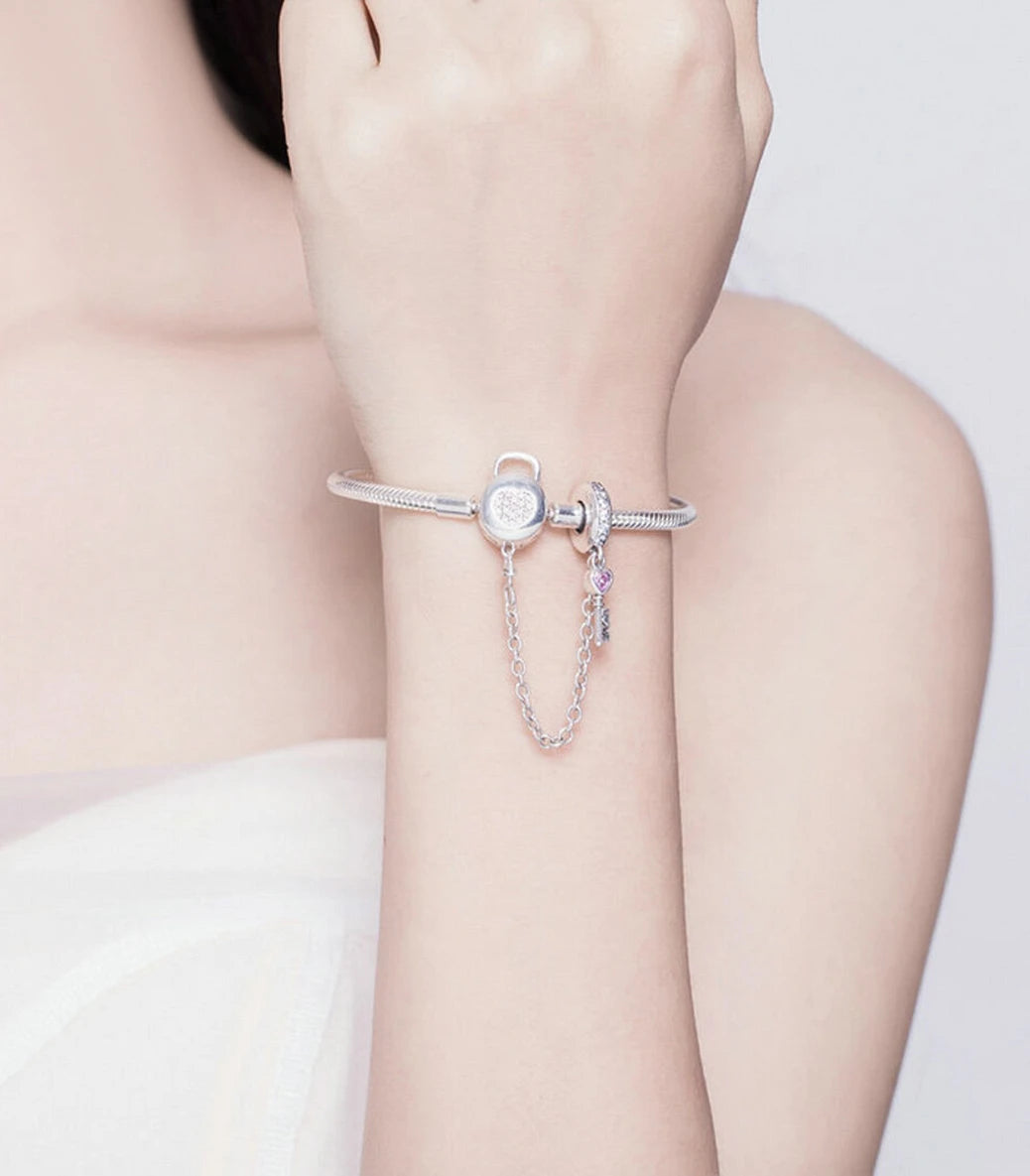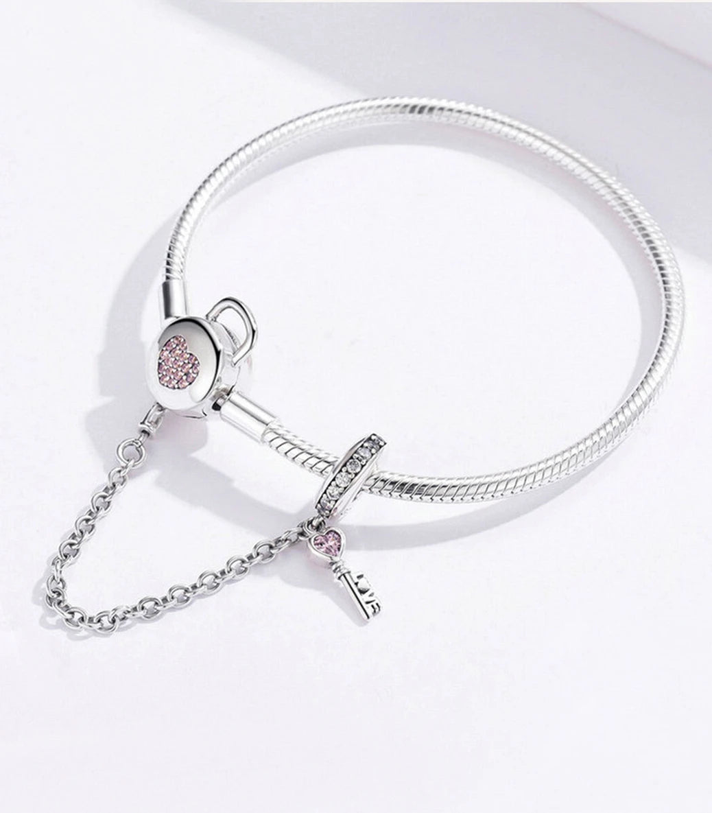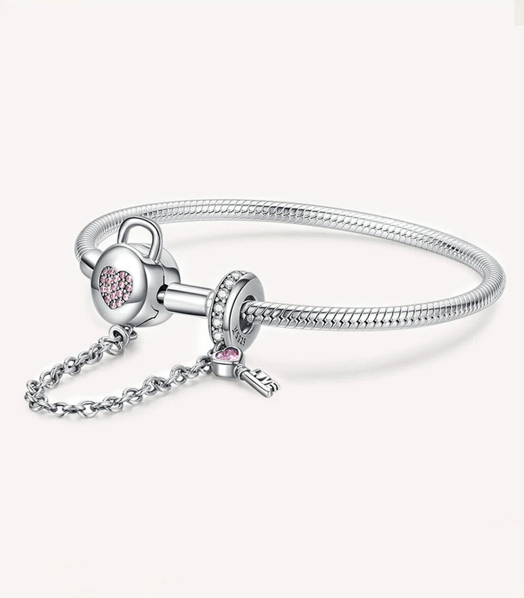 Сребърна мека гривна за талисмани "Ключът към моето сърце"