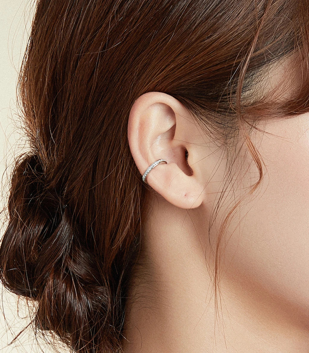 Сребърна стискаща се обецва с бял кубичен циркон
