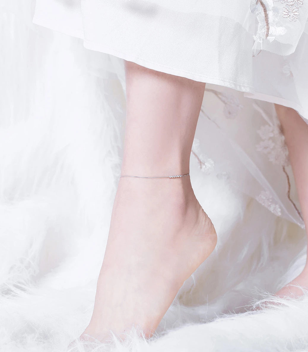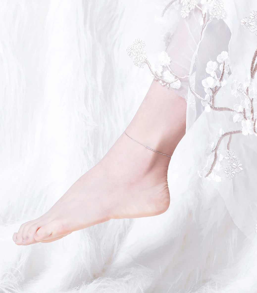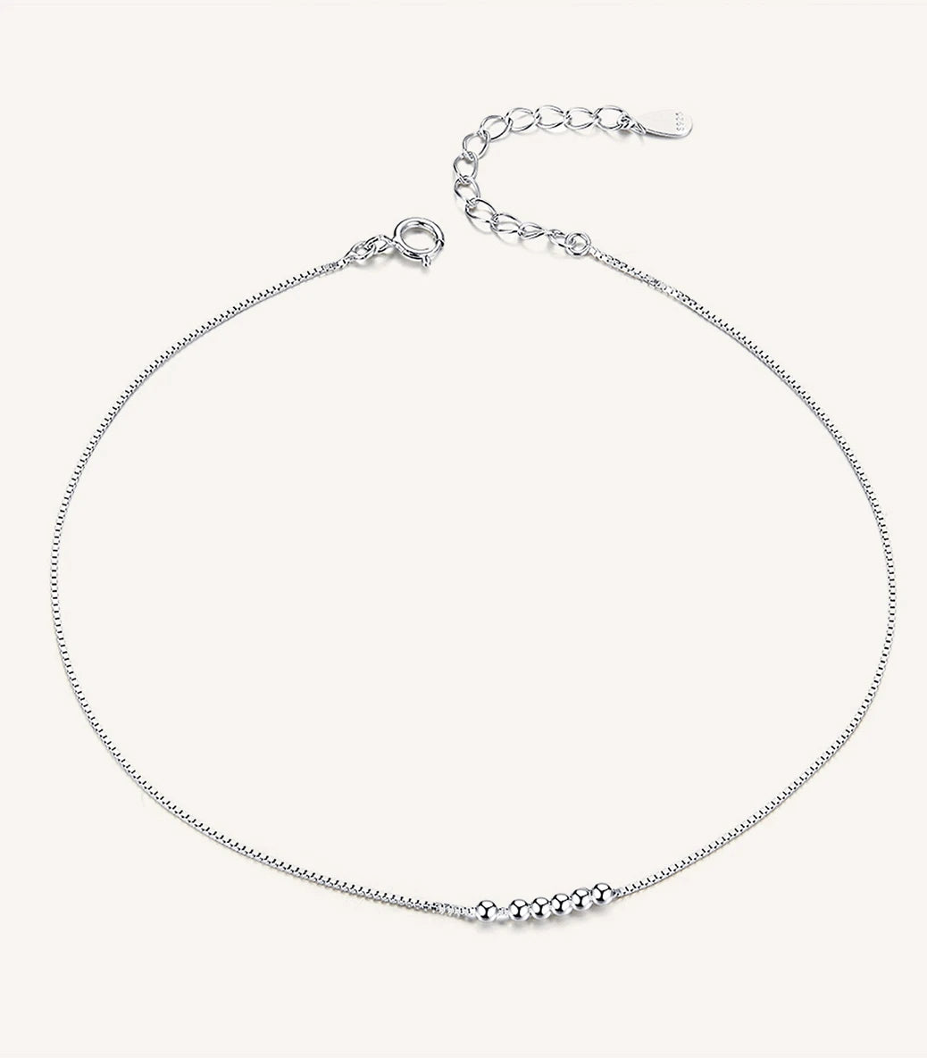 Сребърна регулируема гривна за крак със закопчалка със захващащ механизъм и сребърни подвижни мъниста