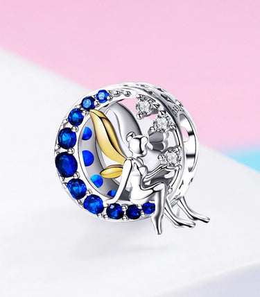 Сребърен талисман с тъмносин и бял кубичен циркон и златно покритие