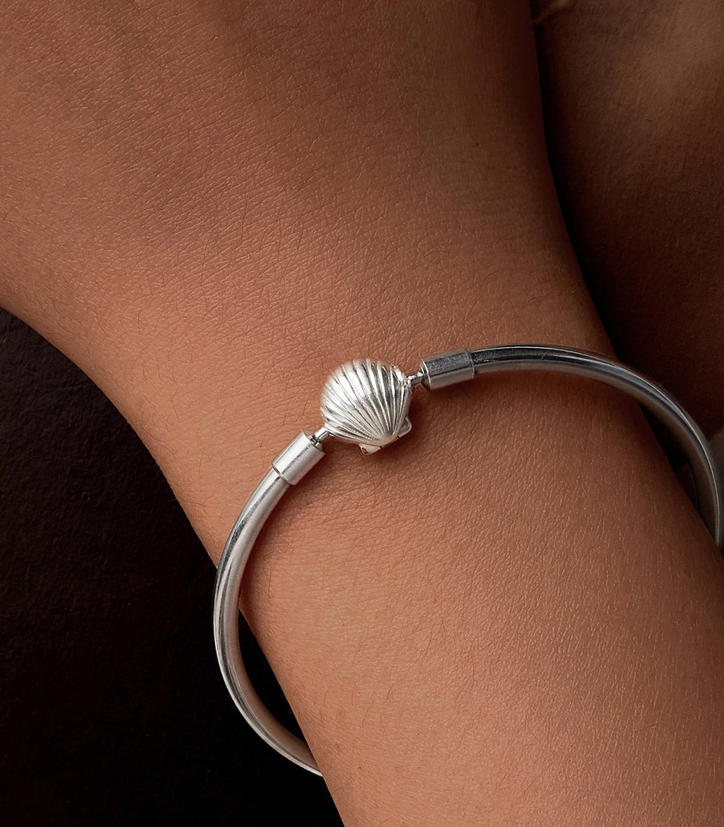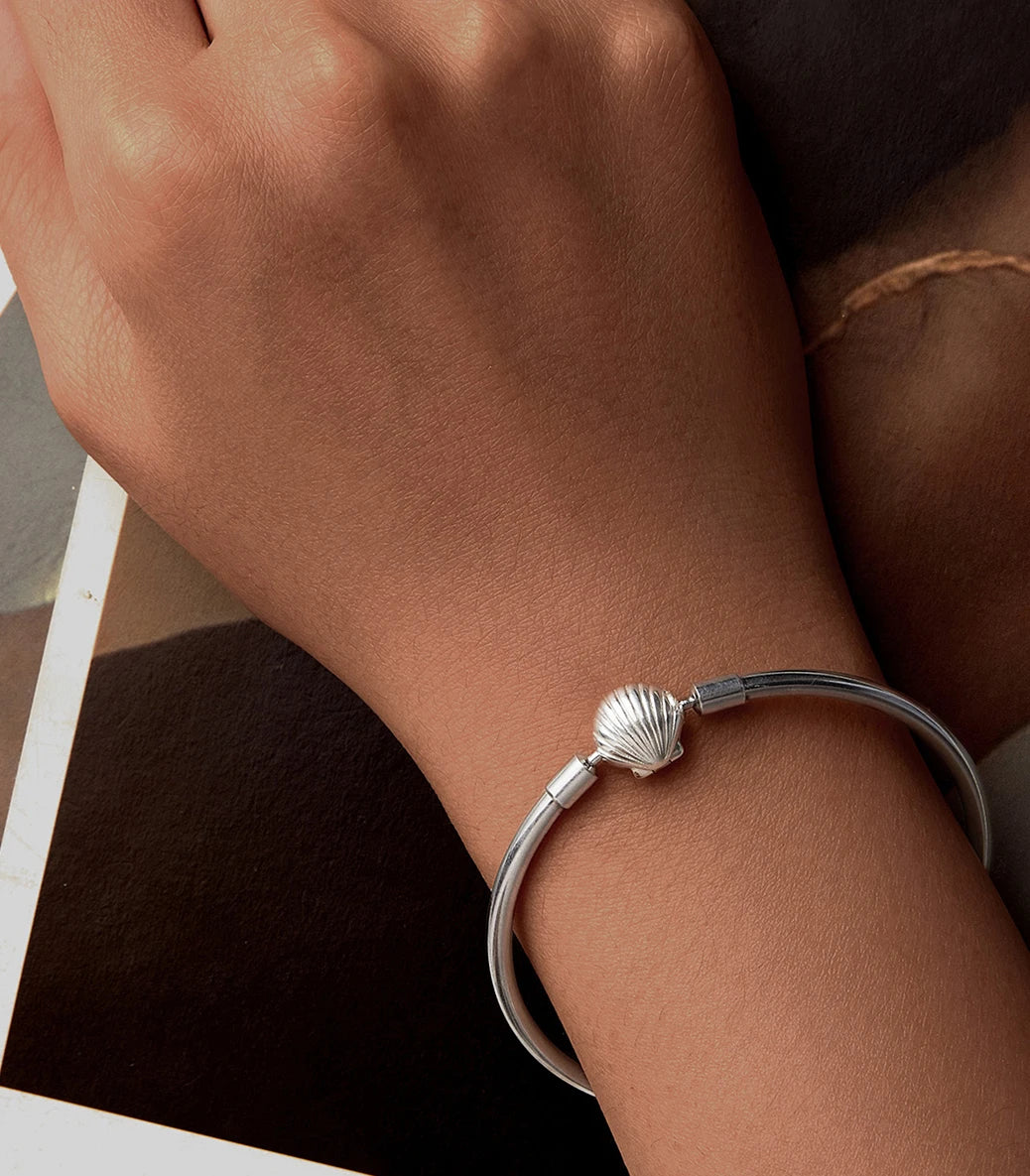Сребърна твърда гривна за талисмани "С полъх на море"