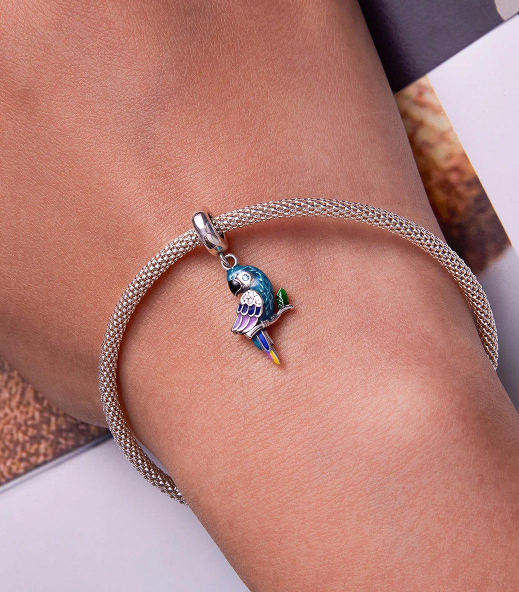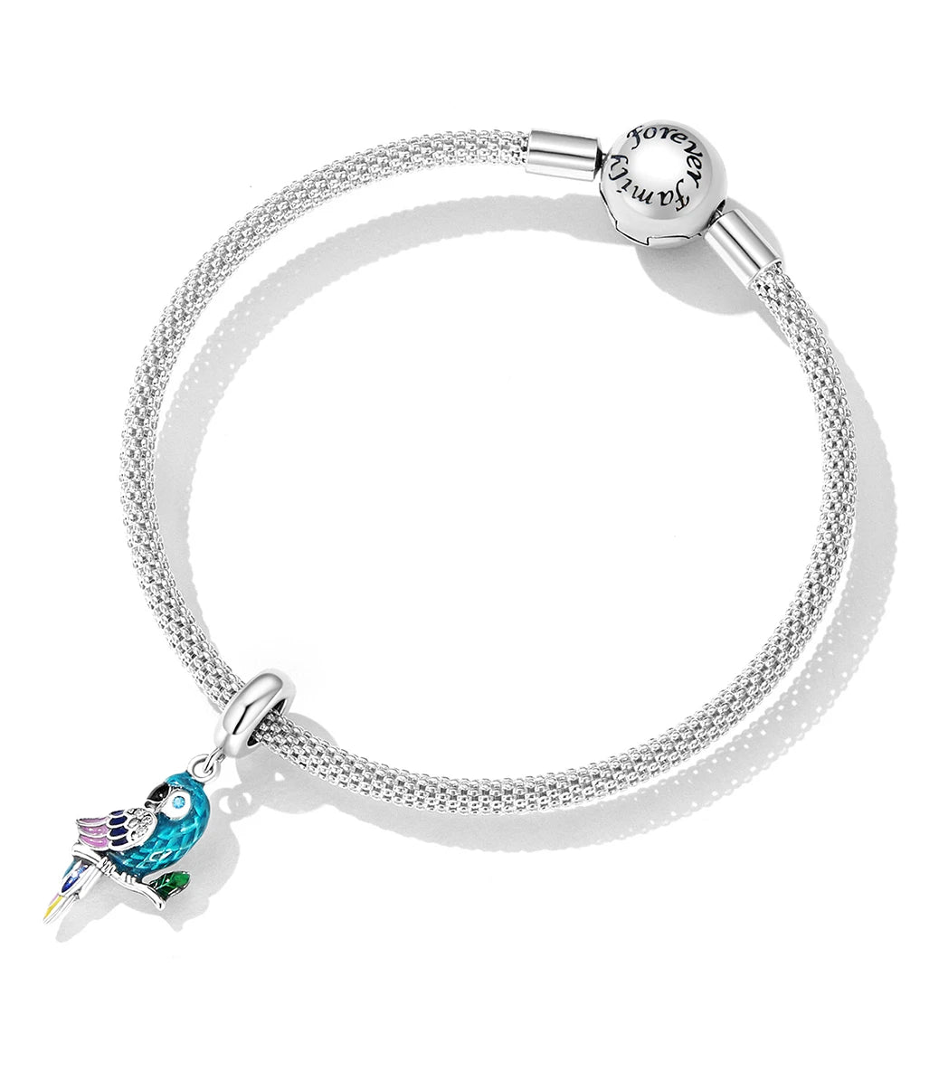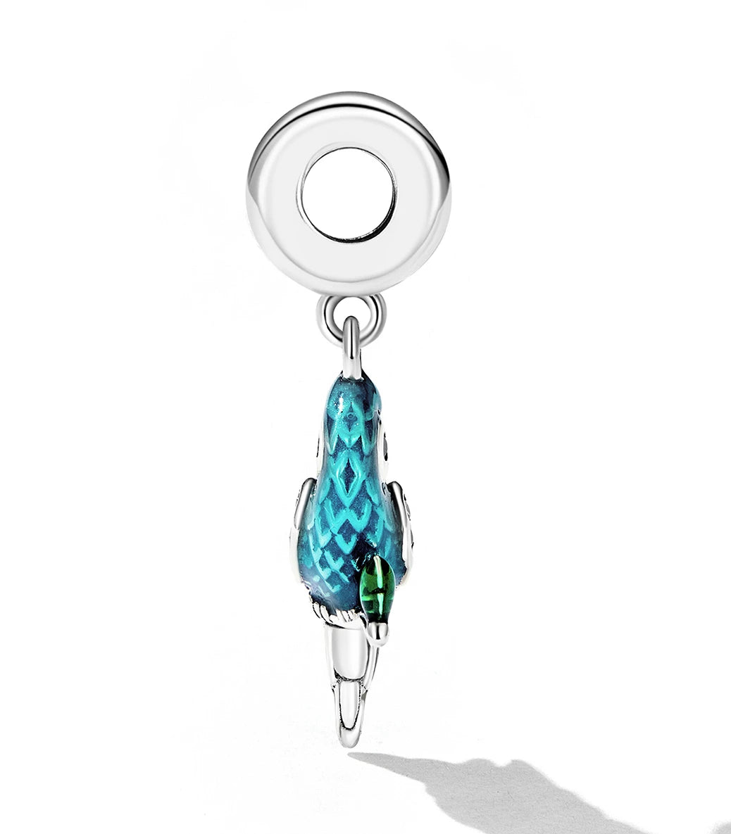 Сребърна висулка с бял и син кубичен циркон и разноцветен емайл