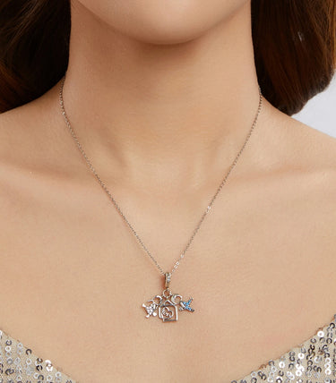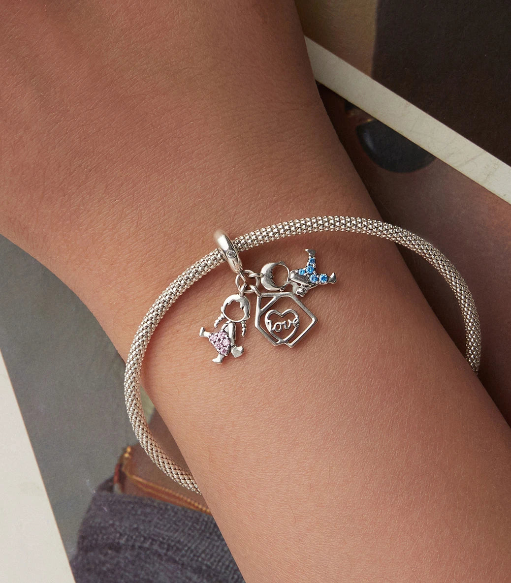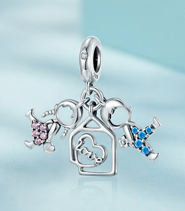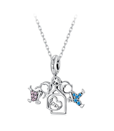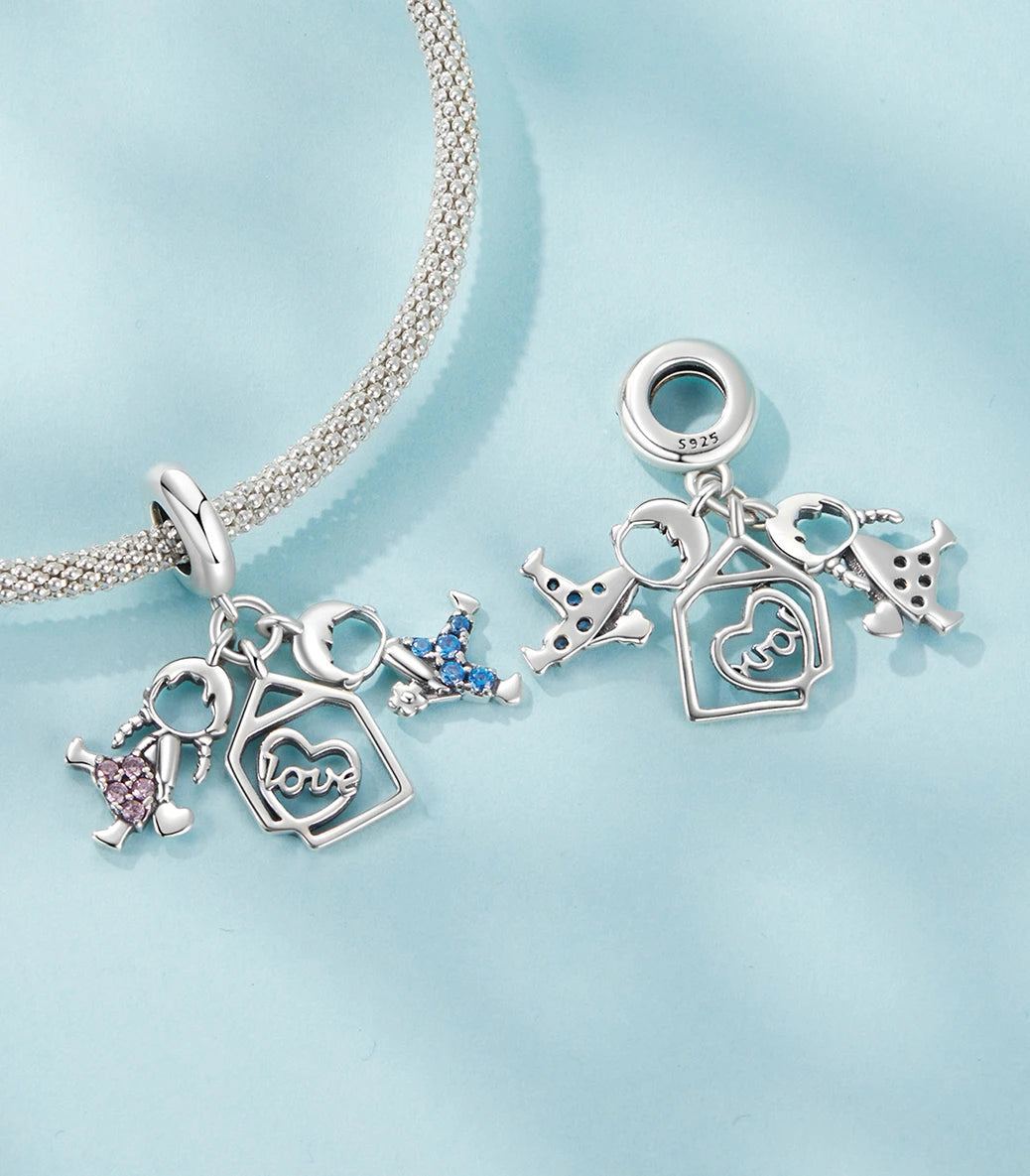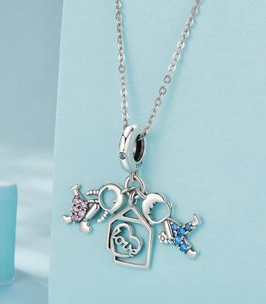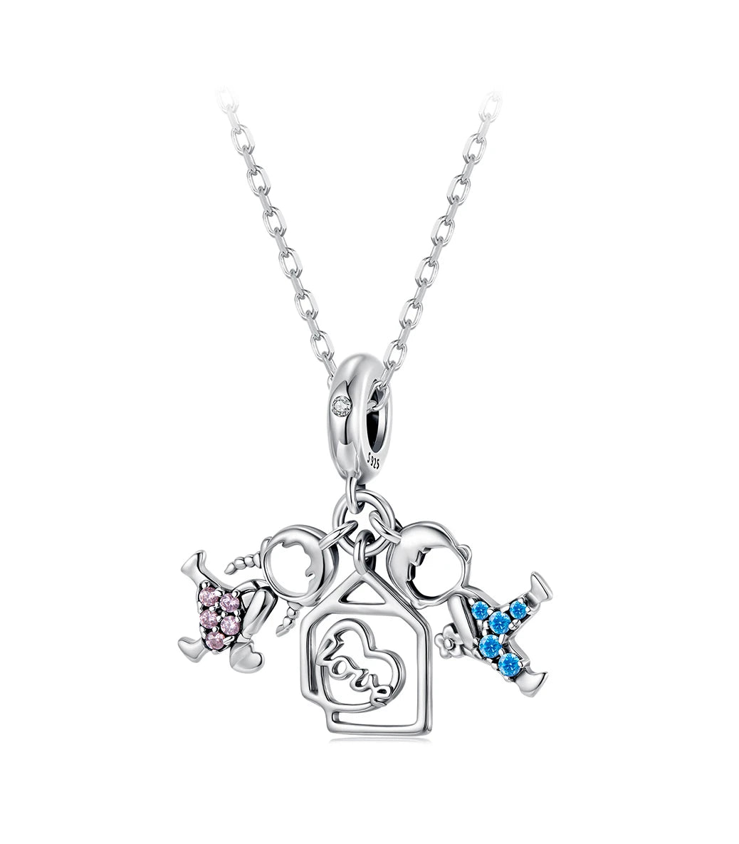 Сребърна висулка с бял, розов и син кубичен циркон и надпис “Love” (Любов)