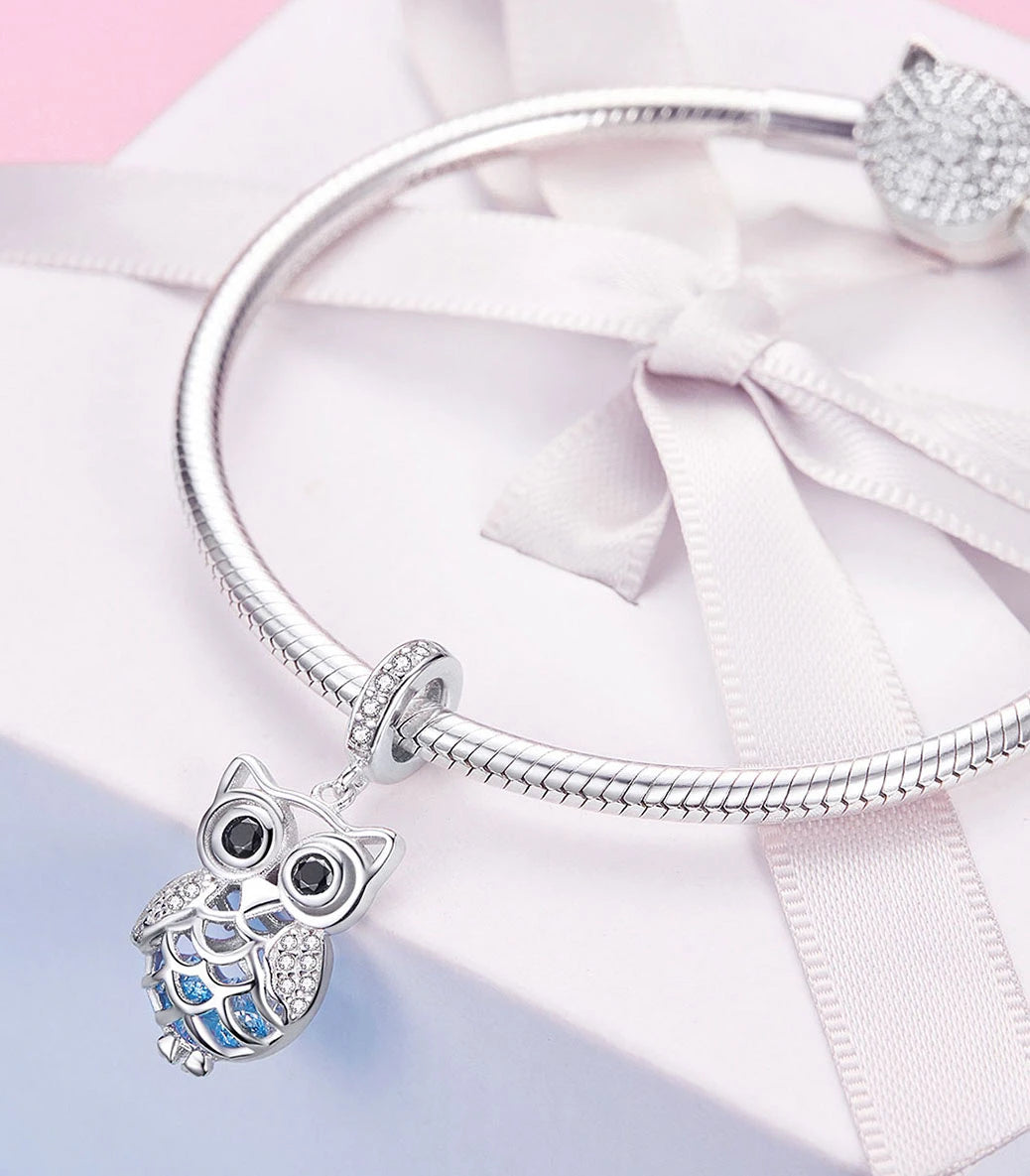 Сребърна висулка с черен, бял и сини плаващи кубични циркони