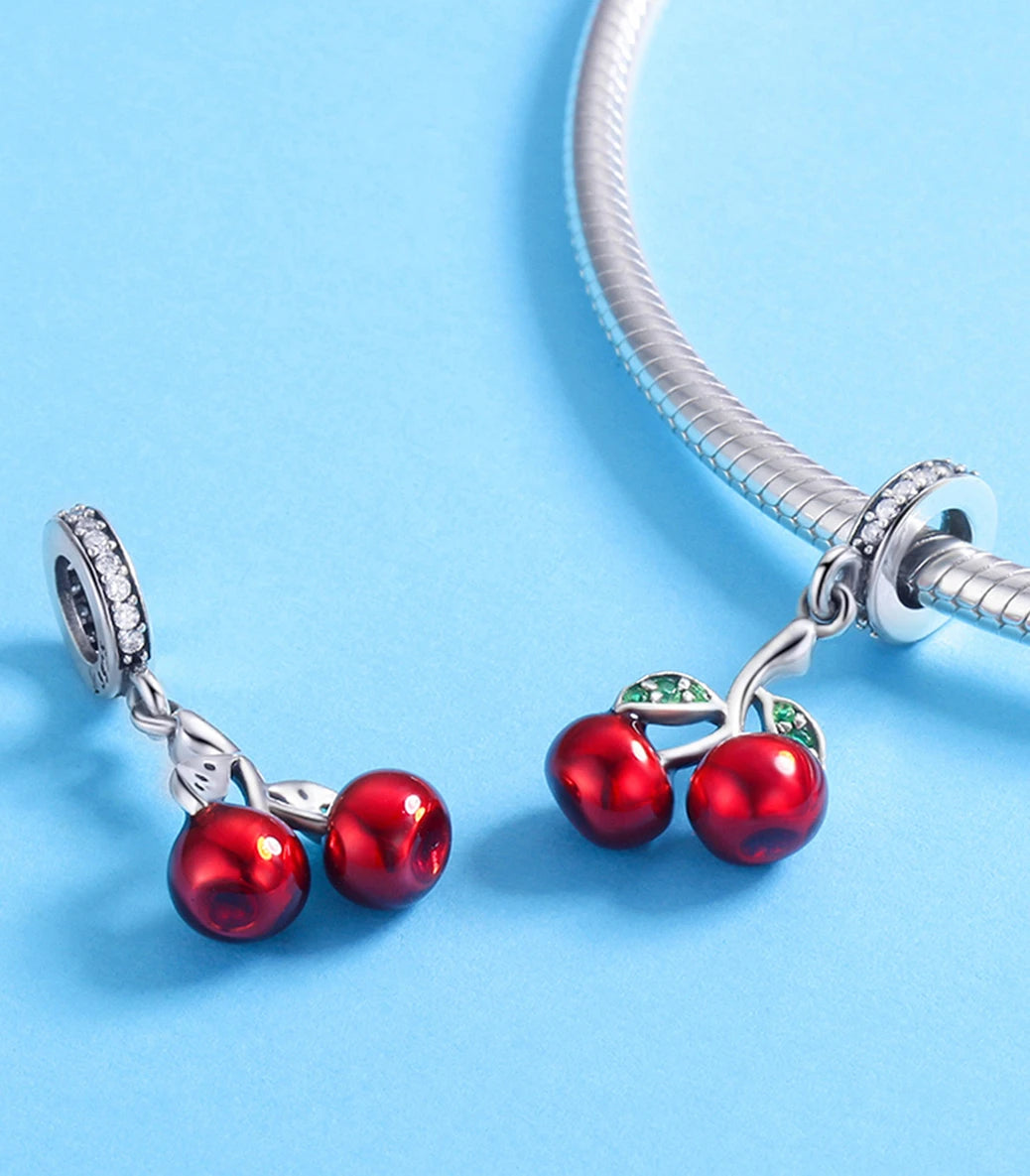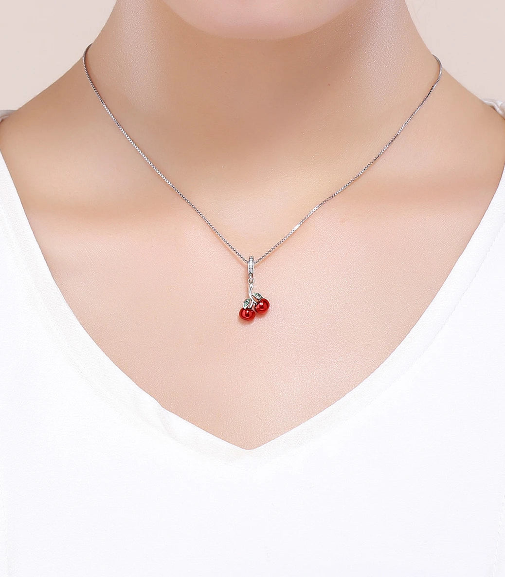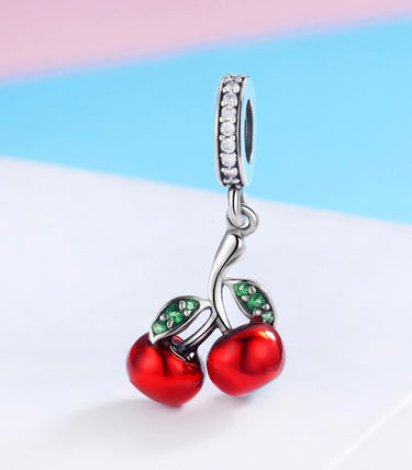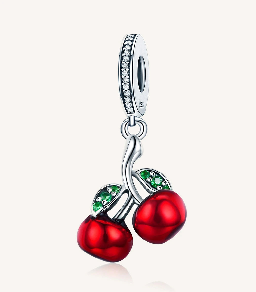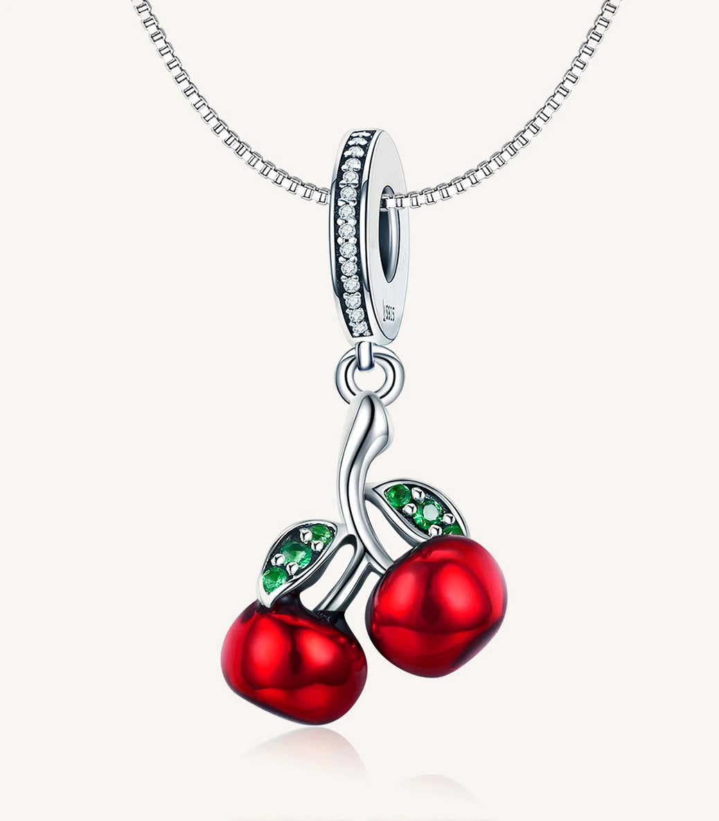 Сребърна висулка с бял и зелен кубичен циркон и червен емайл