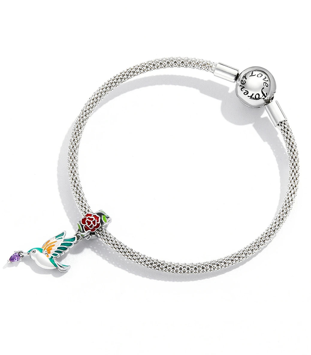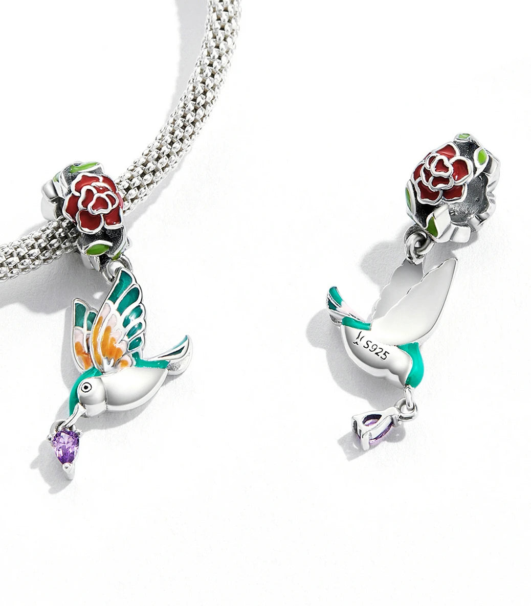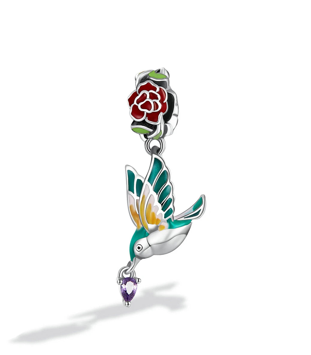 Сребърна висулка с лилав кубичен циркон и разноцветен емайл