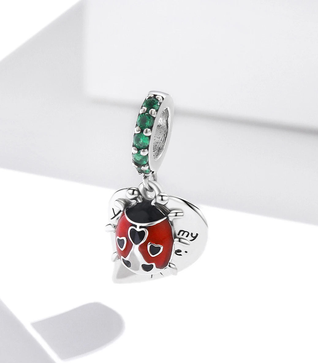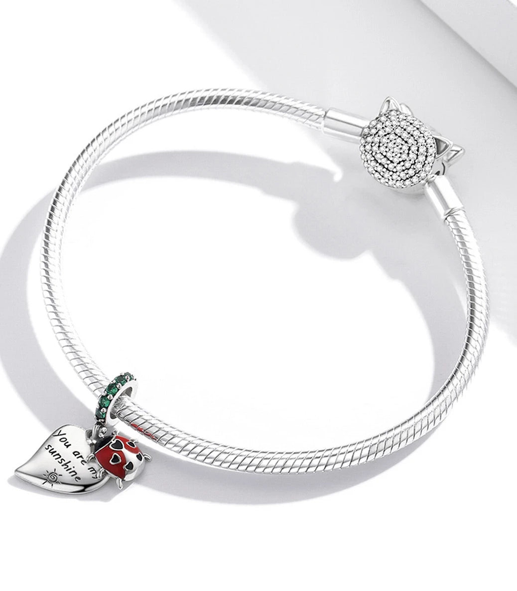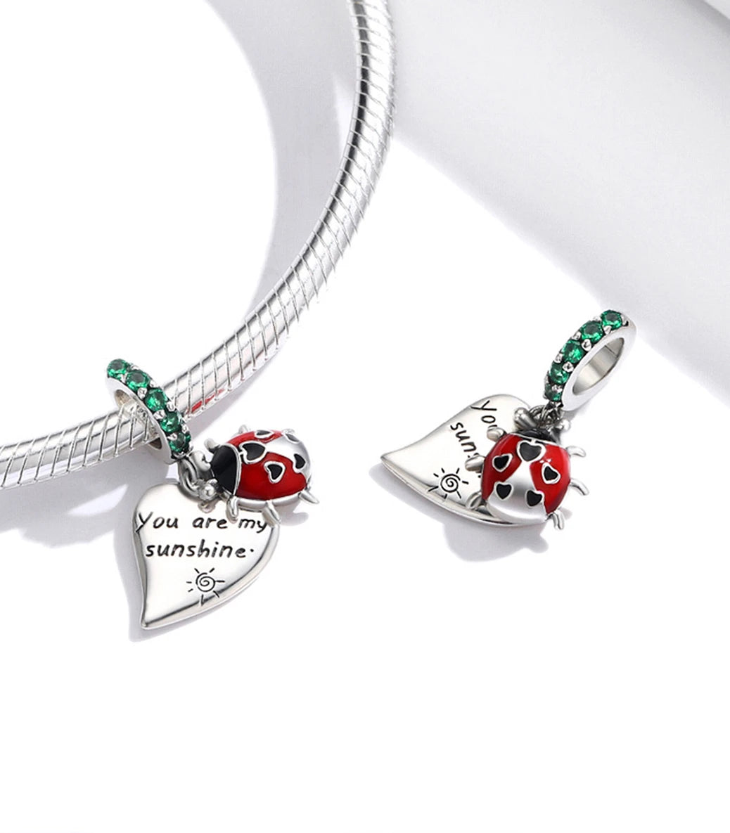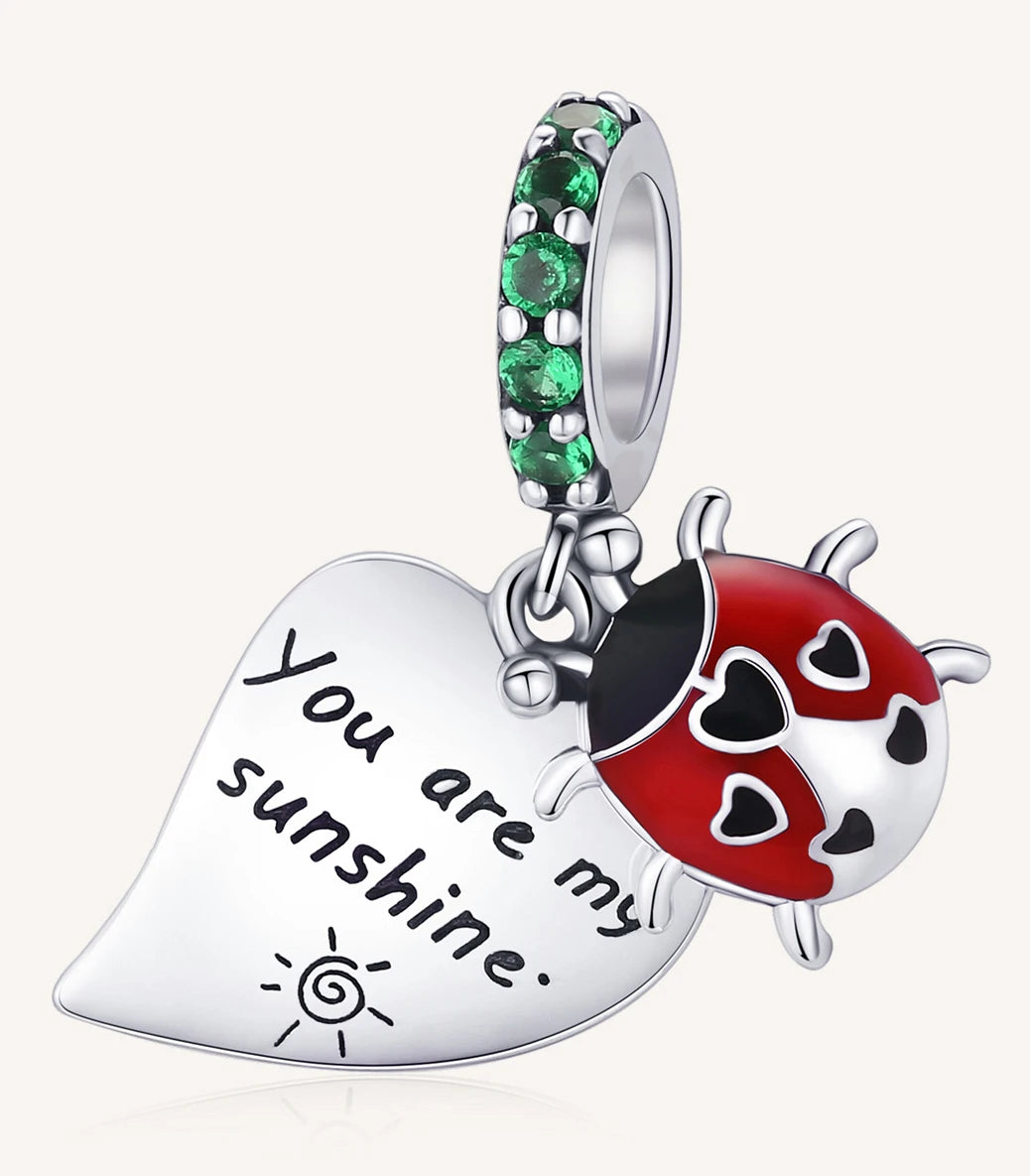 Сребърна висулка със зелен кубичен циркон, червен и черен емайл и надпис „You are my sunshine” (Ти си моето слънчице)