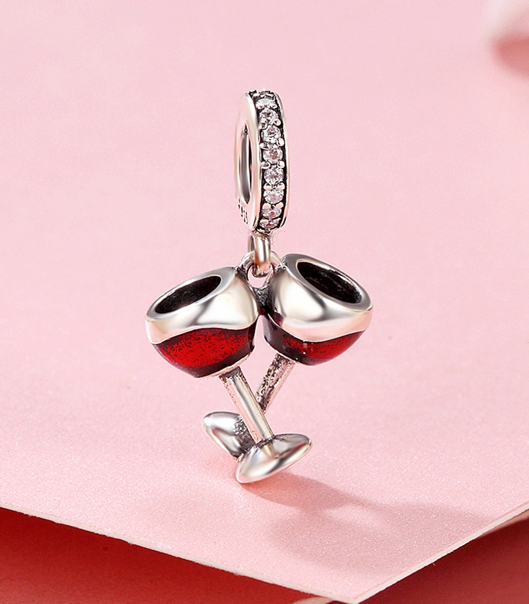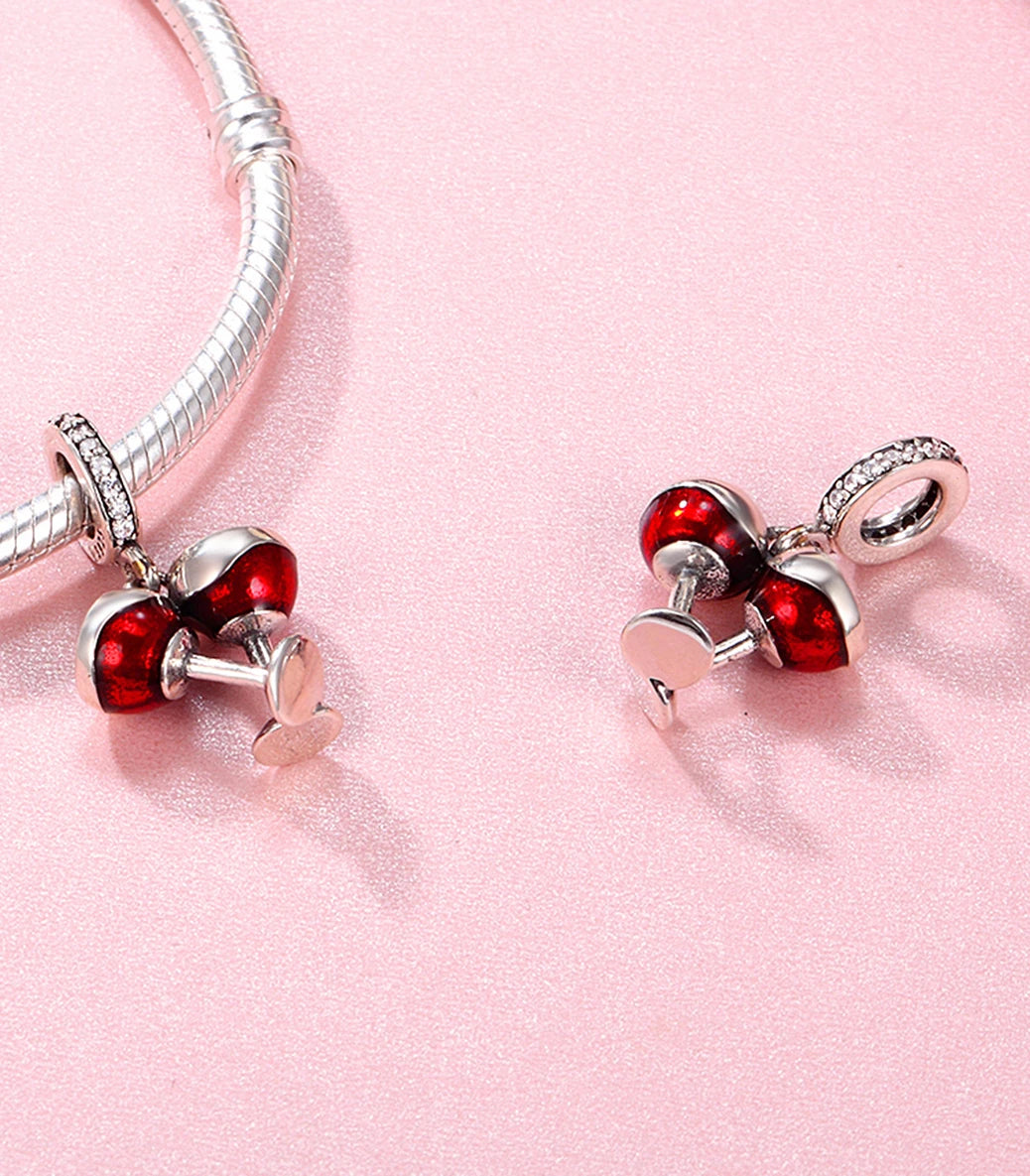 Сребърна висулка с бял кубичен циркон и червен емайл