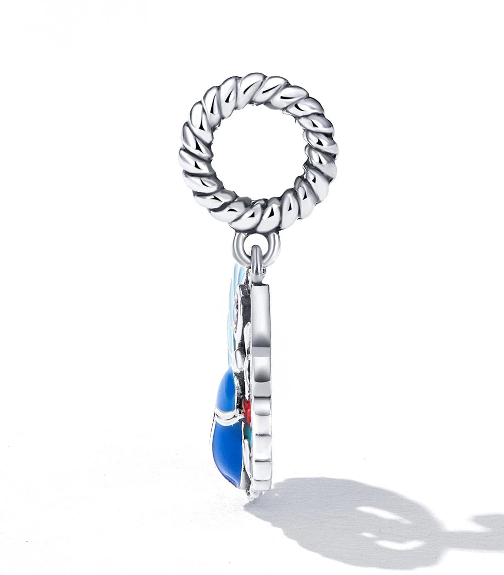 Сребърна висулка с лилав кубичен циркон и разноцветен емайл