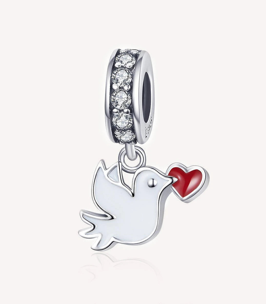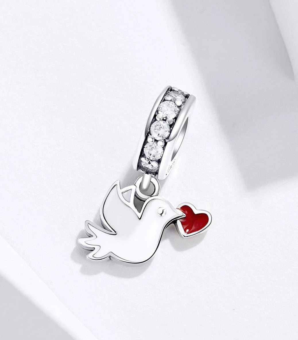 Сребърна висулка с бял кубичен циркон и бял и червен емайл