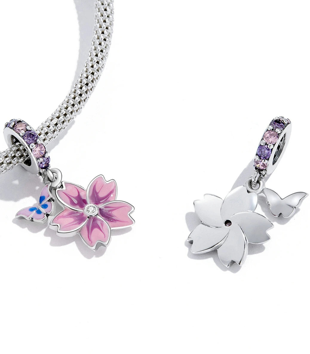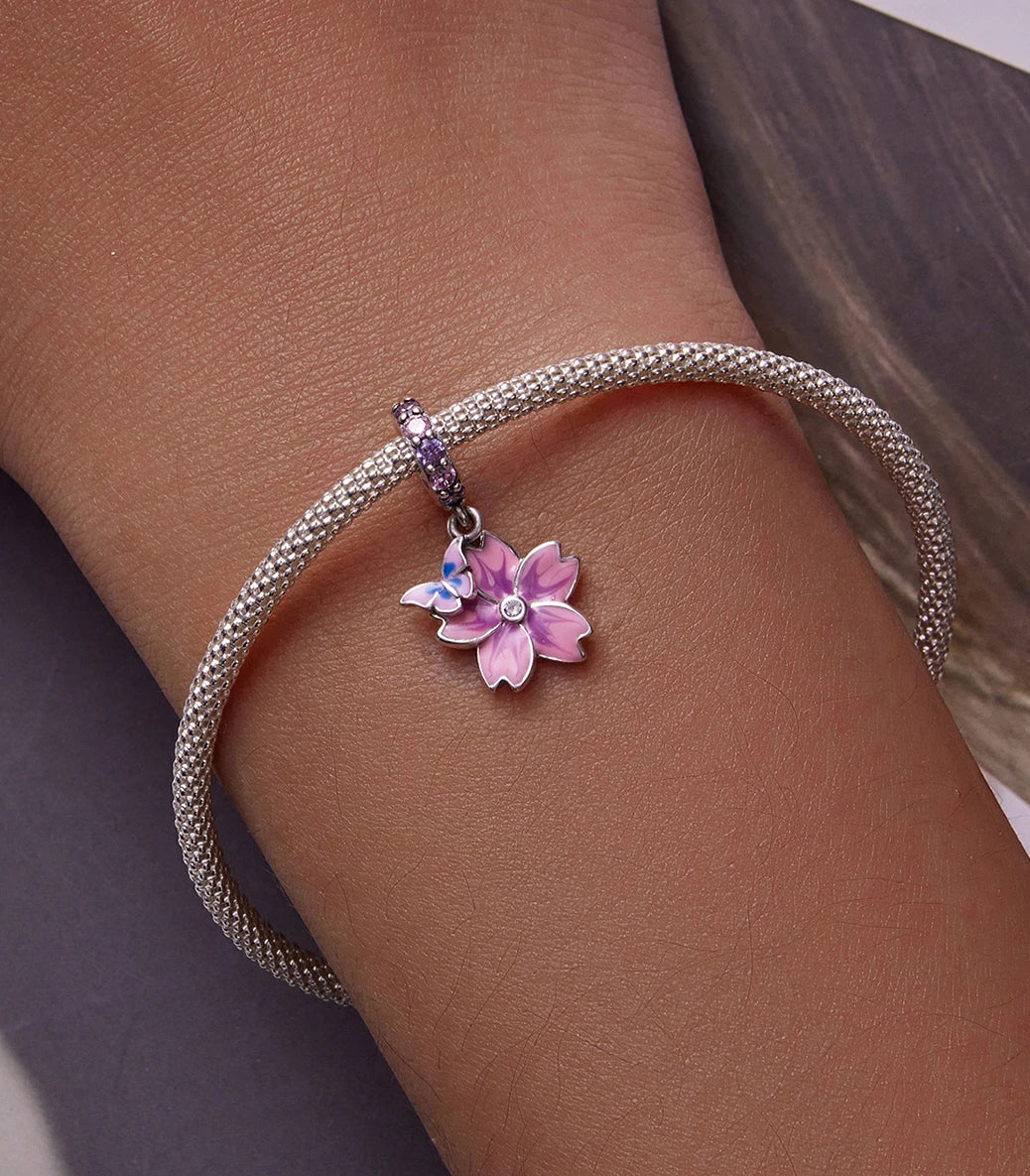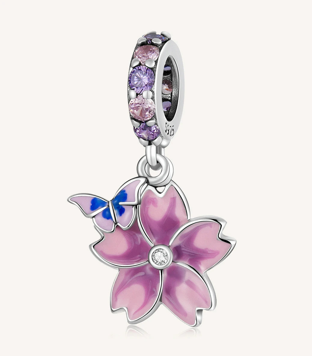 Сребърна висулка с розов и виолетов кубичен циркон и емайл