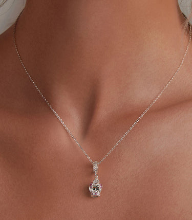 Сребърна висулка с бял, пурпурен и зелен кубичен циркон