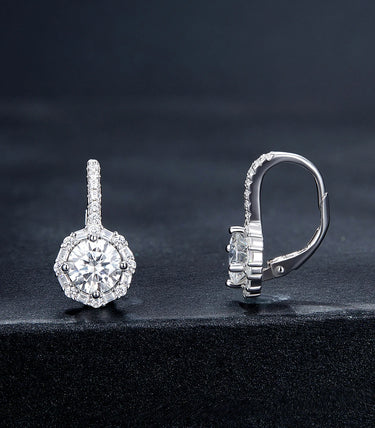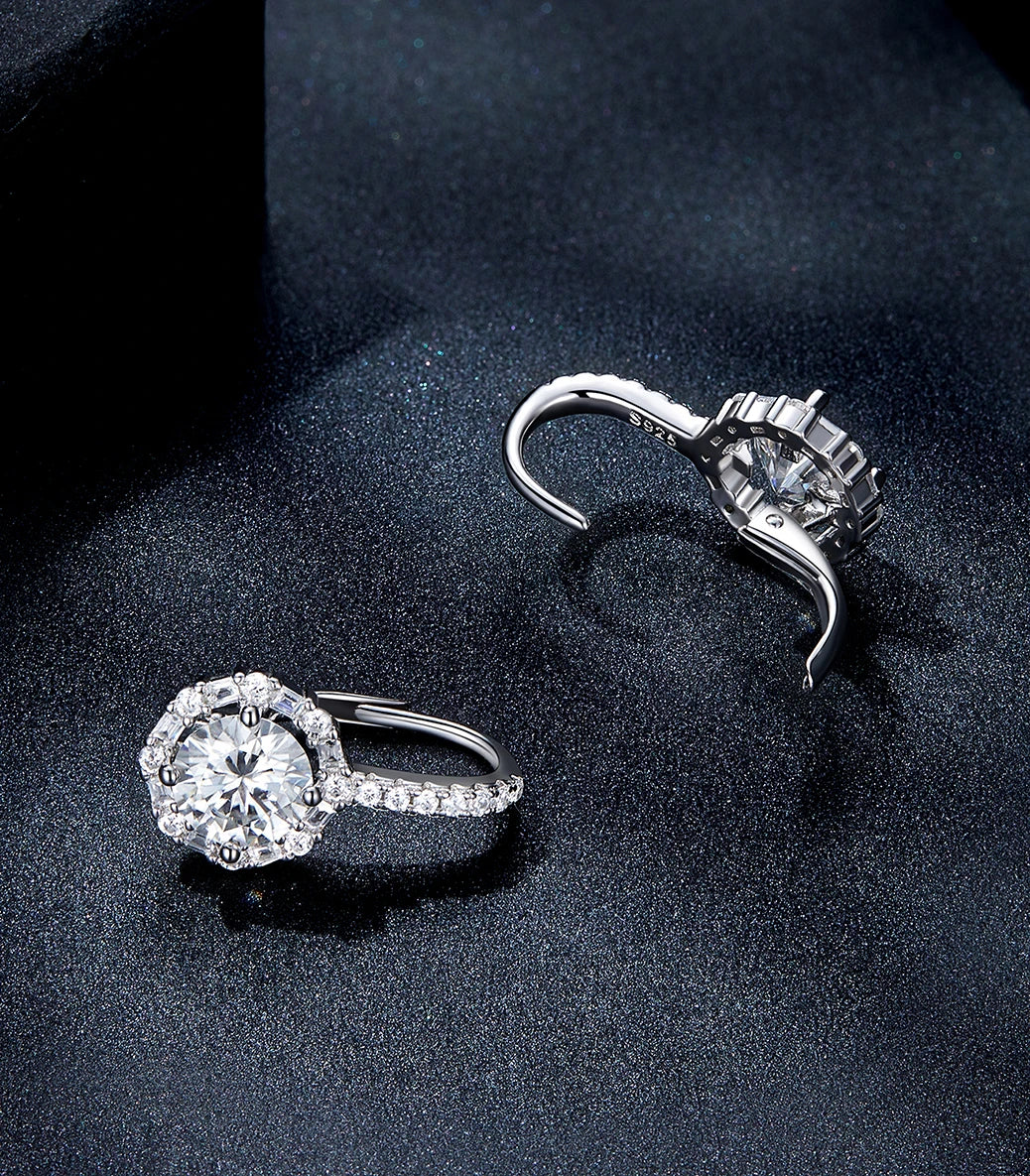 Сребърни обеци с френско закопчаване, скъпоценен камък мойсанит и бял кубичен циркон