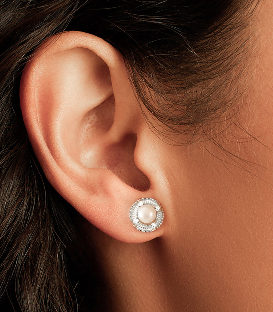 Камък: Сладководна перла 11мм и бял кубичен циркон 1.5мм