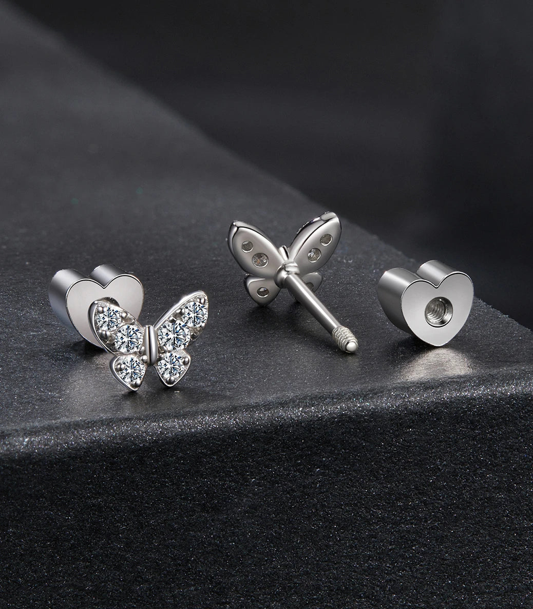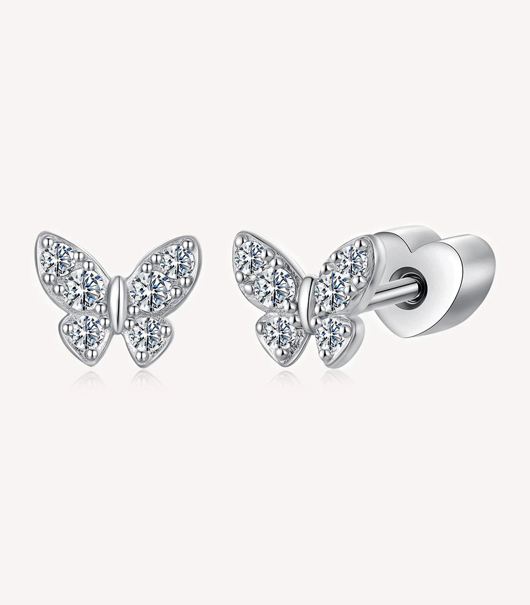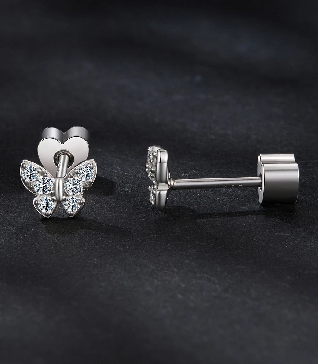 Сребърни обеци с винт и скъпоценен камък мойсанит