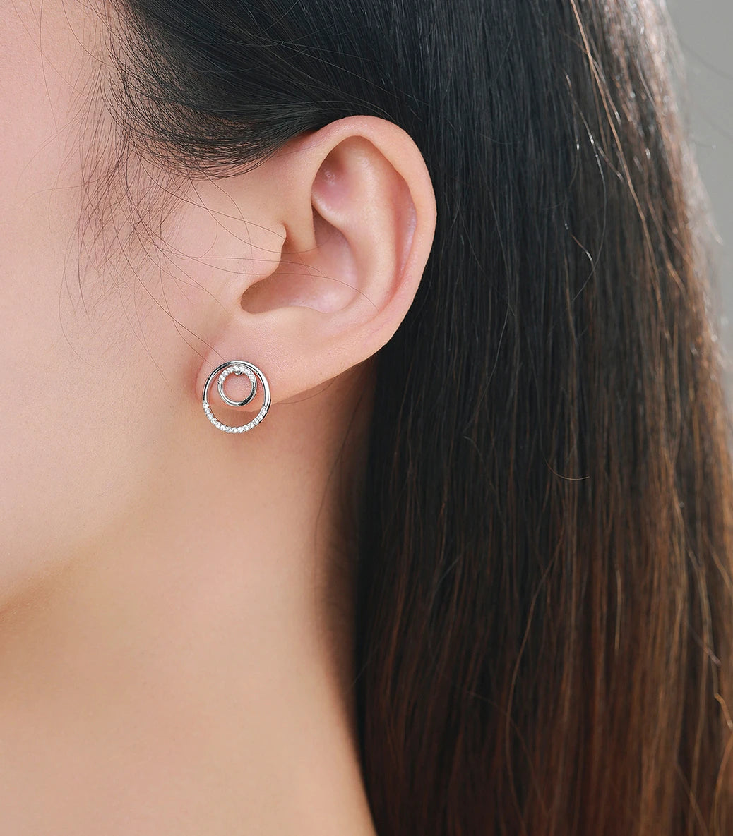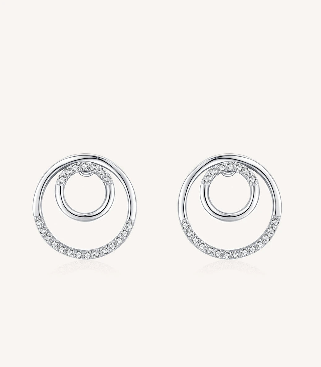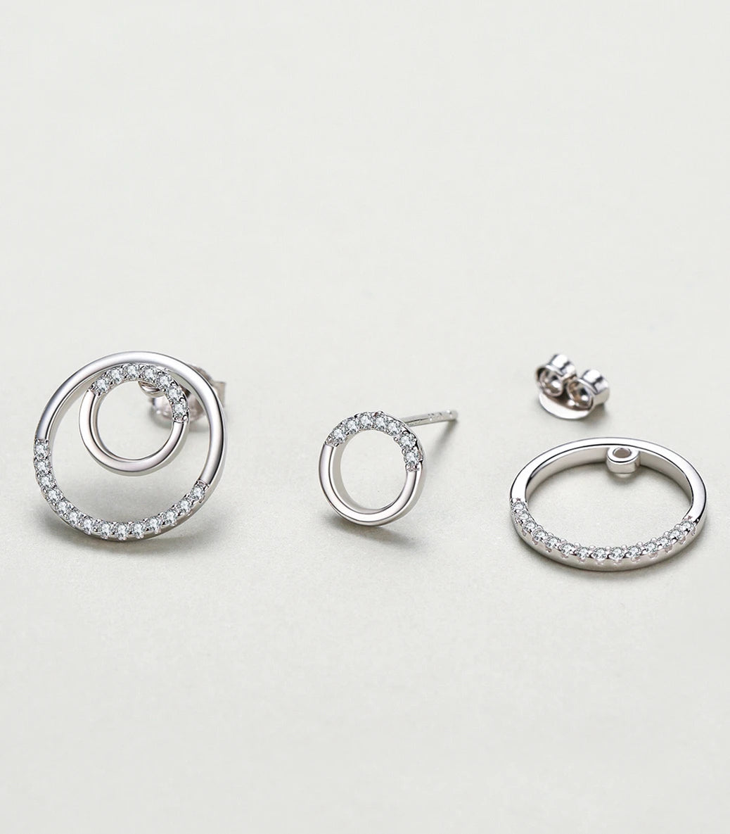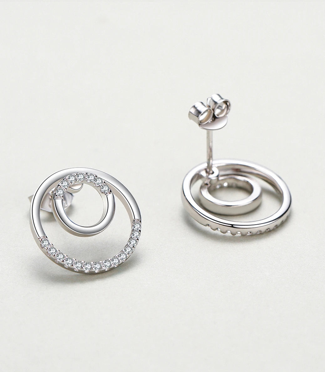Сребърни двойни обeци с щифт и бял кубичен циркон