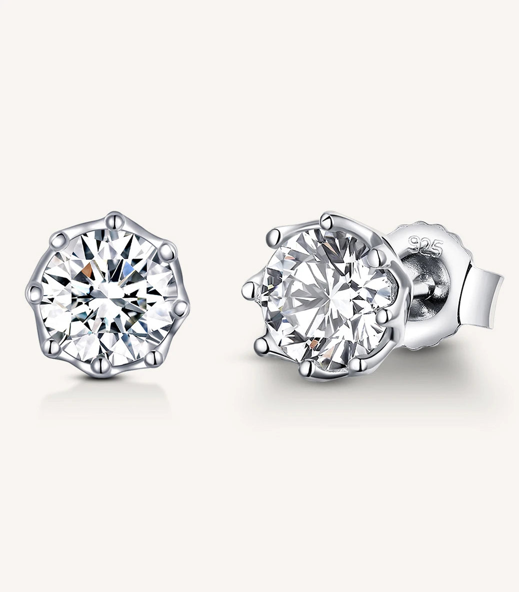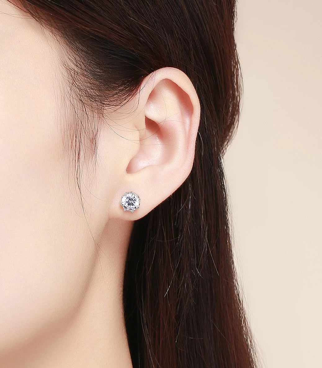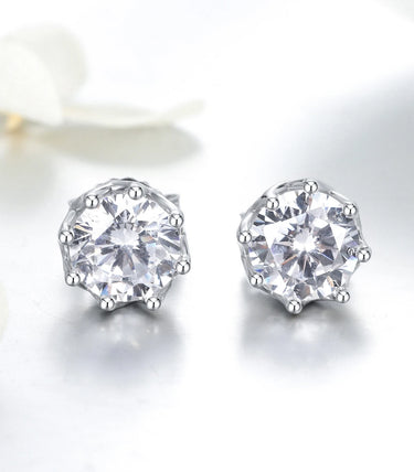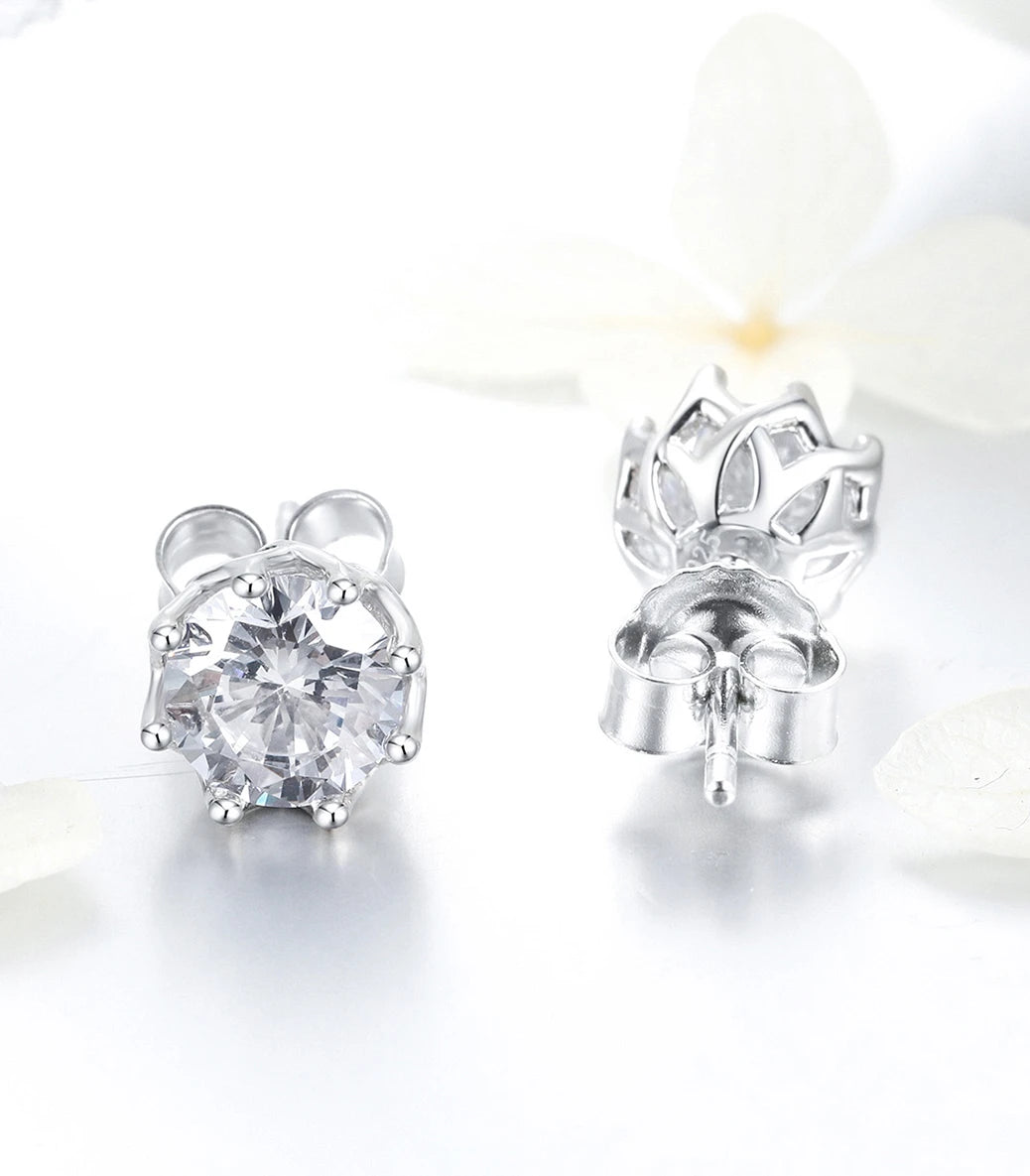 Сребърни обeци с щифт и бял фасетиран циркон
